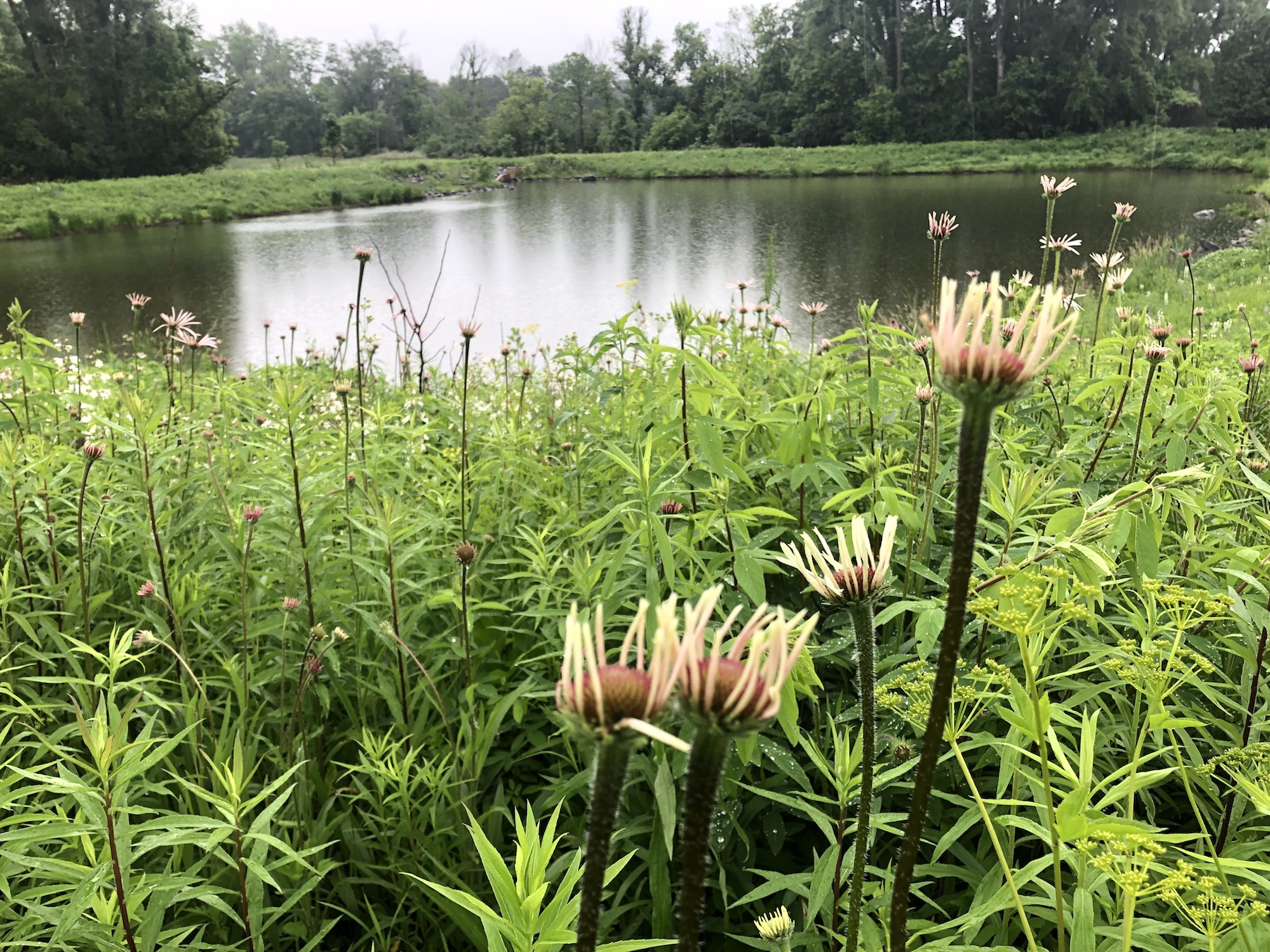 Above: Retaining pond on corner of Nakoma Road and Manitou Way on June 19, 2019 (63°).