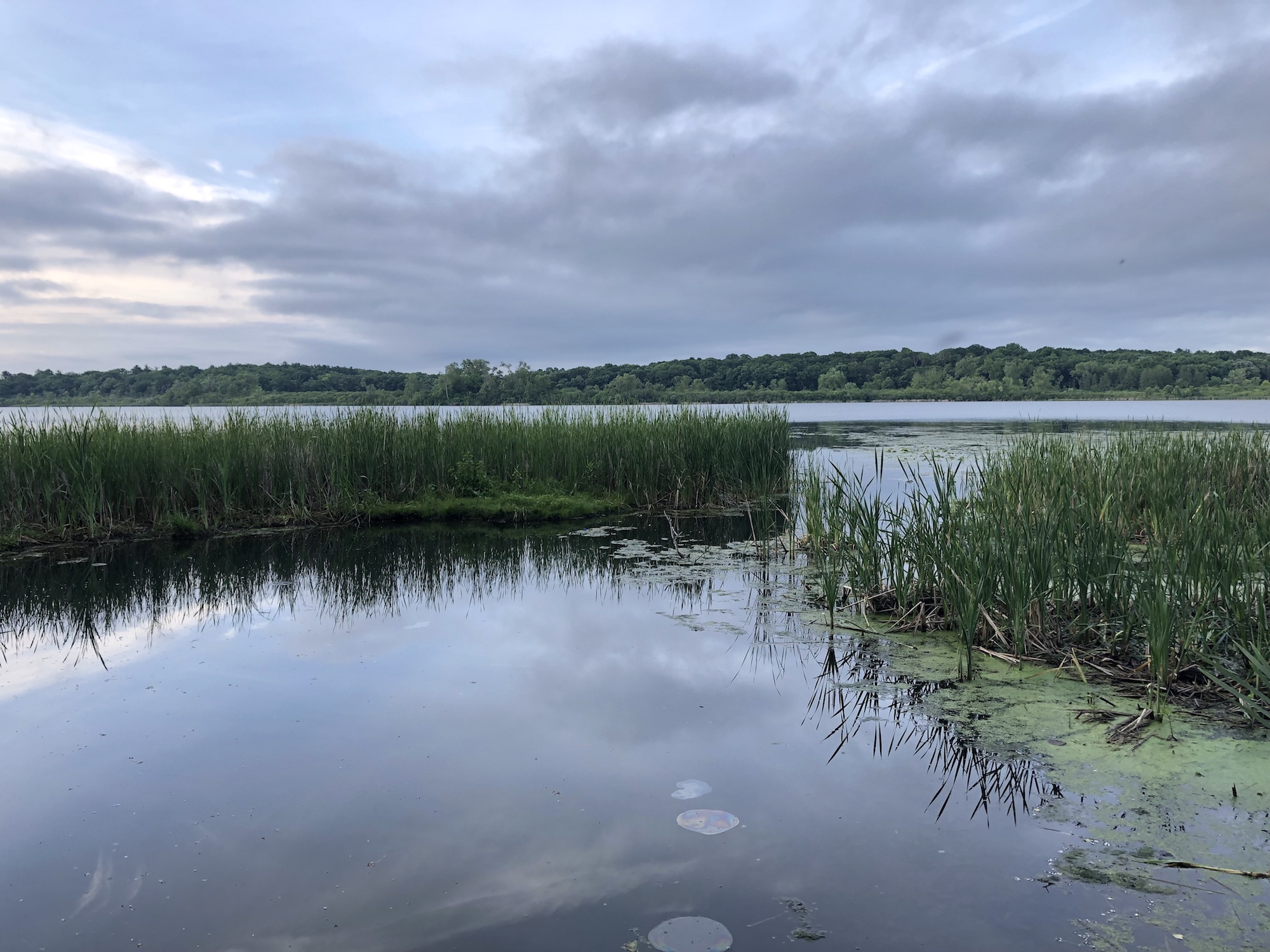 Above: Marion-Dunn Retaining Pond on June 20, 2019 (58°).