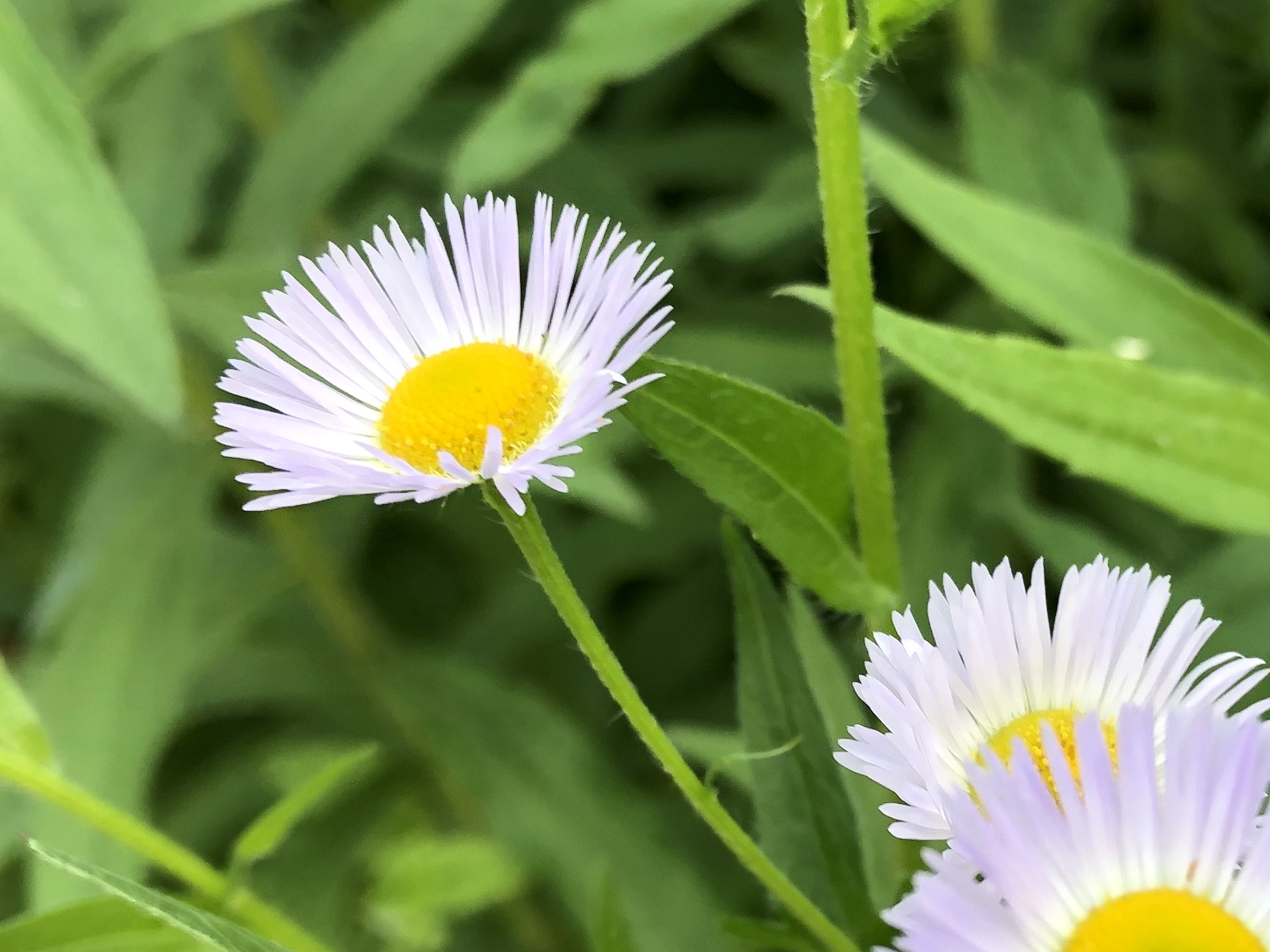 Above: Fleabane on the banks of the retaining pond on corner of Nakoma Road and Manitou Way on June 20, 2019 (58°).