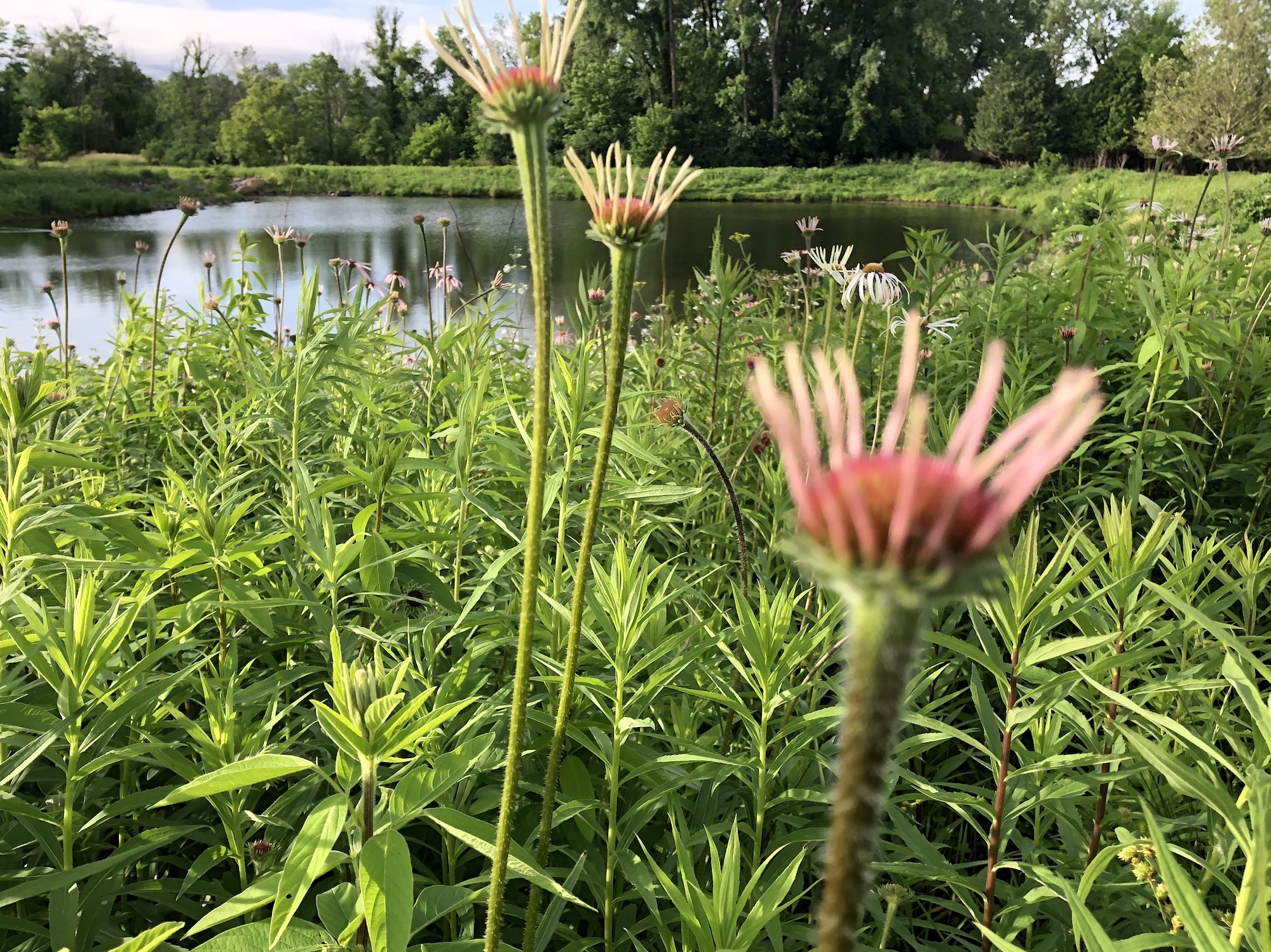 Above: Coneflowers on the banks of the retaining pond on corner of Nakoma Road and Manitou Way on June 20, 2019 (58°).