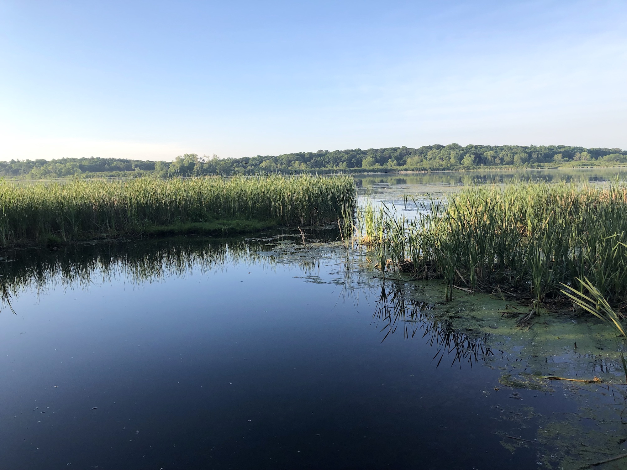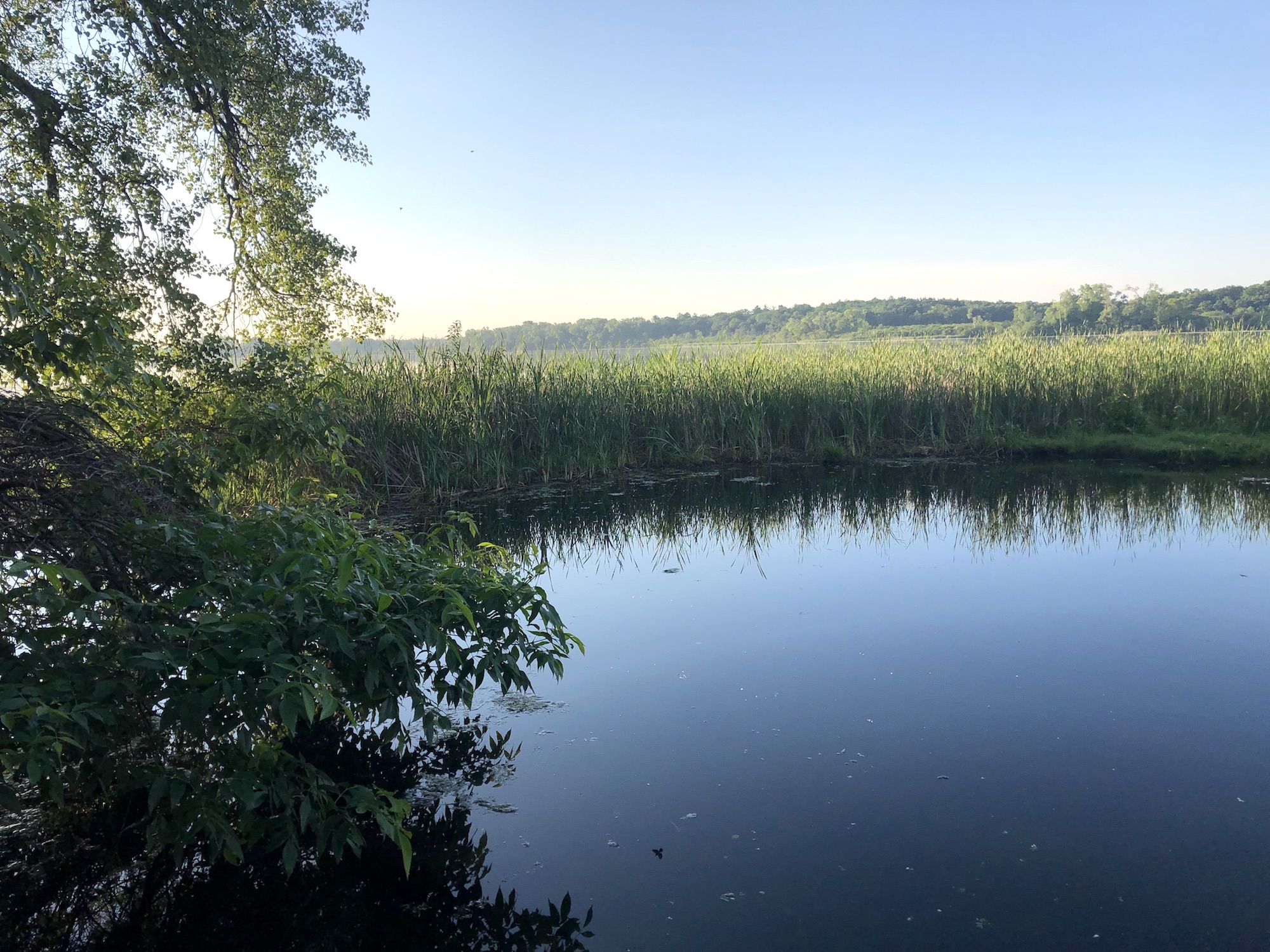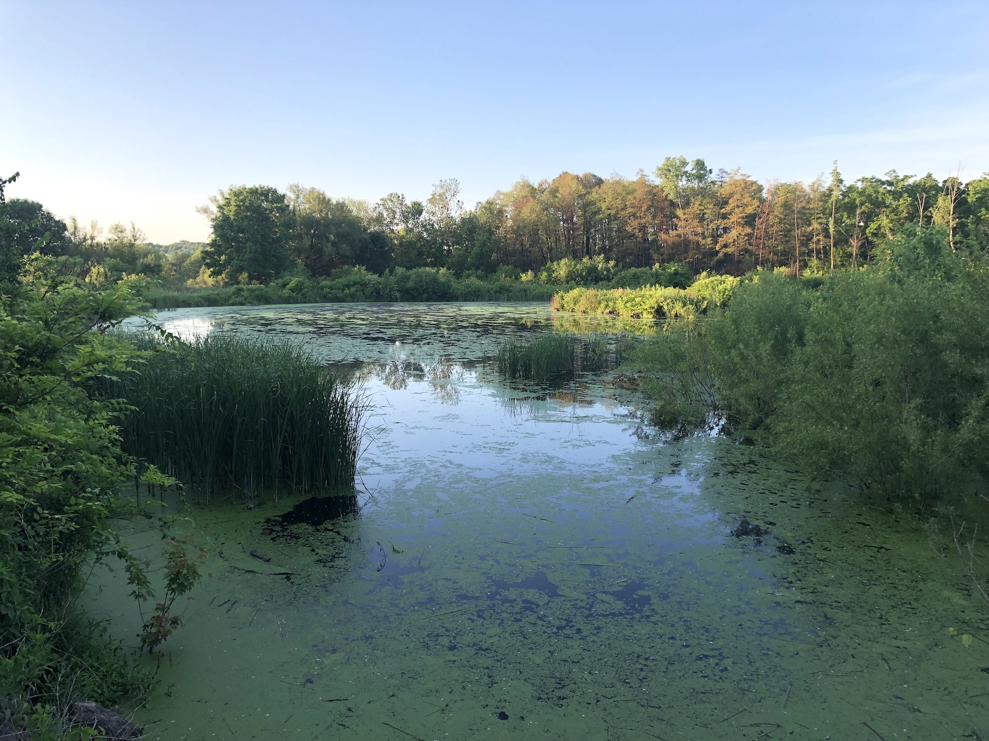 Above: Marion-Dunn Retaining Pond on June 21, 2019 (58°).