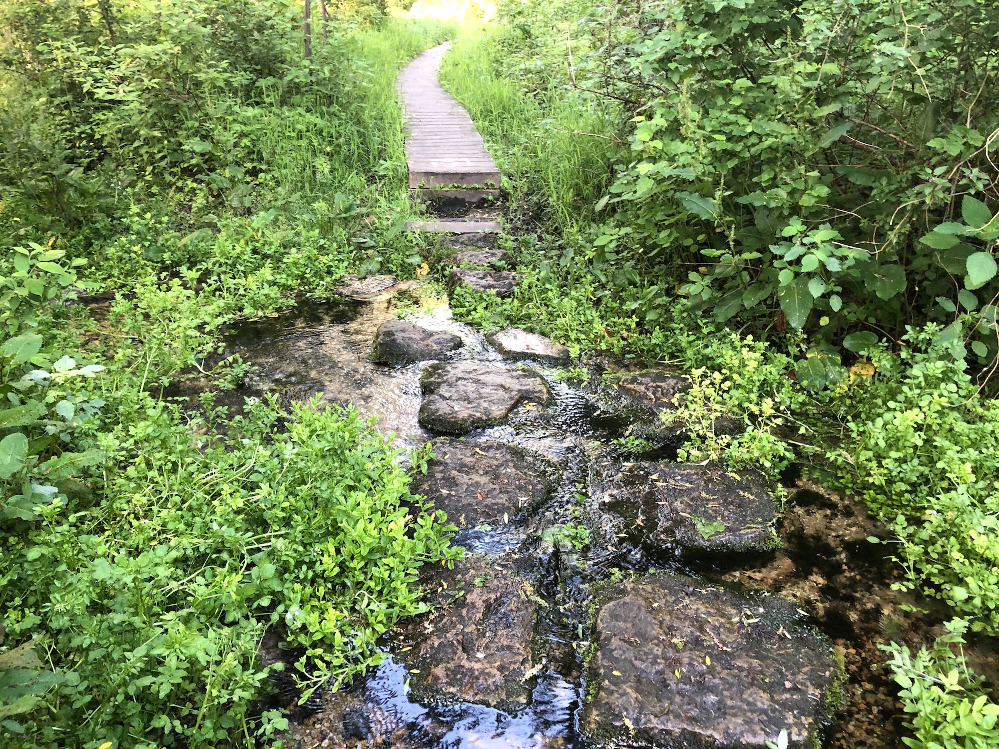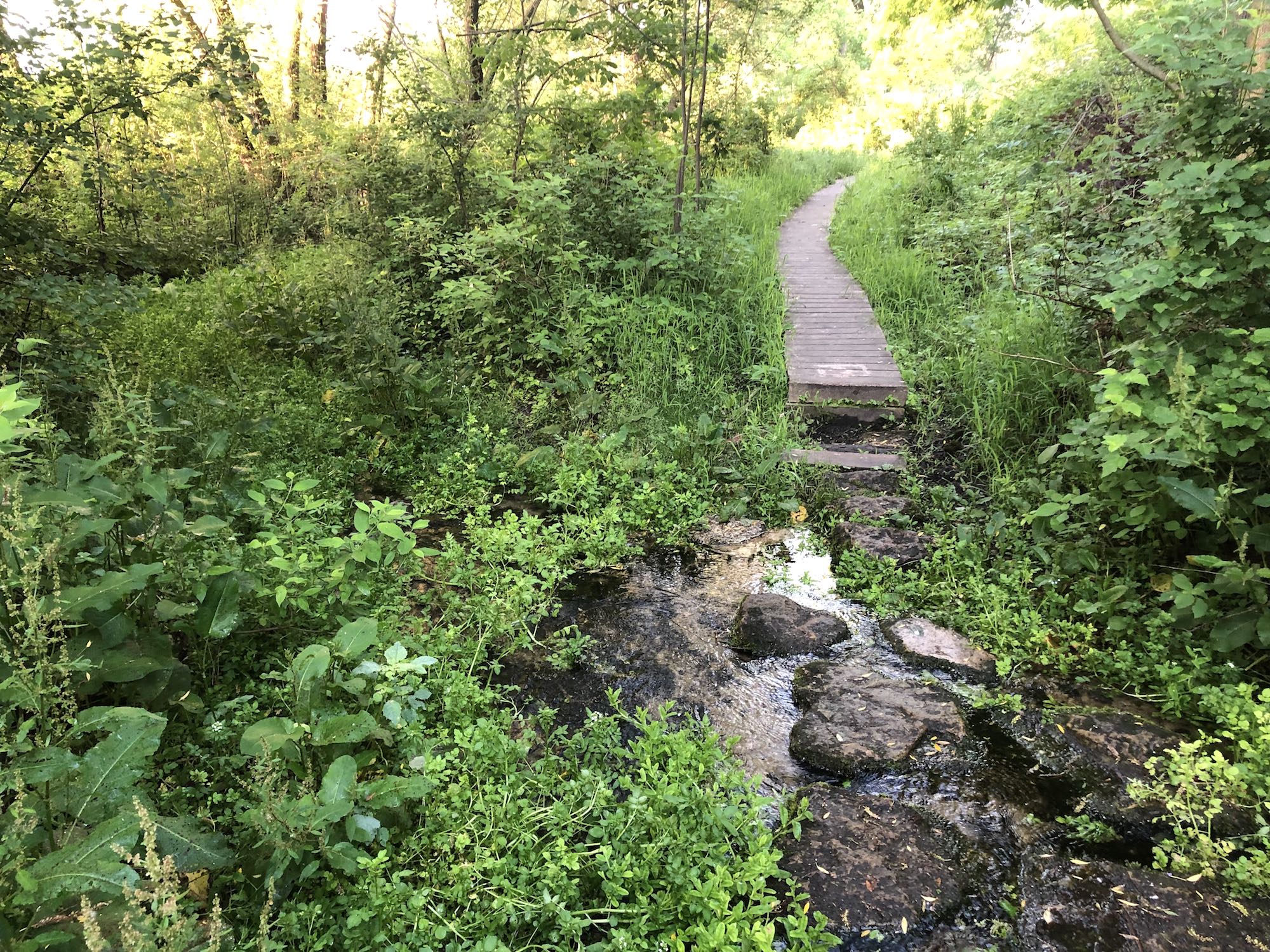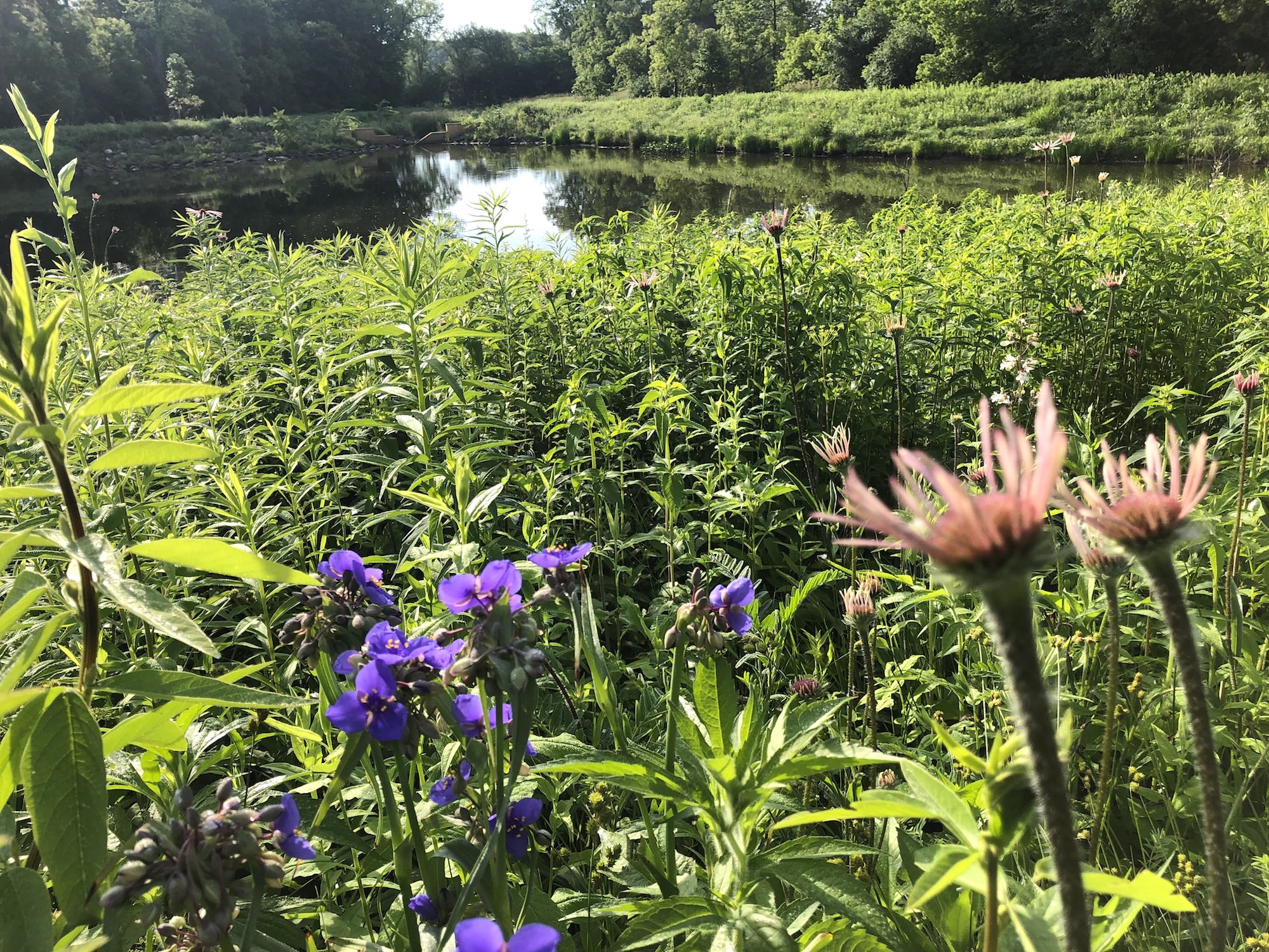 Above: Retaining pond on corner of Nakoma Road and Manitou Way on June 21, 2019 (58°).