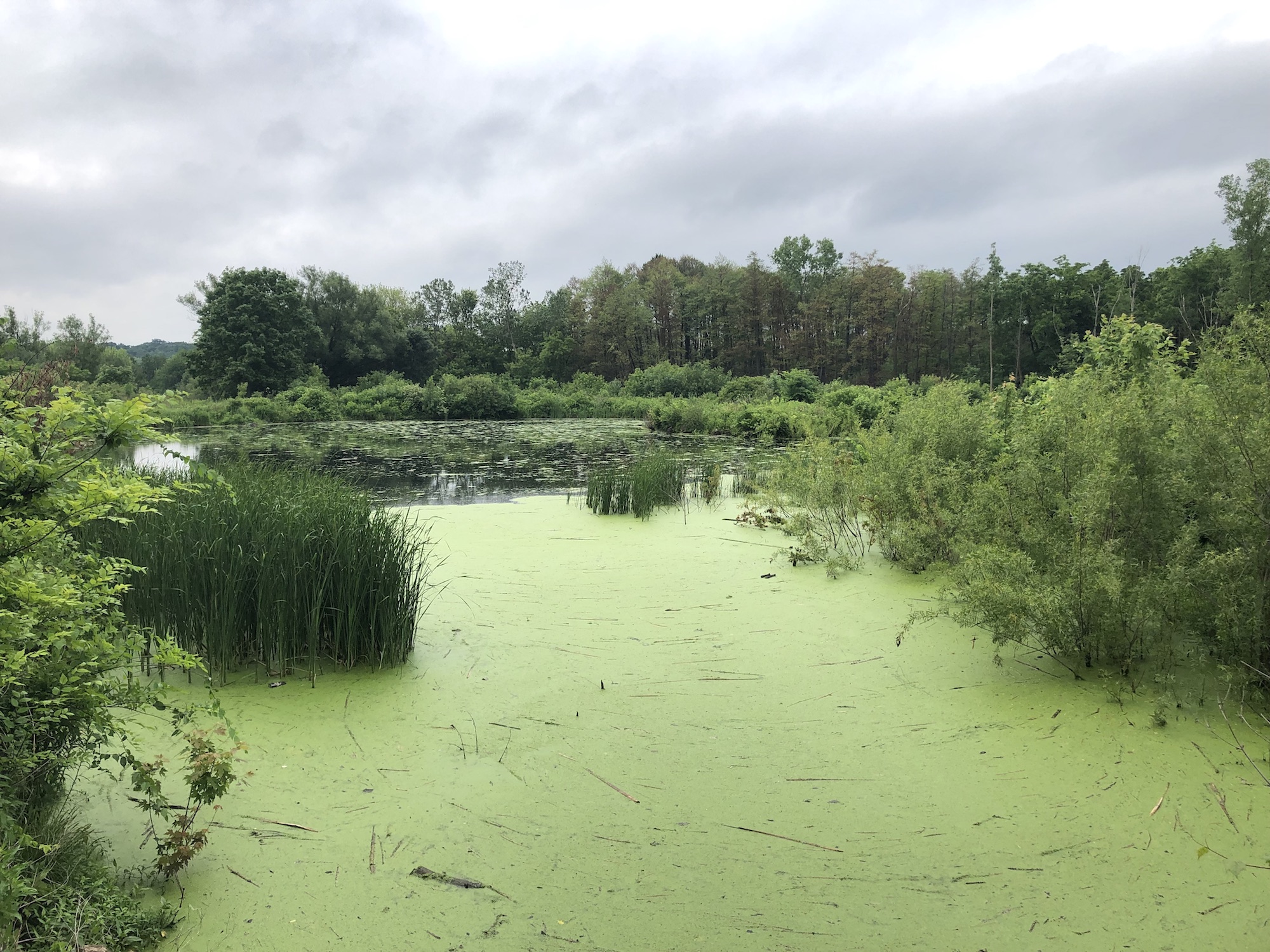 Above: Marion-Dunn Retaining Pond on June 23, 2019 (67°).