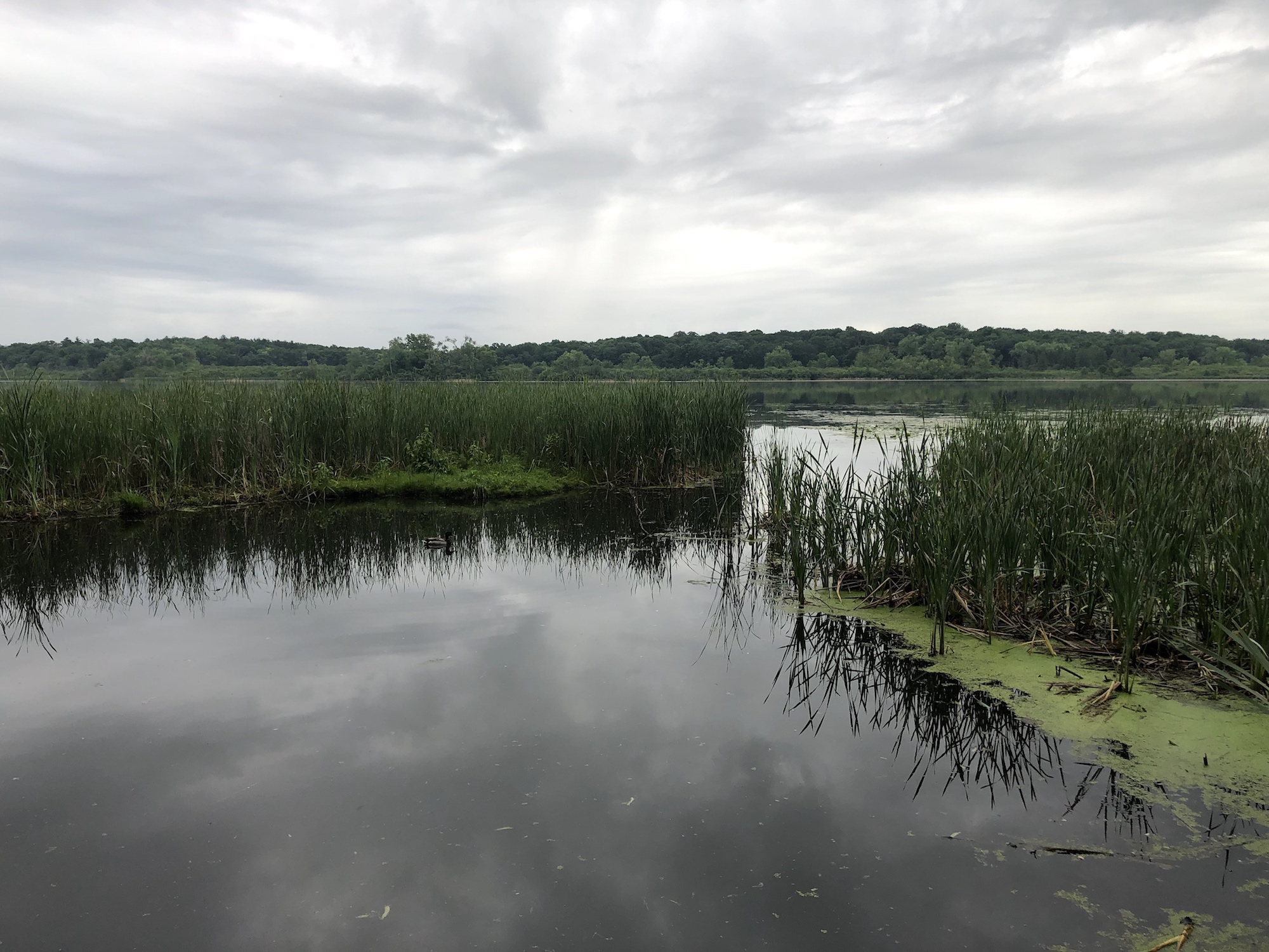 Above: Marion-Dunn Retaining Pond on June 24, 2019 (68°).