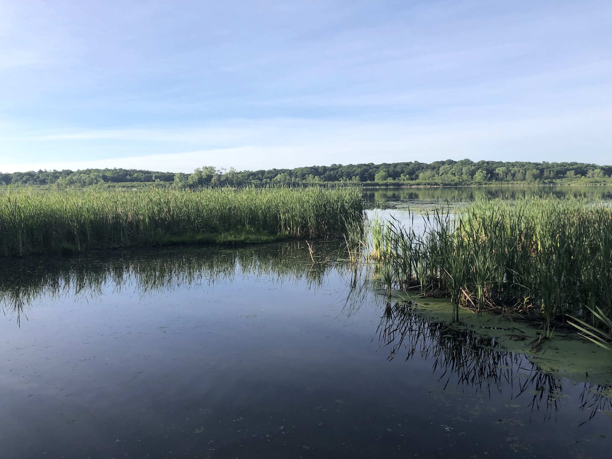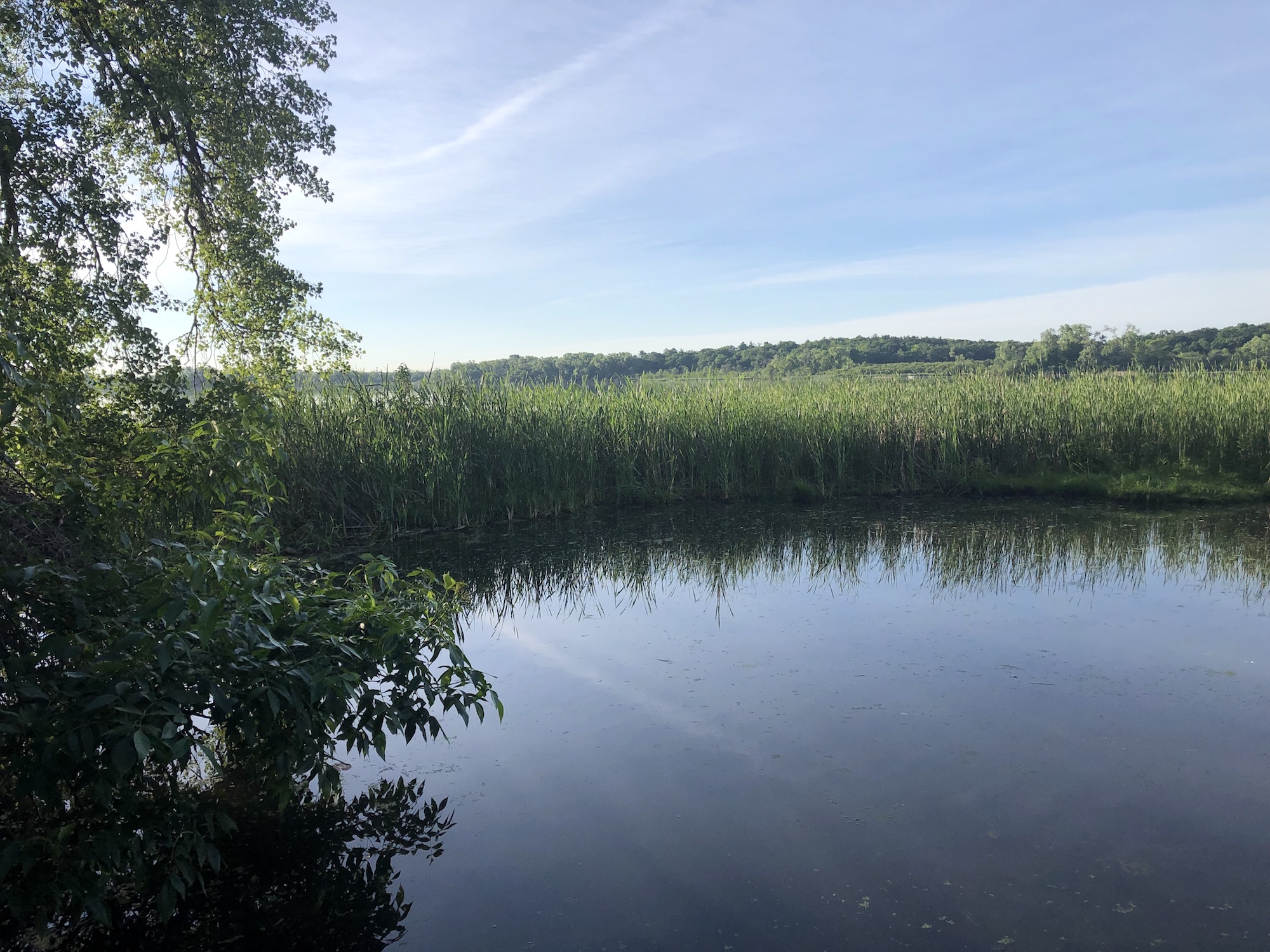 Above: Marion-Dunn Retaining Pond on June 26, 2019 (61°).