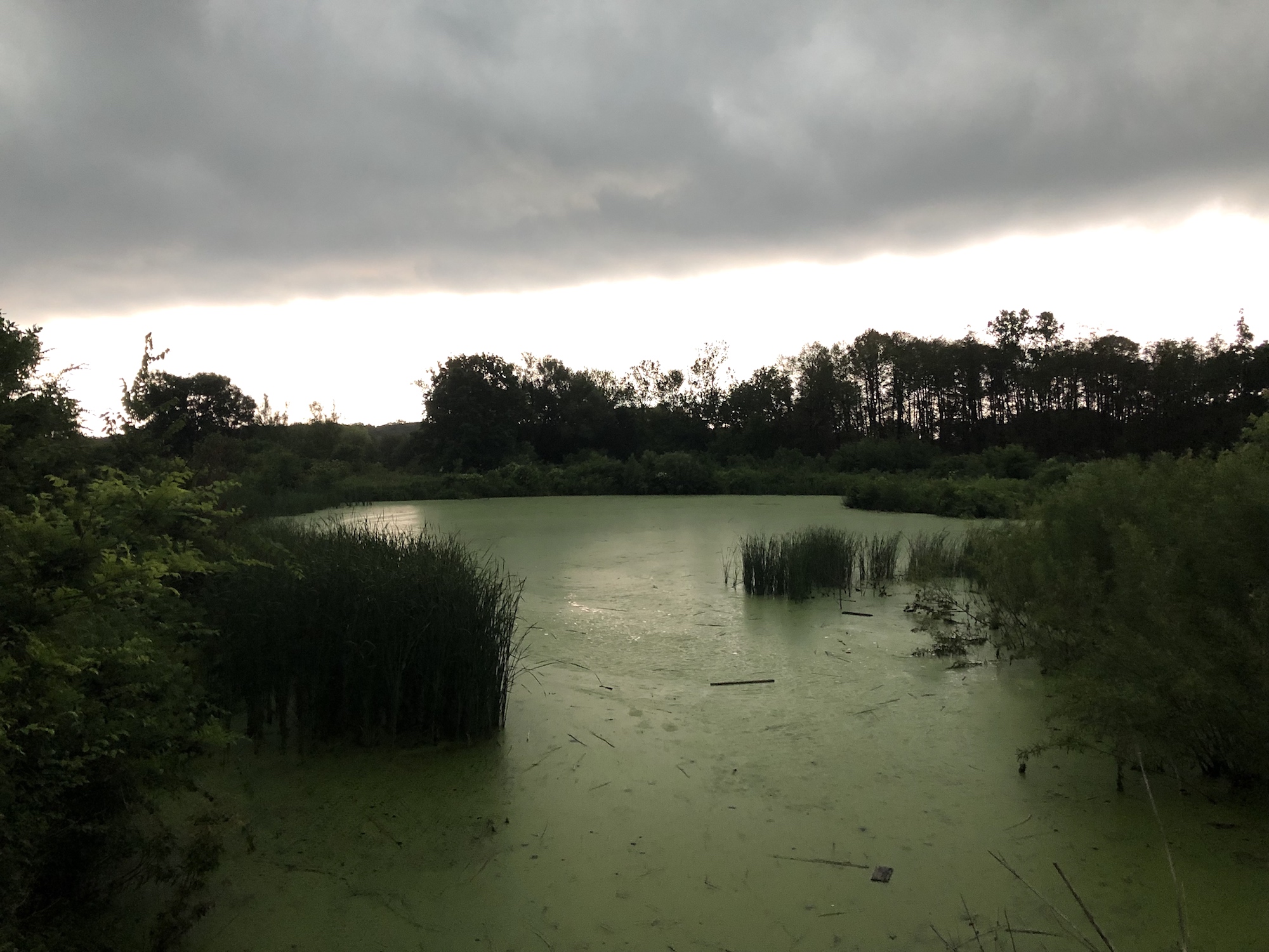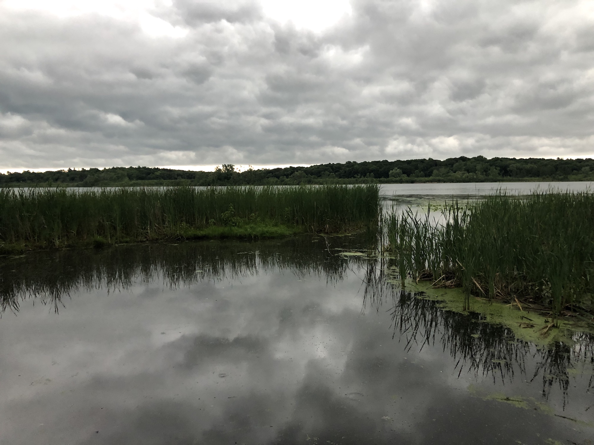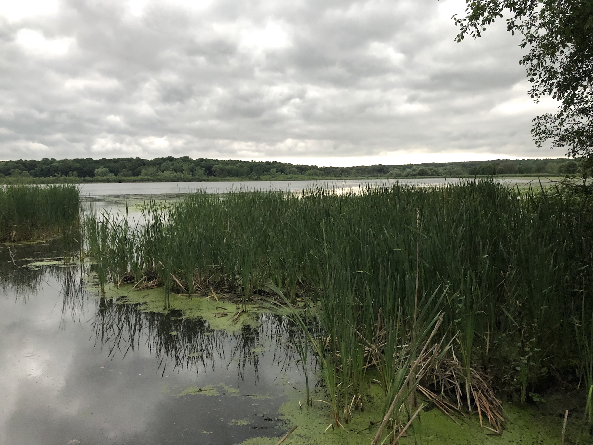 Above: Marion-Dunn Retaining Pond on June 28, 2019 (72°).