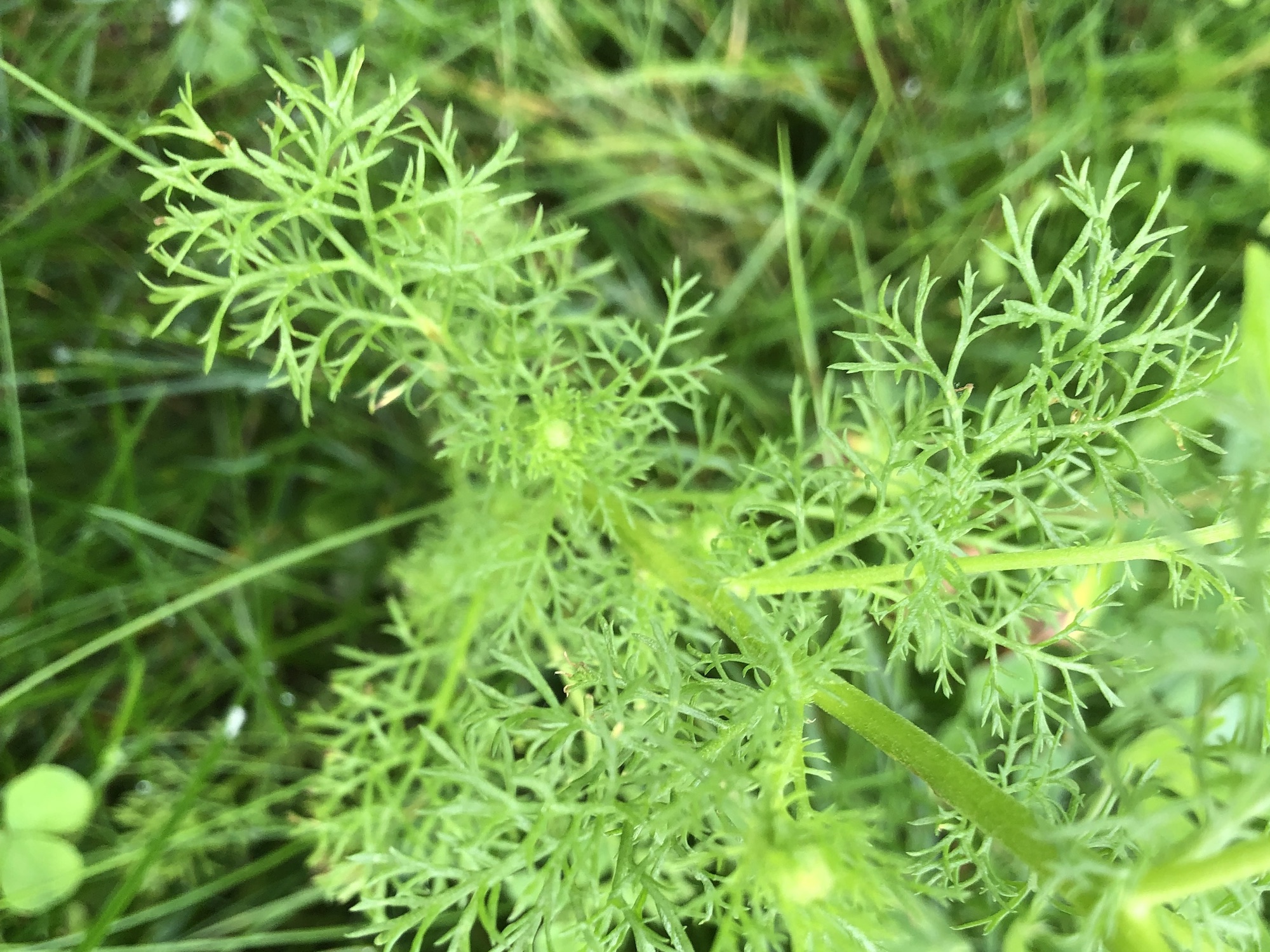 Above: Chamomile along sidewalk between Marion Dunn and Oak Savanna on June 30, 2019 (78°).