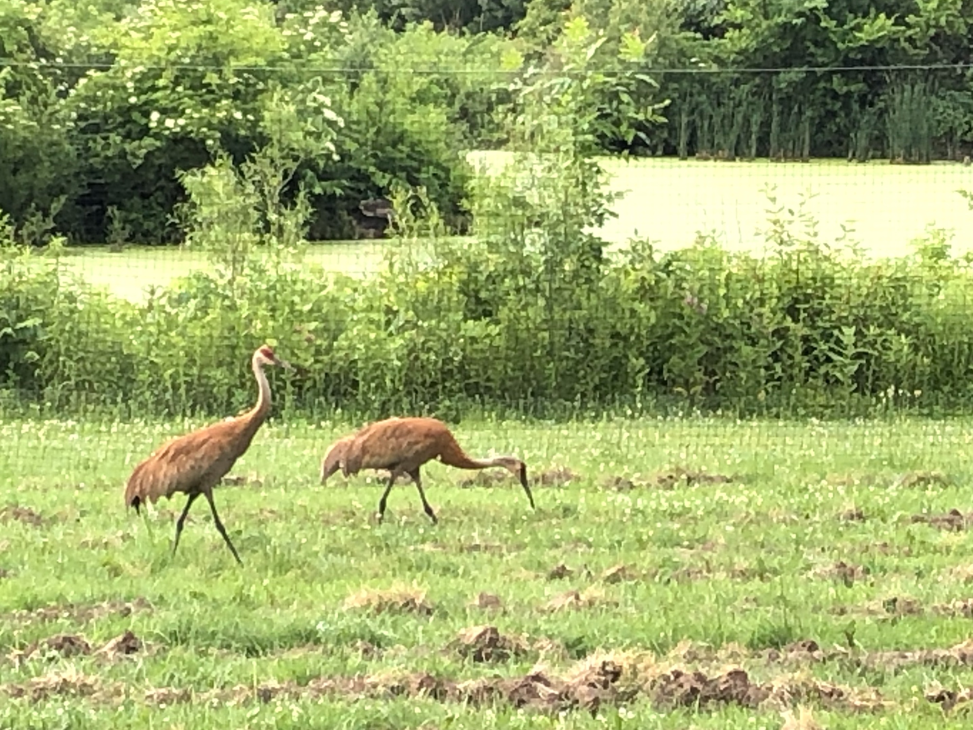 Below: Sandhill Cranes feasting in Three Sister Garden.