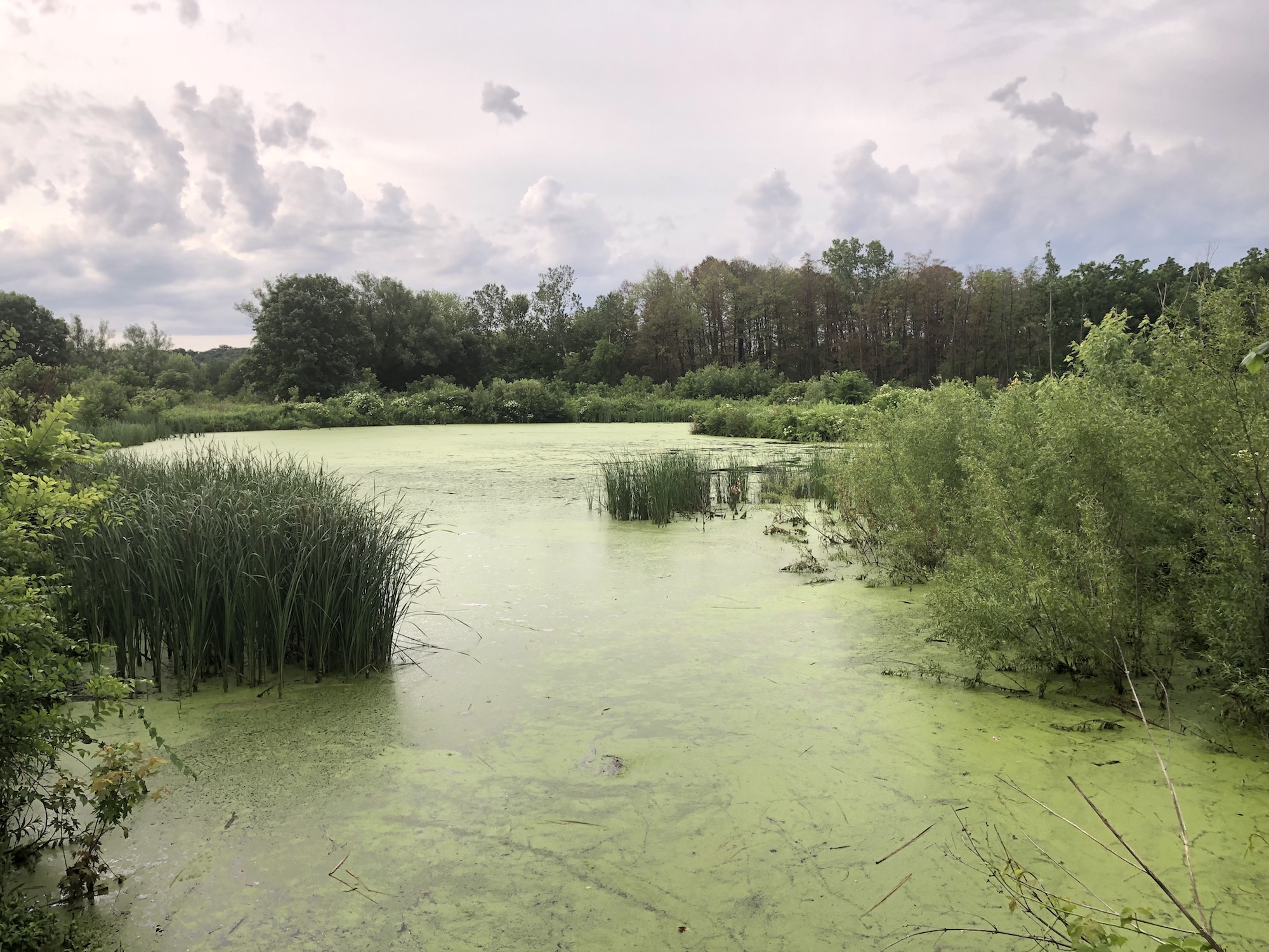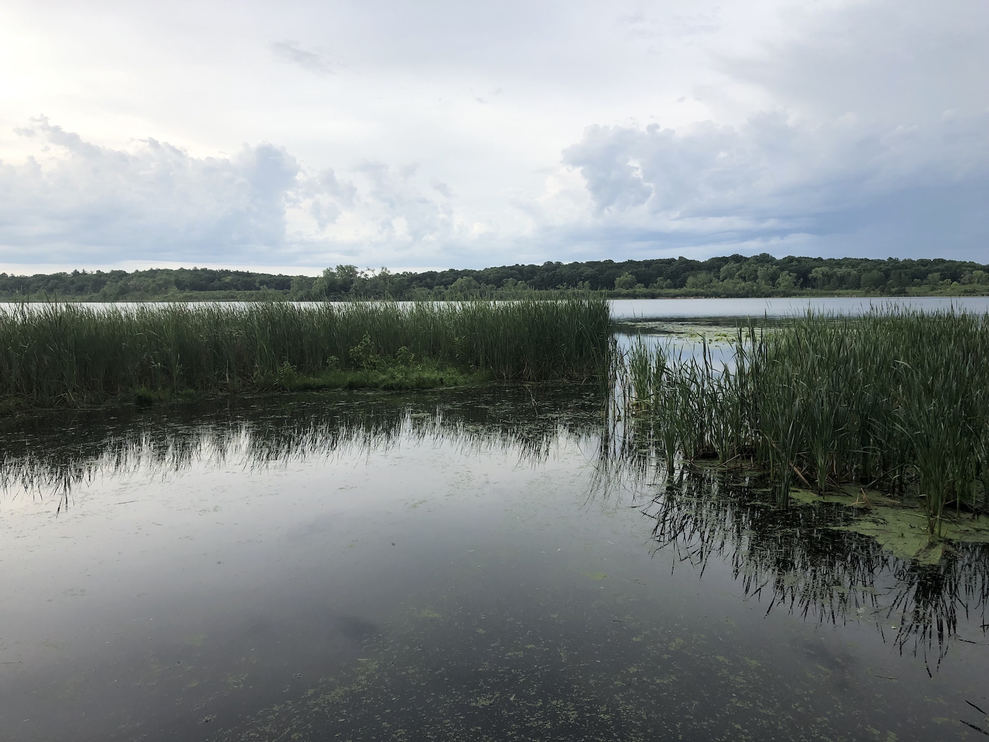 Above: Marion-Dunn Retaining Pond on July 1, 2019 (68°).
