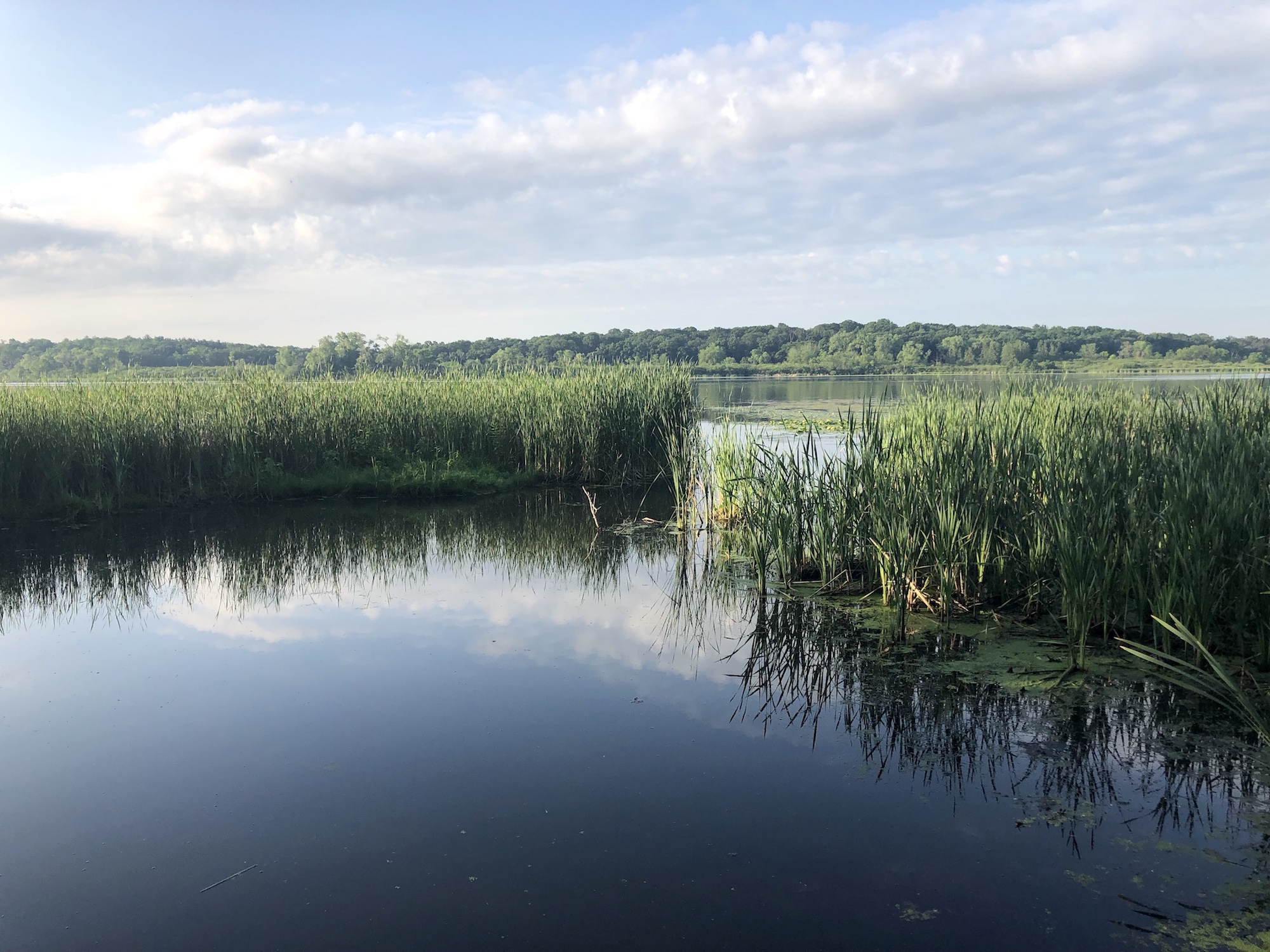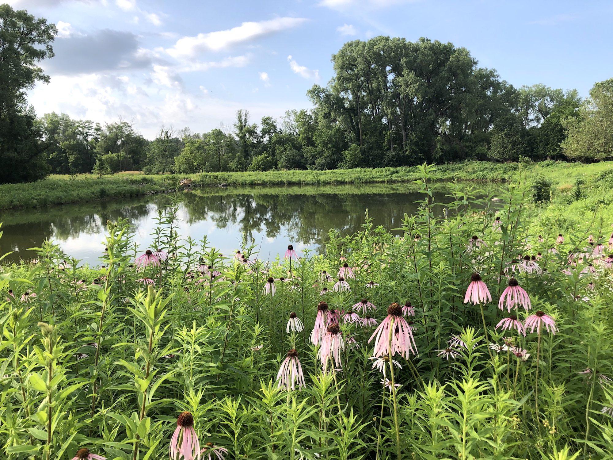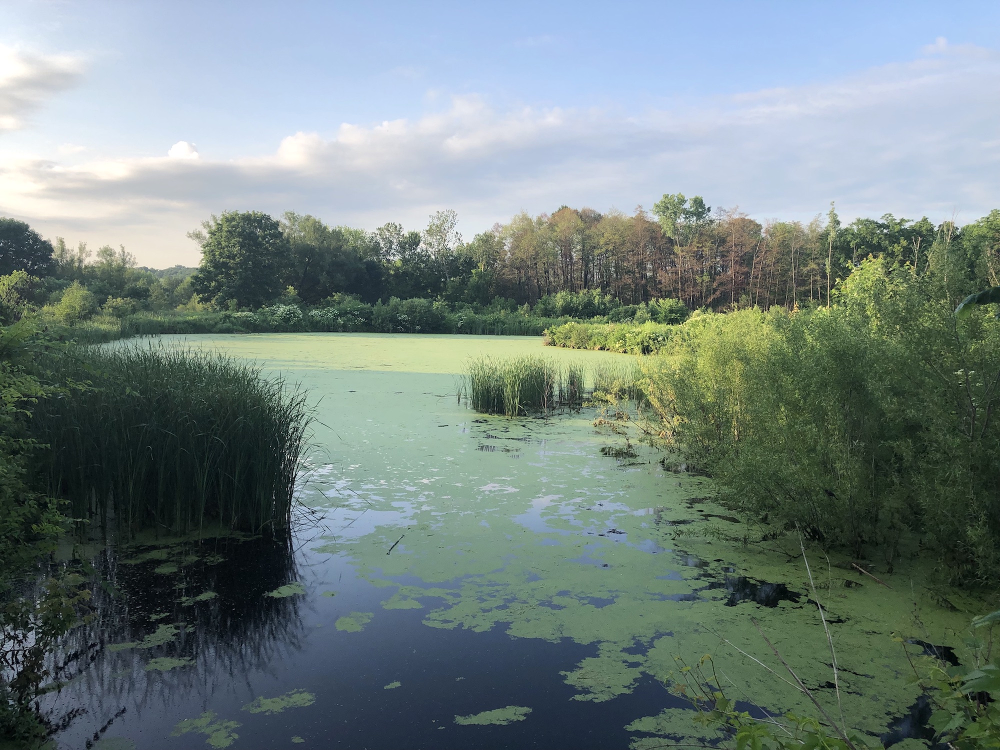 Above: Marion-Dunn Retaining Pond on July 3, 2019 (68°).
