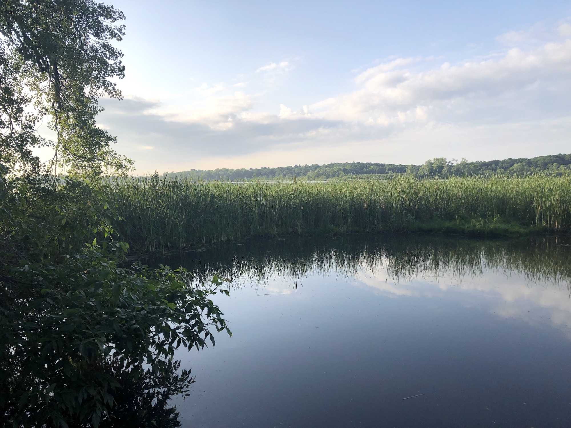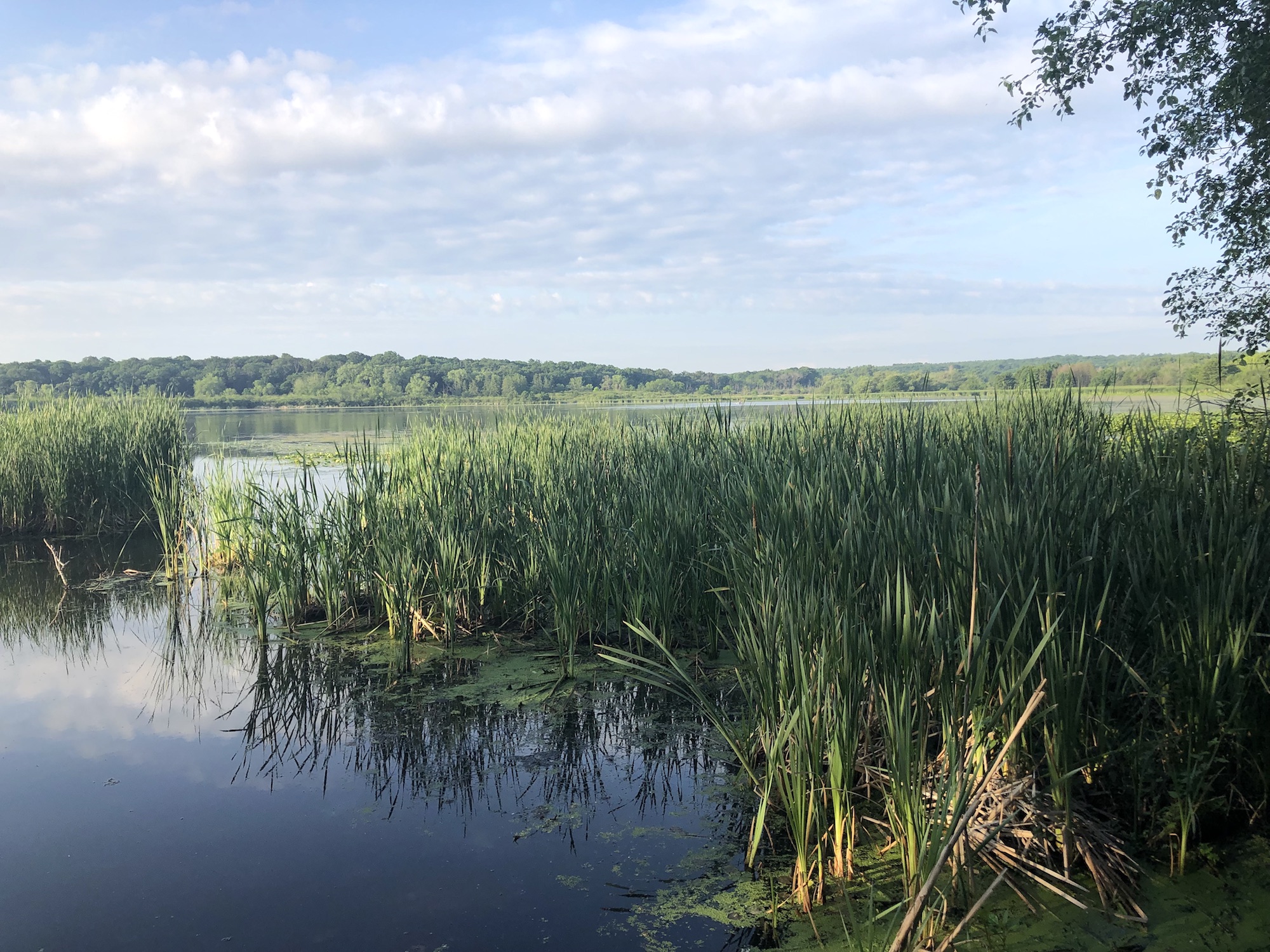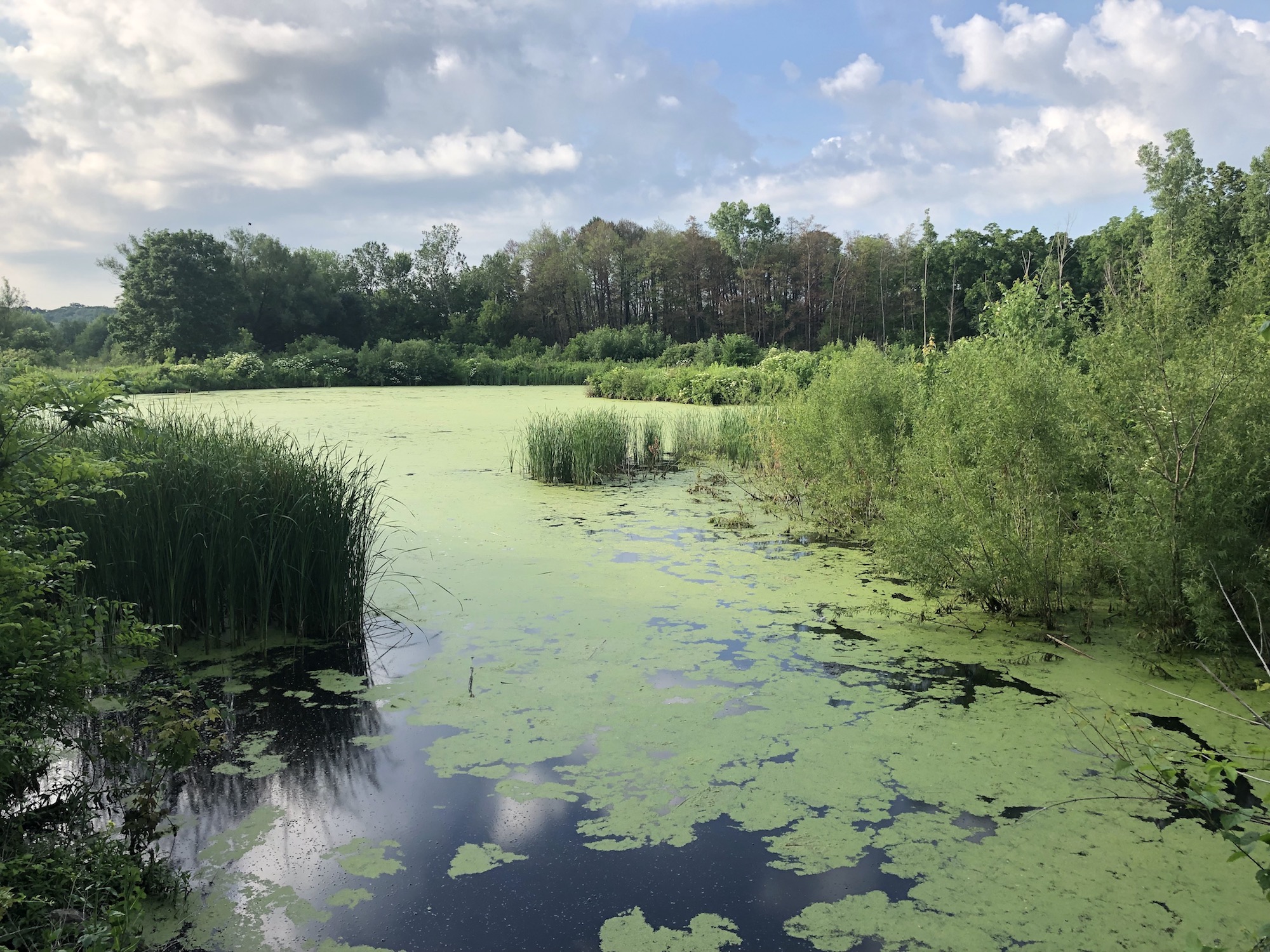 Above: Marion-Dunn Retaining Pond on July 3, 2019 (68°).