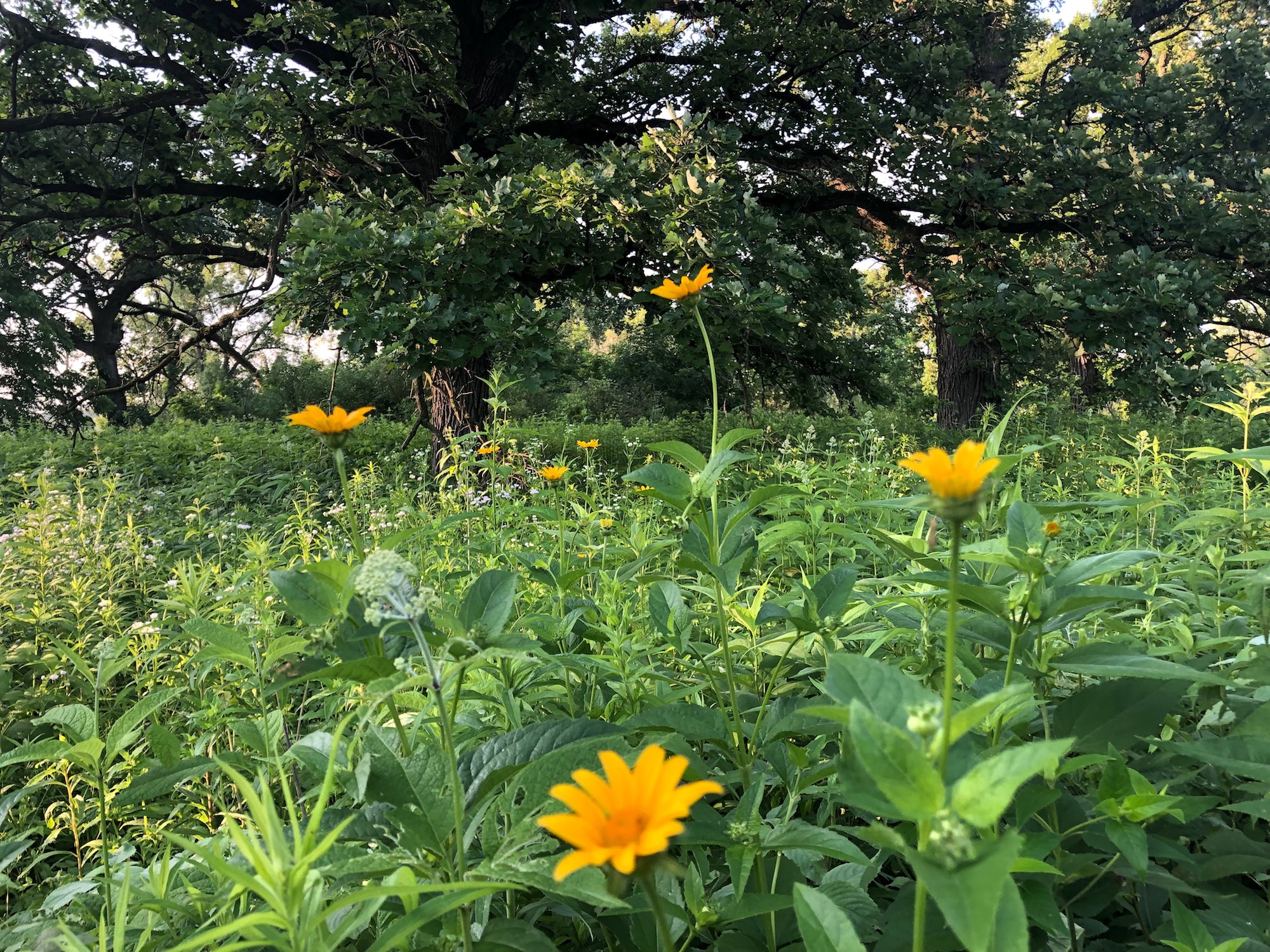 Above: Oak Savanna on July 3, 2019 (68°). False sunflower in foreground.