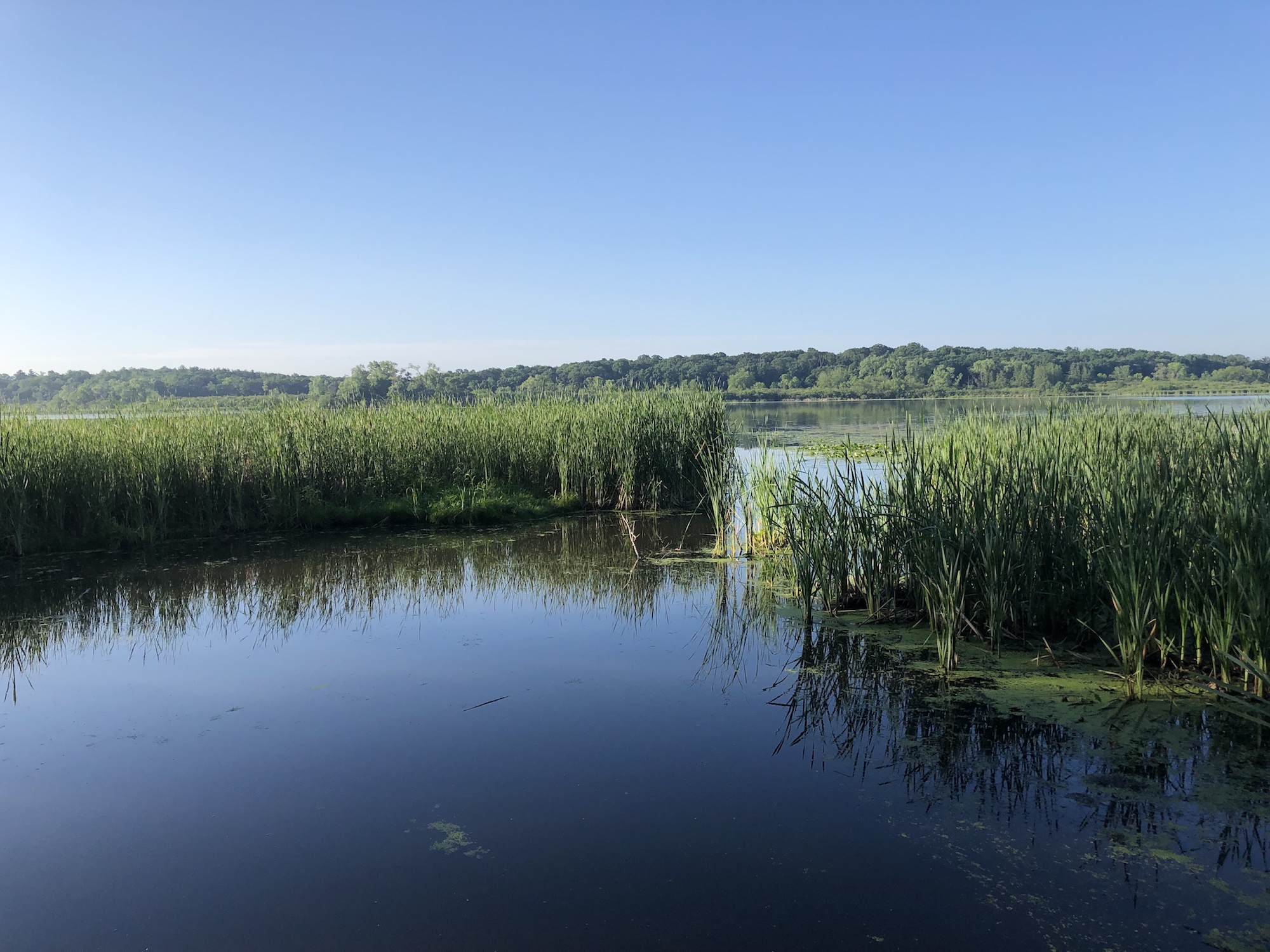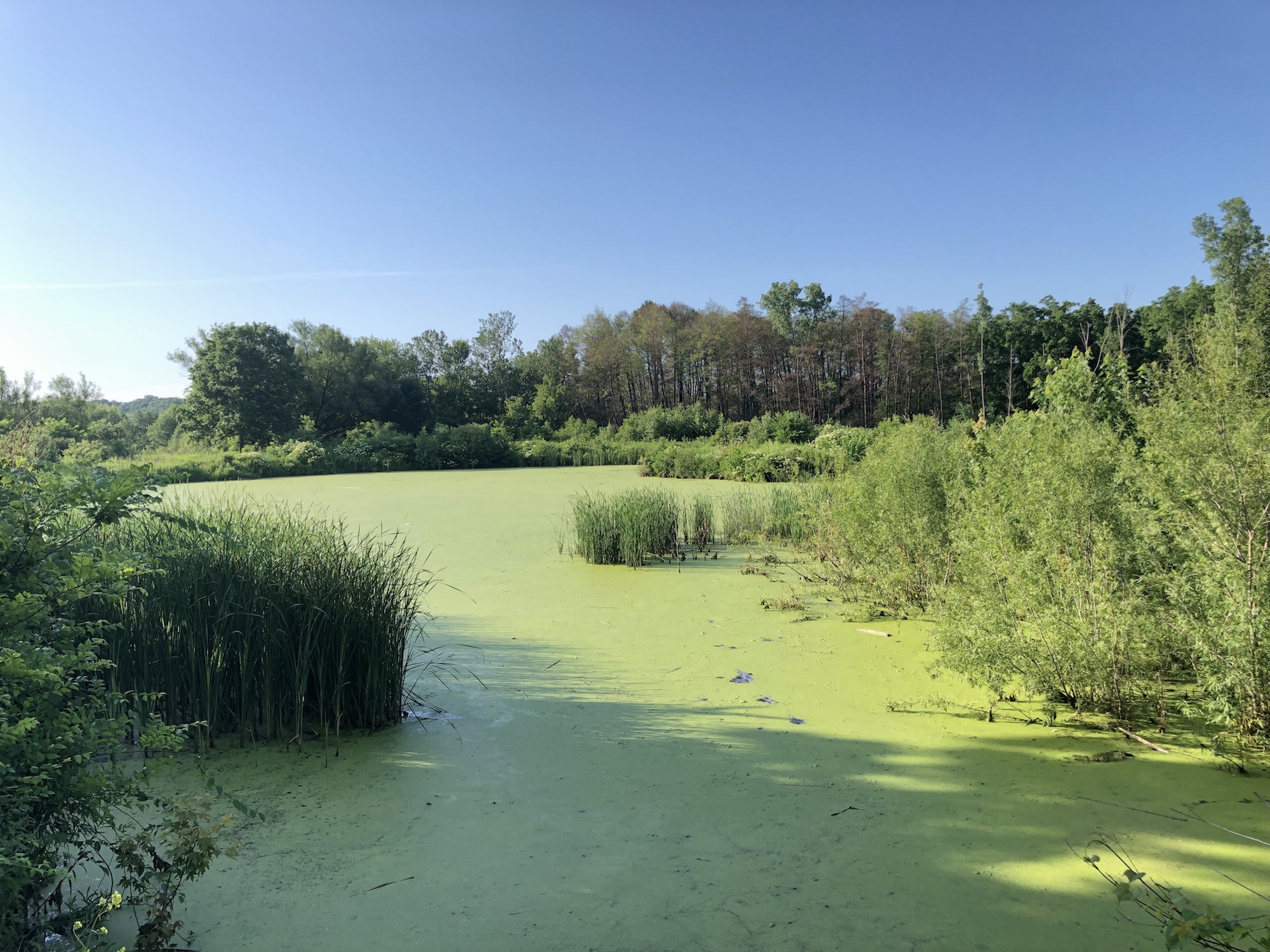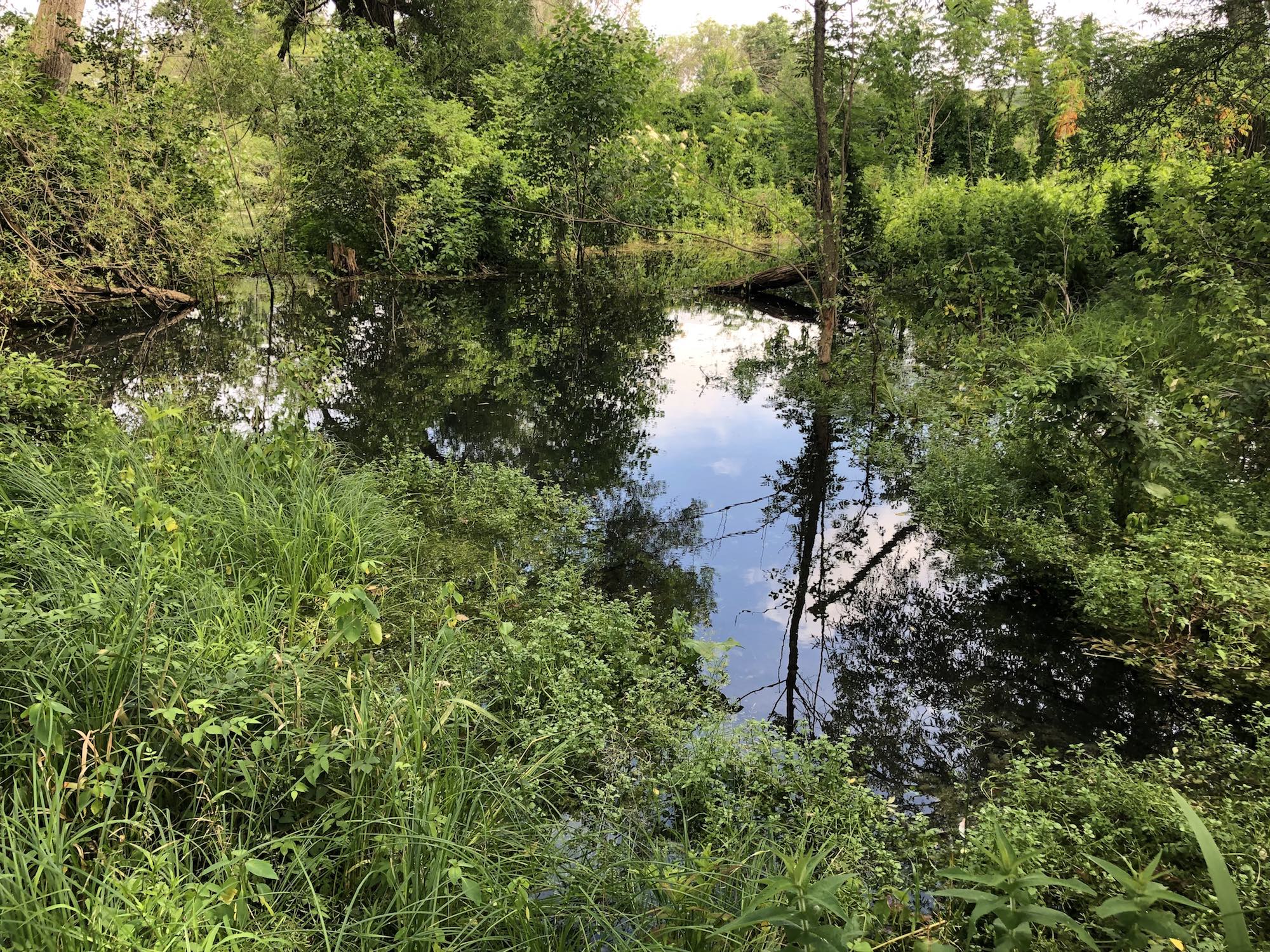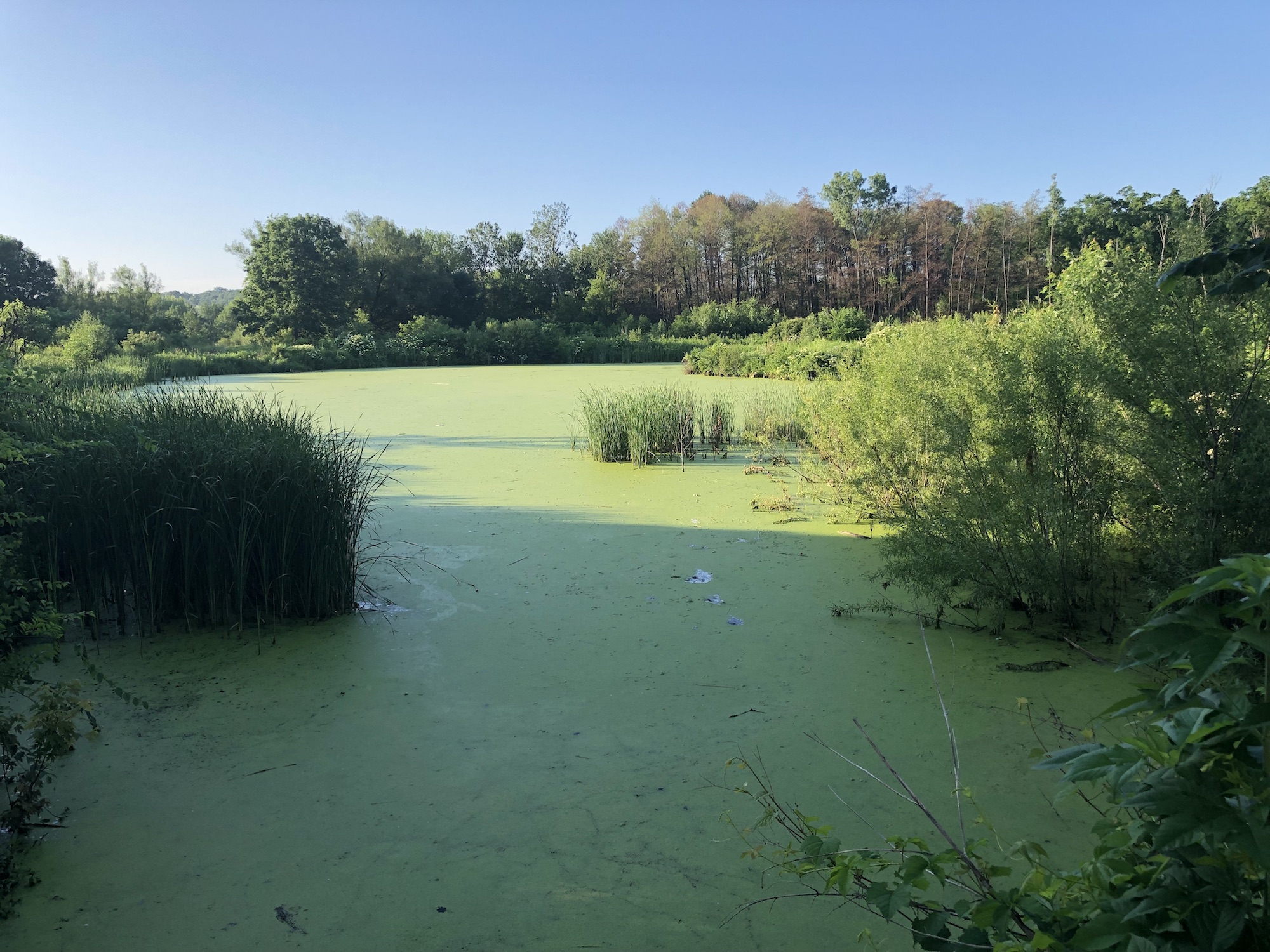 Above: Marion-Dunn Retaining Pond on July 5, 2019 (74°).