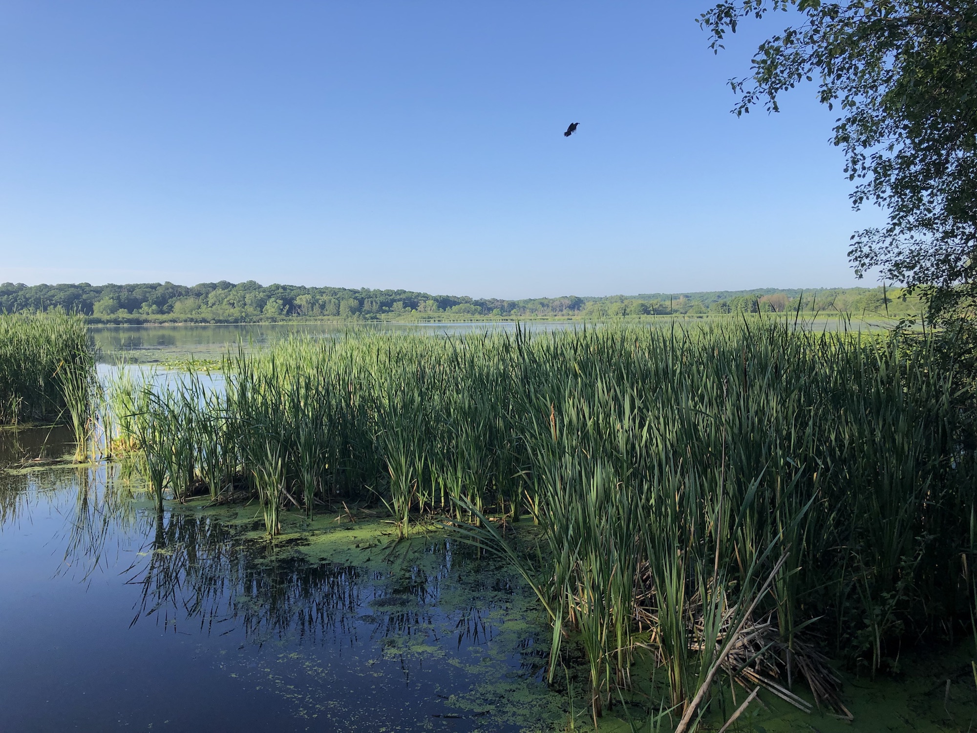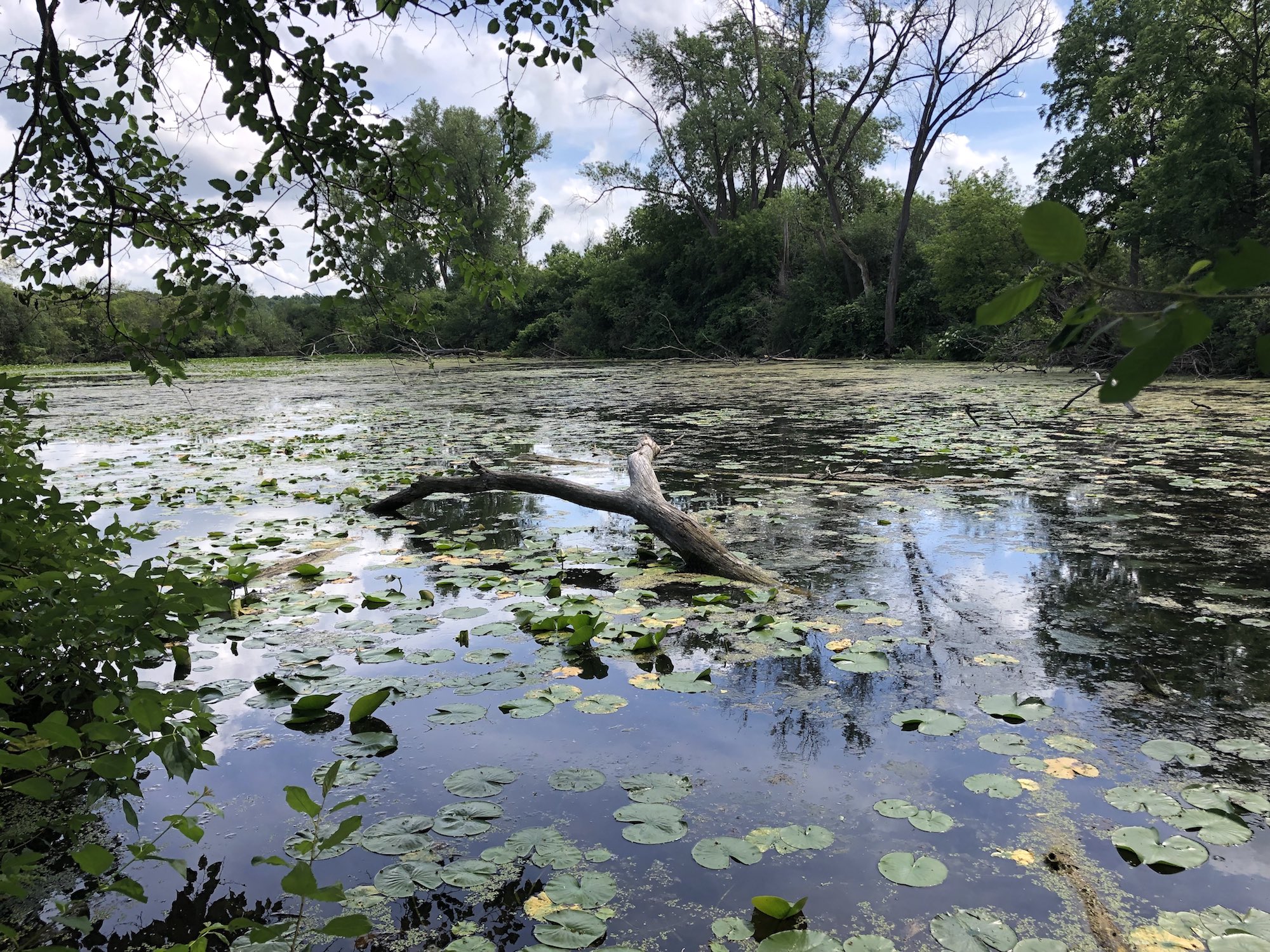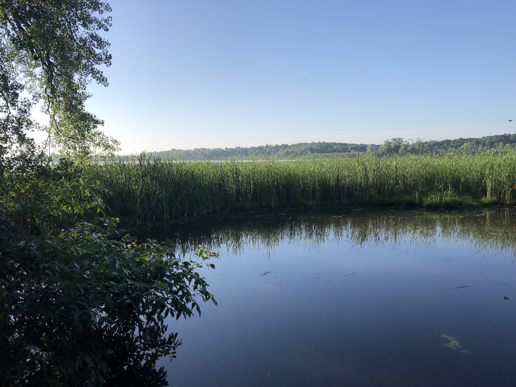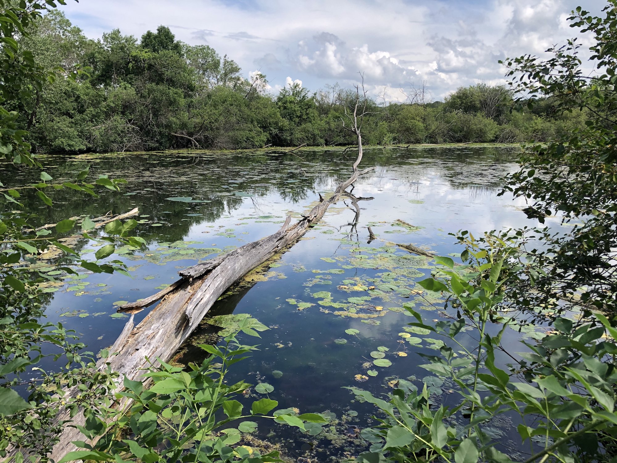Above: Marion-Dunn Retaining Pond on July 5, 2019 (74°).