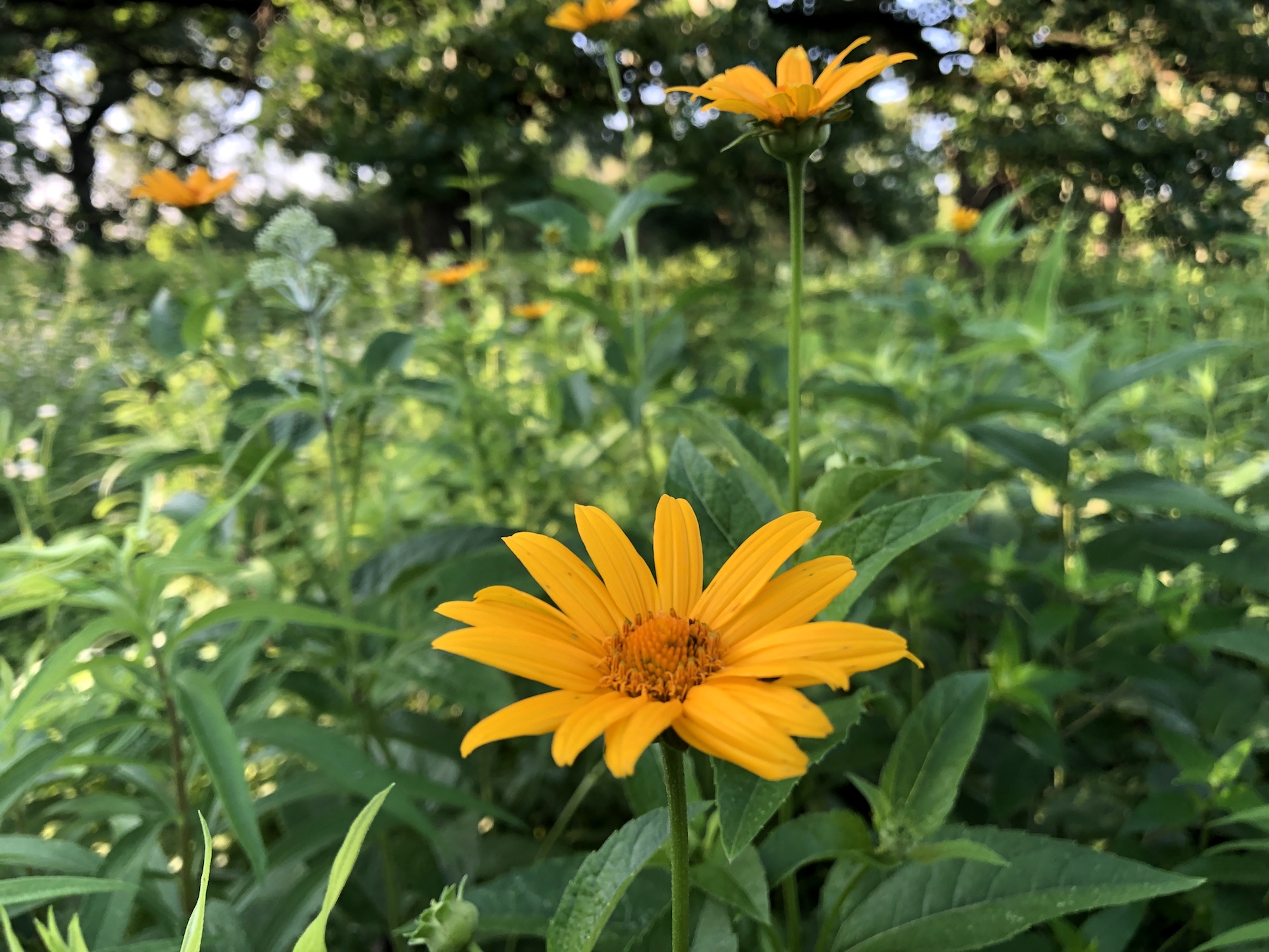 Above: Joe Pye Weed growing tall andd beginning to form flower heads in Oak Savanna on July 5, 2019 (74°).