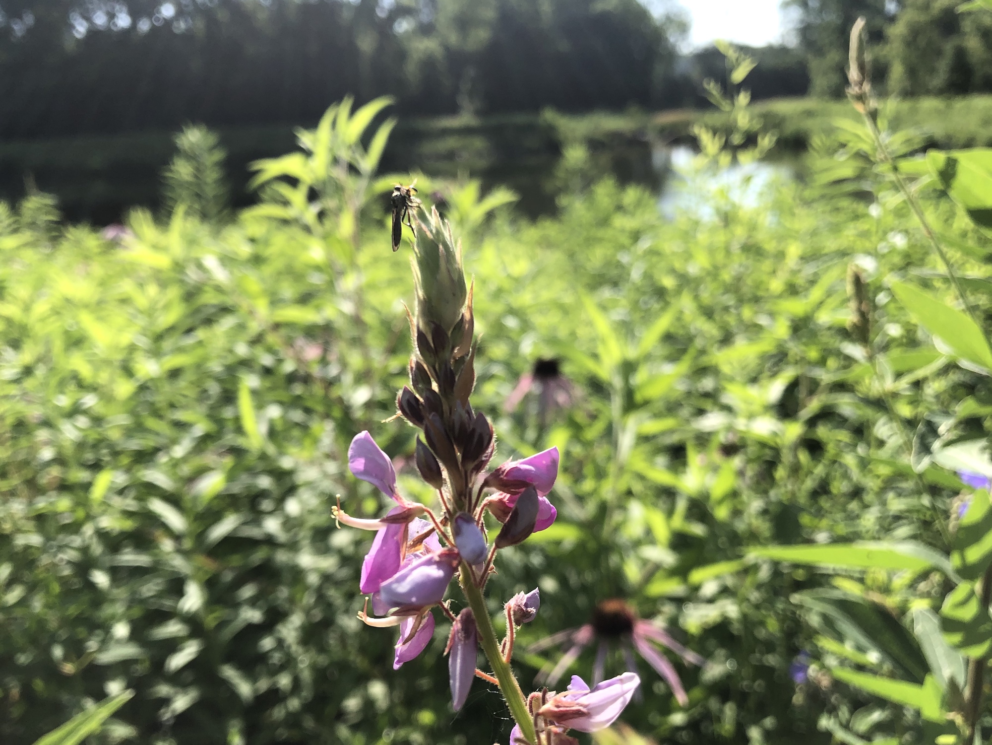 Above: Showy Tick Trefoil on the banks of the retaining pond on July 5, 2019 (74°).