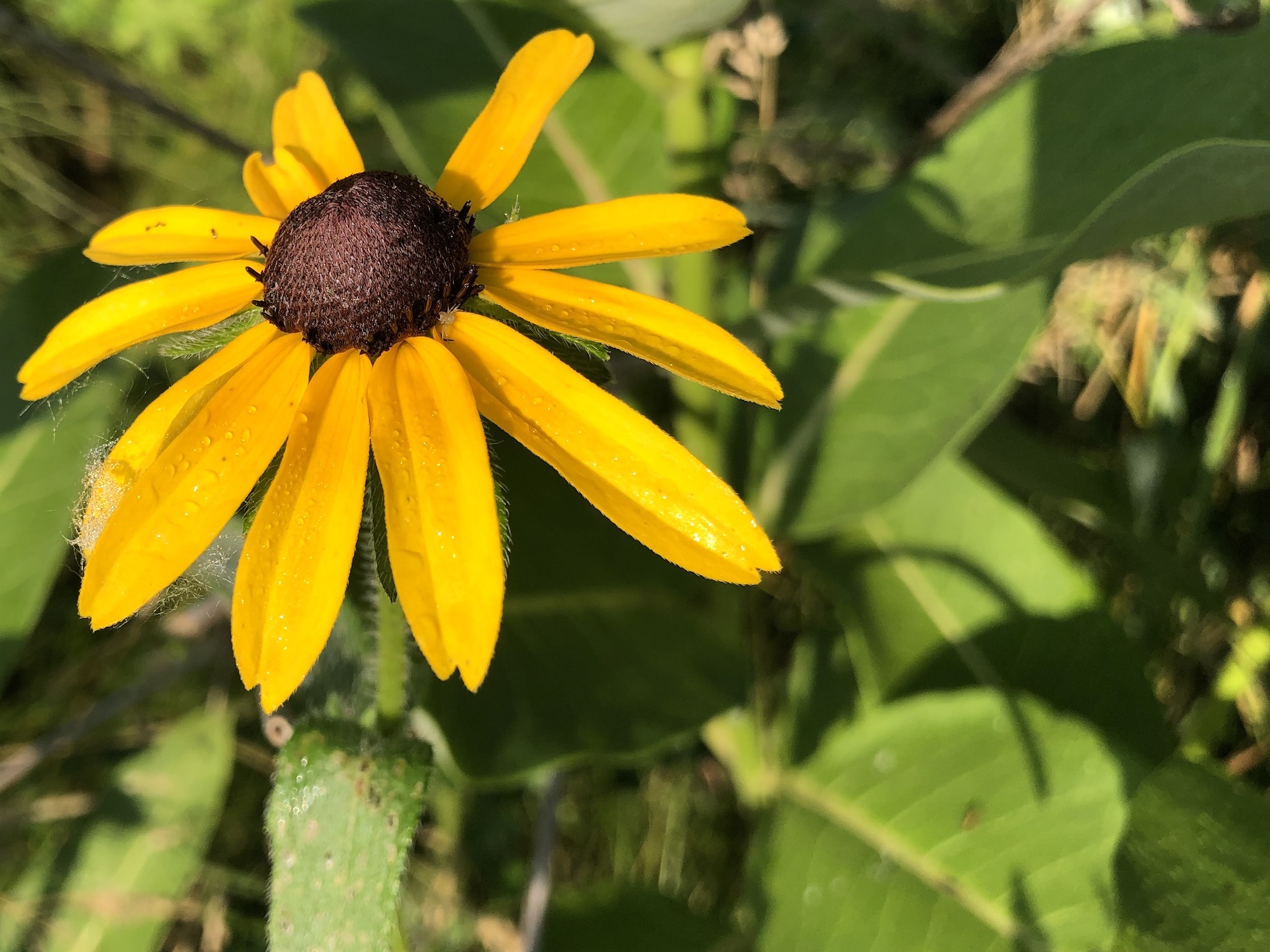 Above: Black-Eyed Susan on the banks of the Marion Dunn pond on July 8, 2019 (64°).