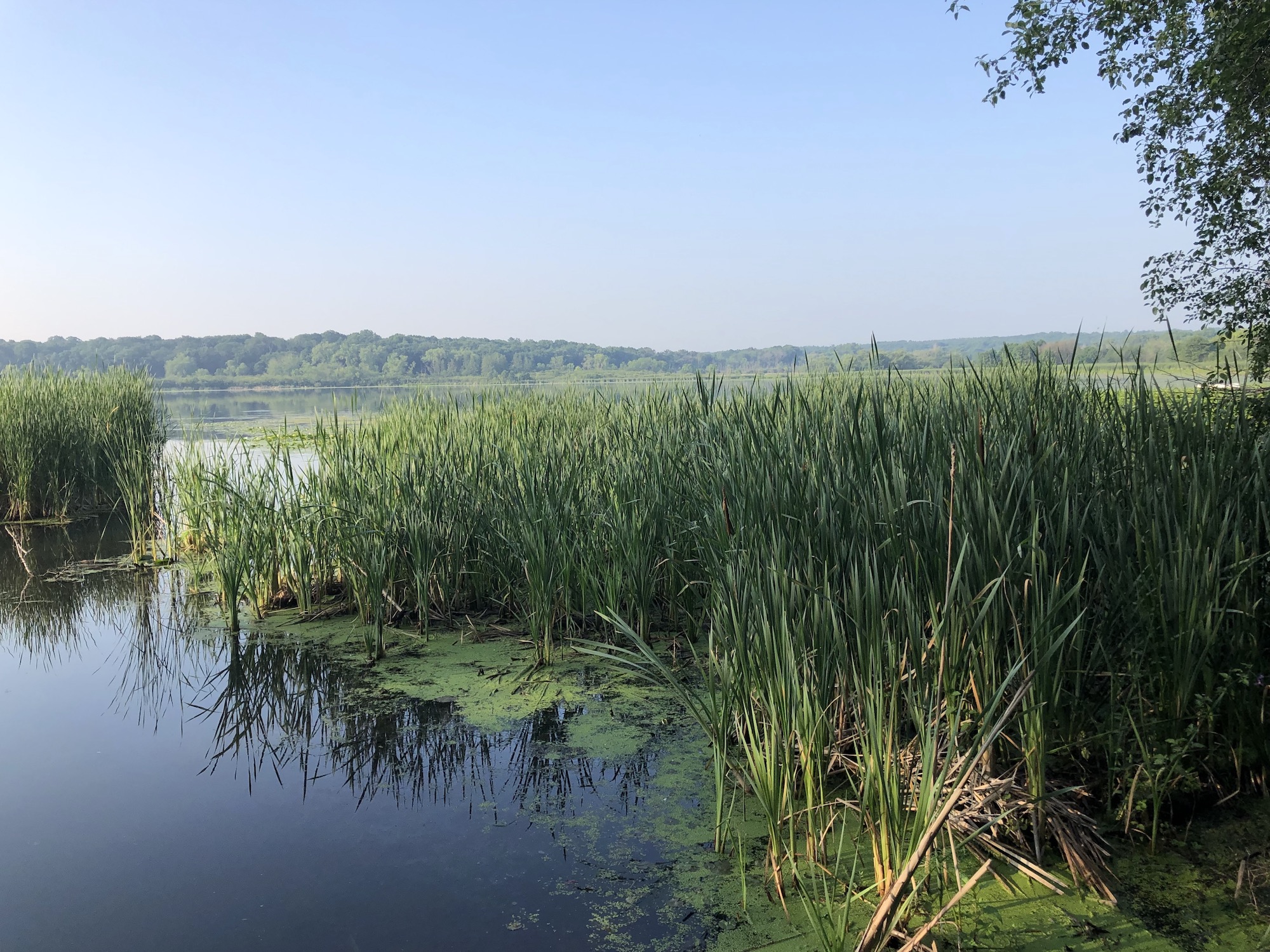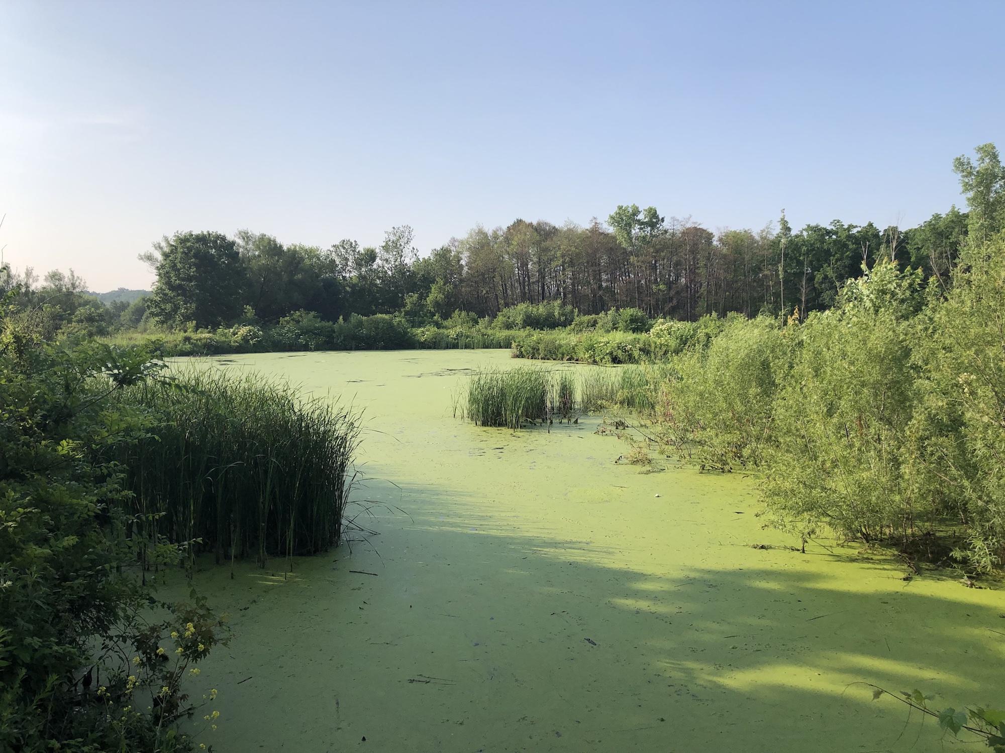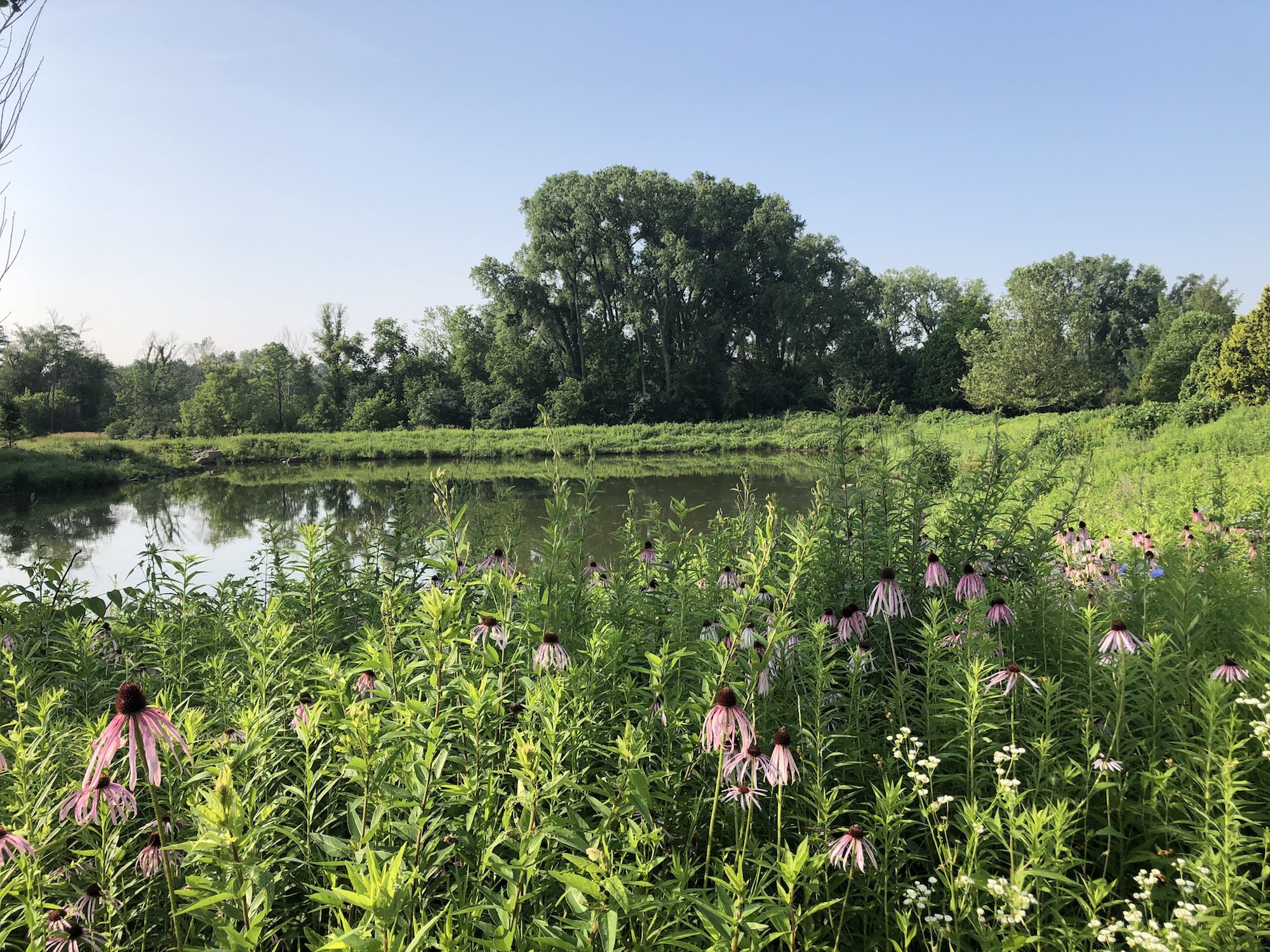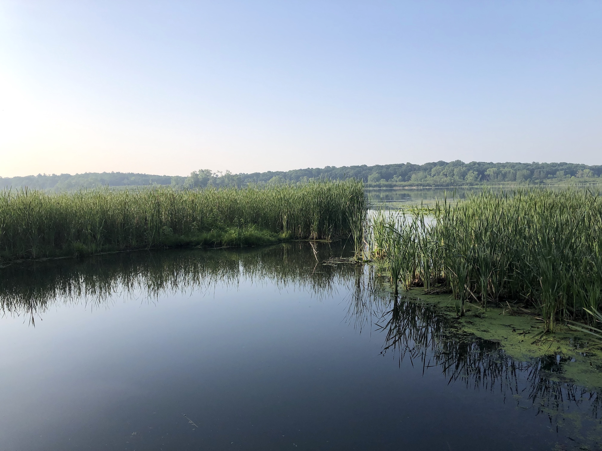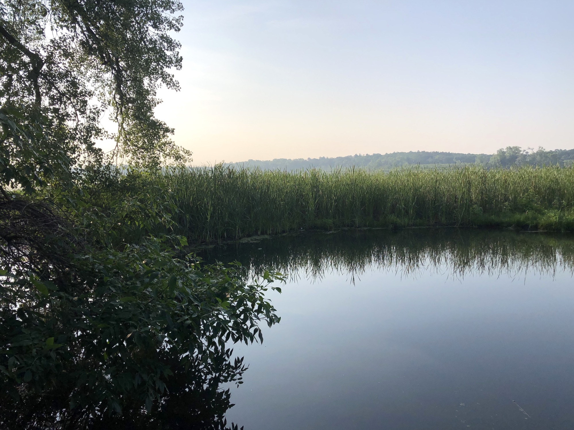 Above: Marion-Dunn Retaining Pond on July 8, 2019 (64°).