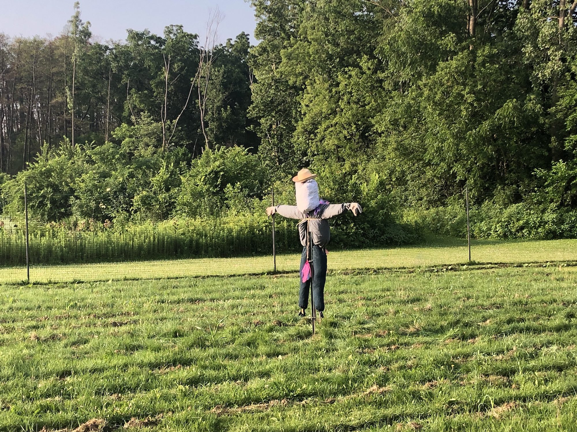 Above: Scarecrow in Three Sisters Garden on July 8, 2019 (64°).