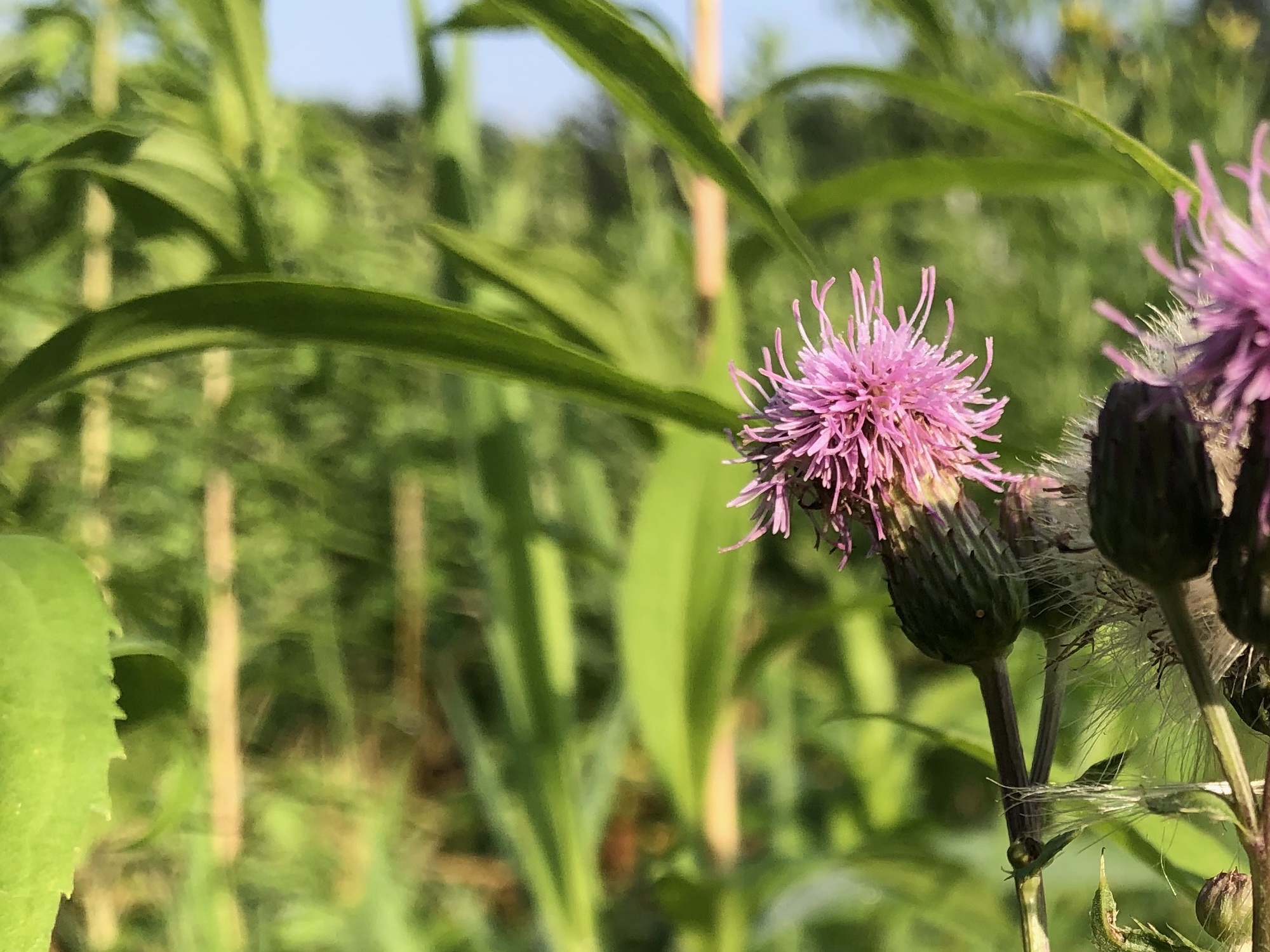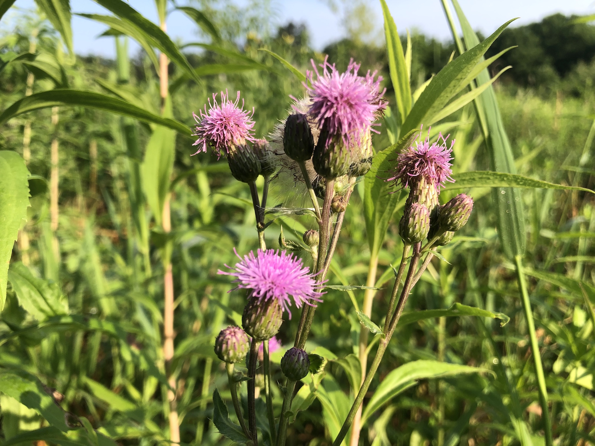 Above: Thistle on the banks of the Marion Dunn pond on July 8, 2019 (64°).