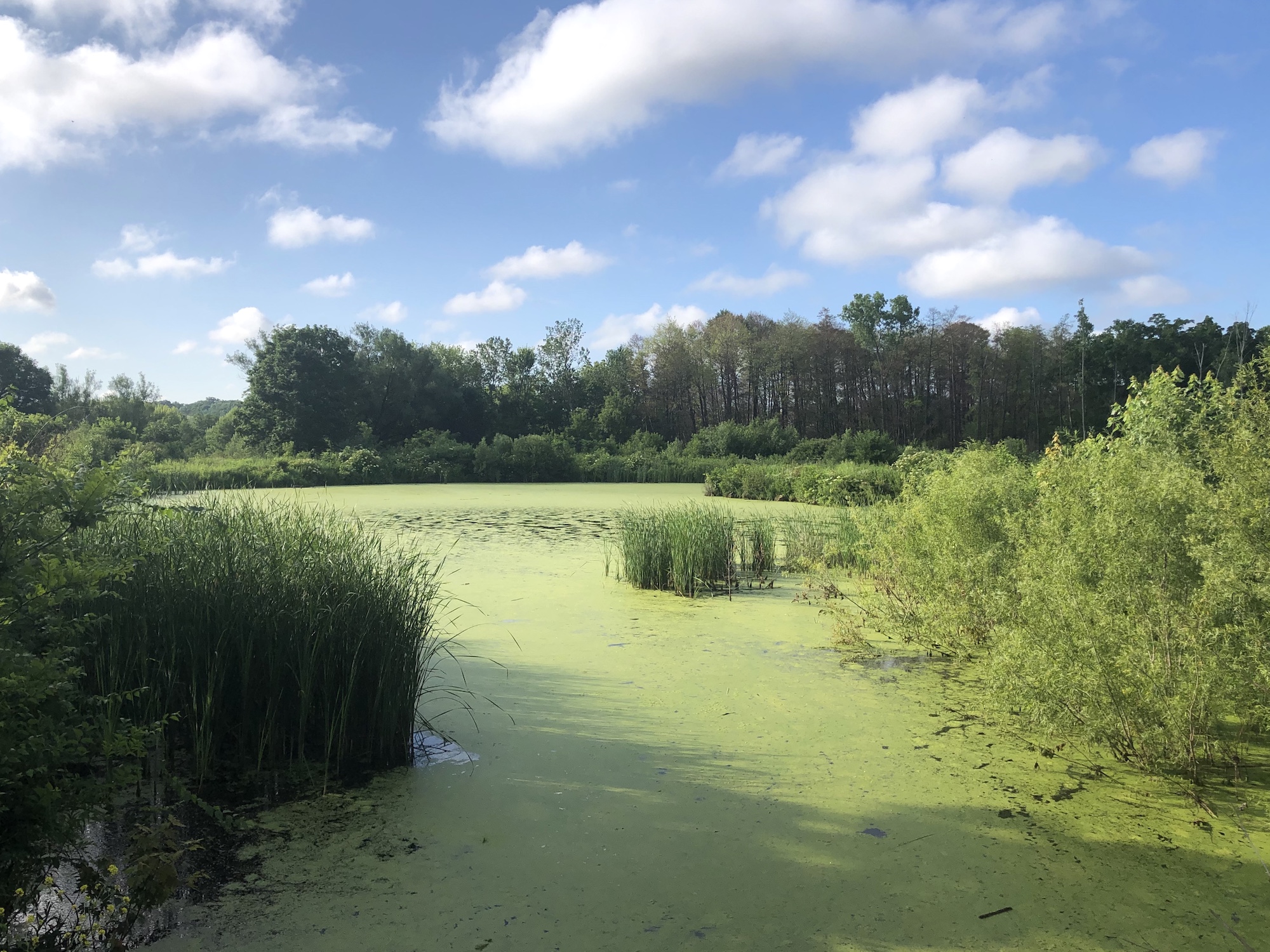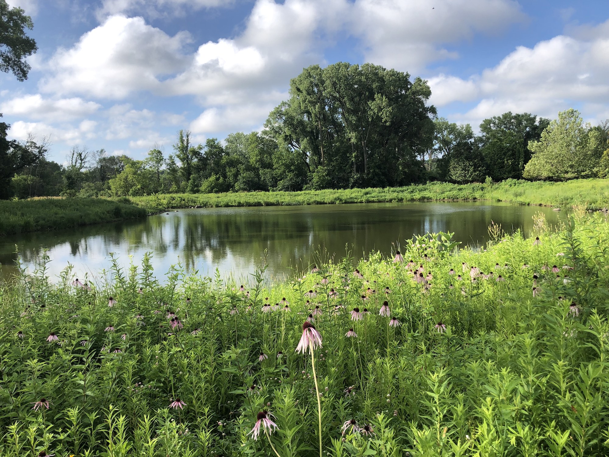 Above: Marion-Dunn Retaining Pond on July 11, 2019 (69°).