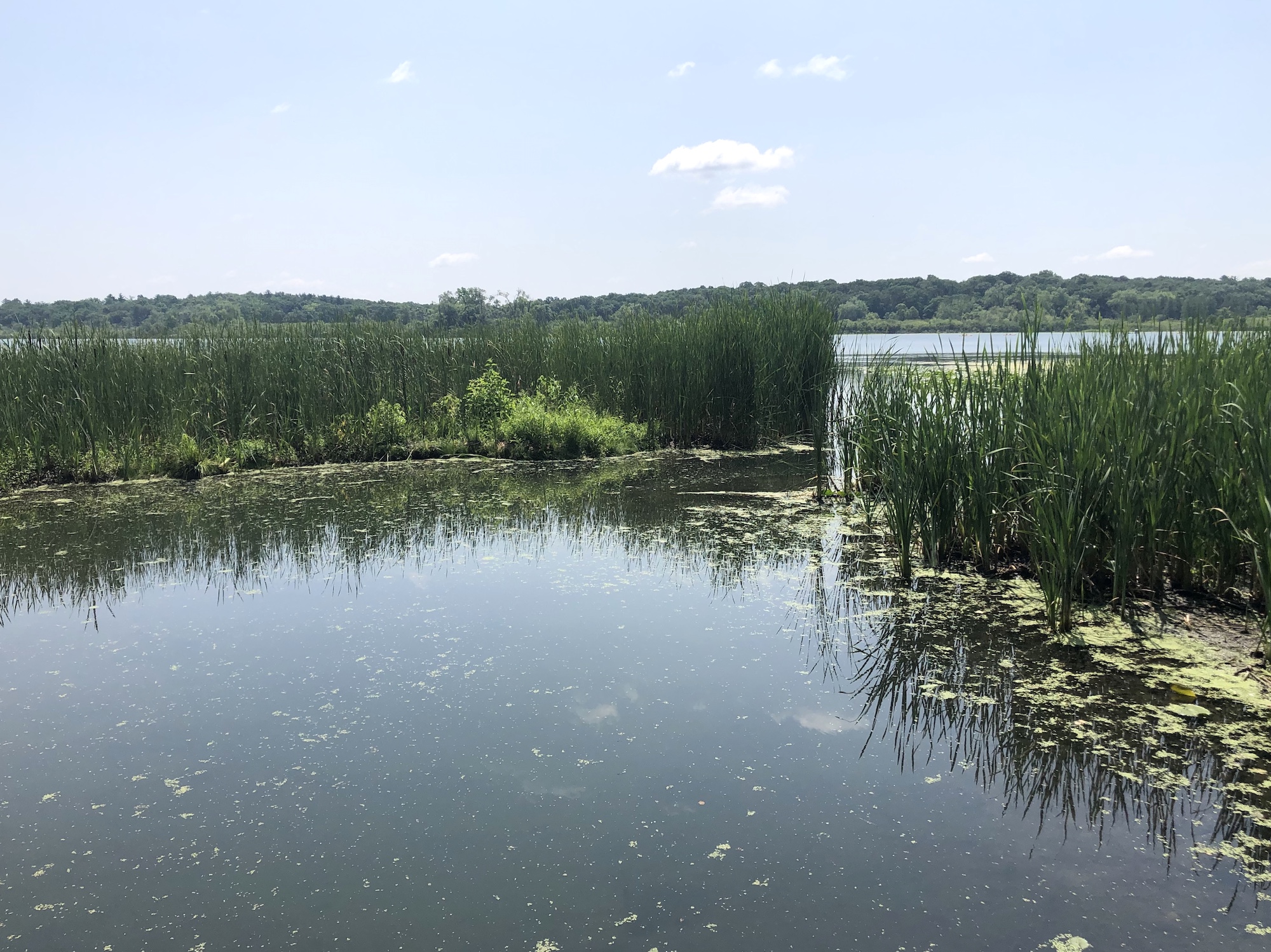 Above: Marion-Dunn Retaining Pond on July 23, 2019 (74°).