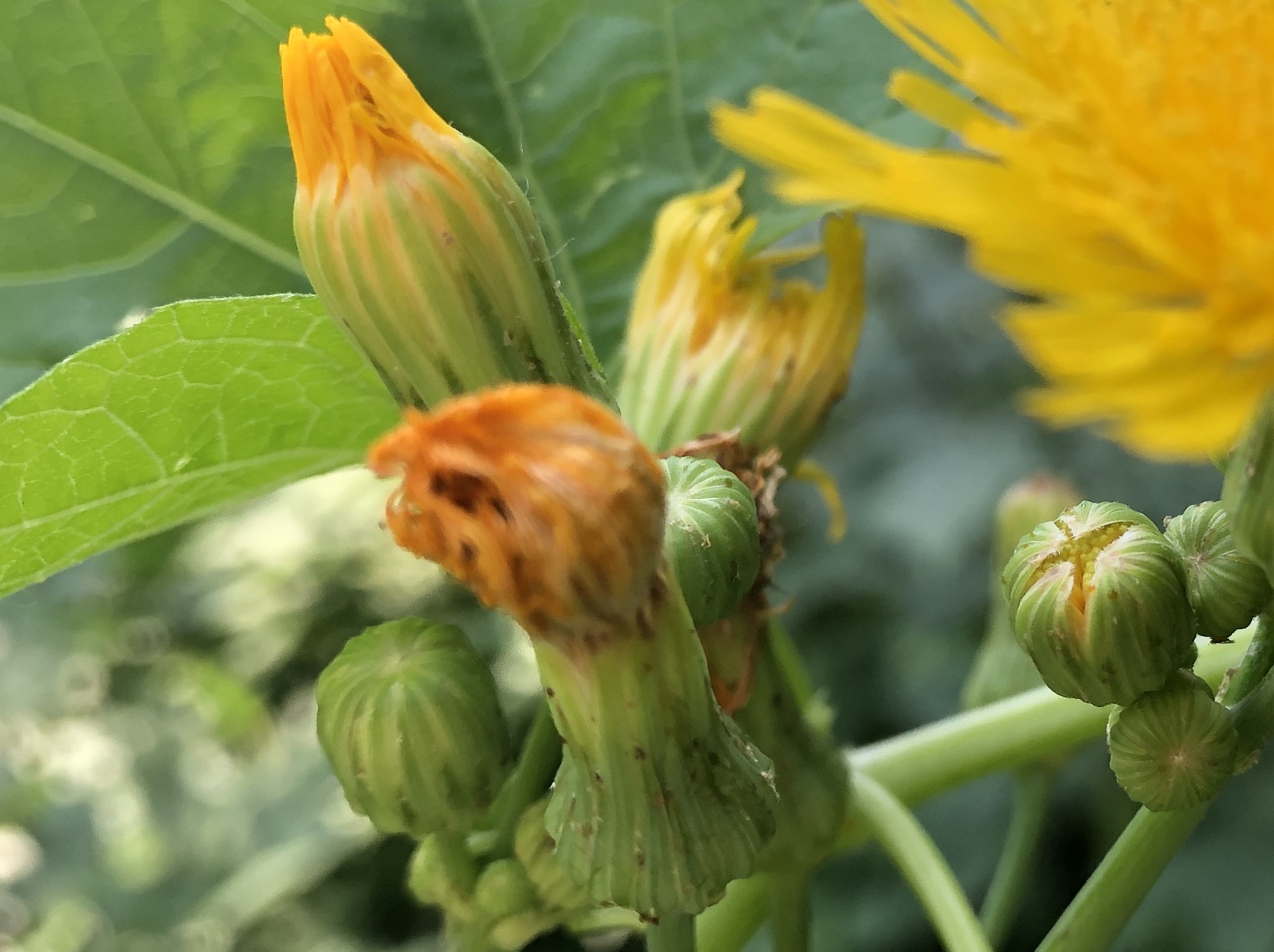 Above: Sowthistle near Sycamore tree on July 23, 2019 (74°).