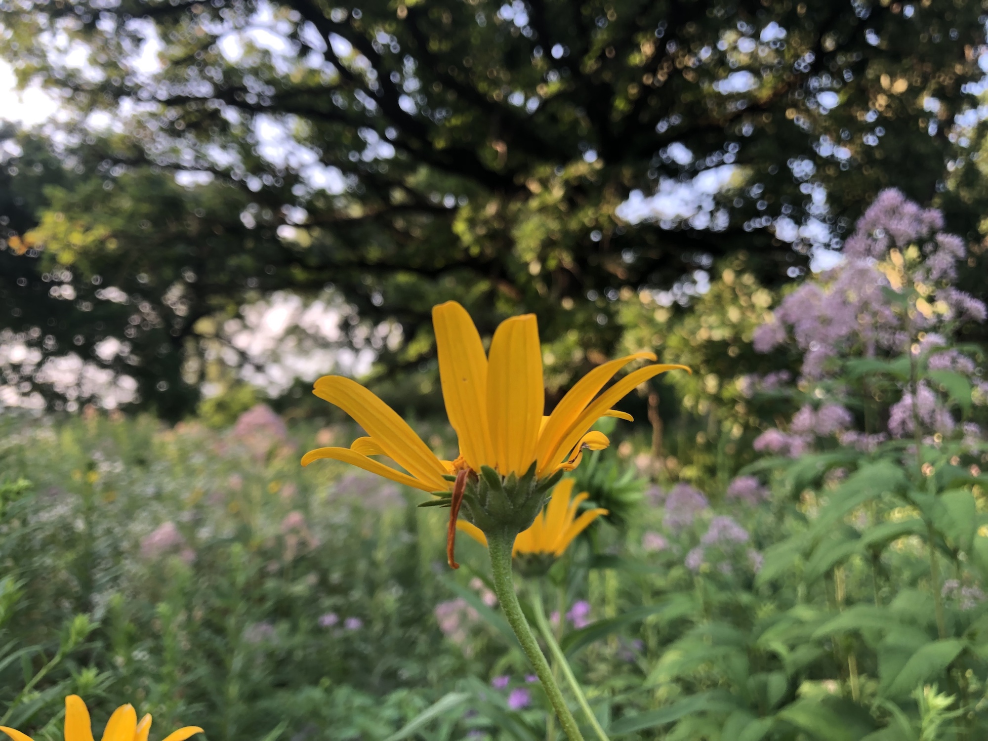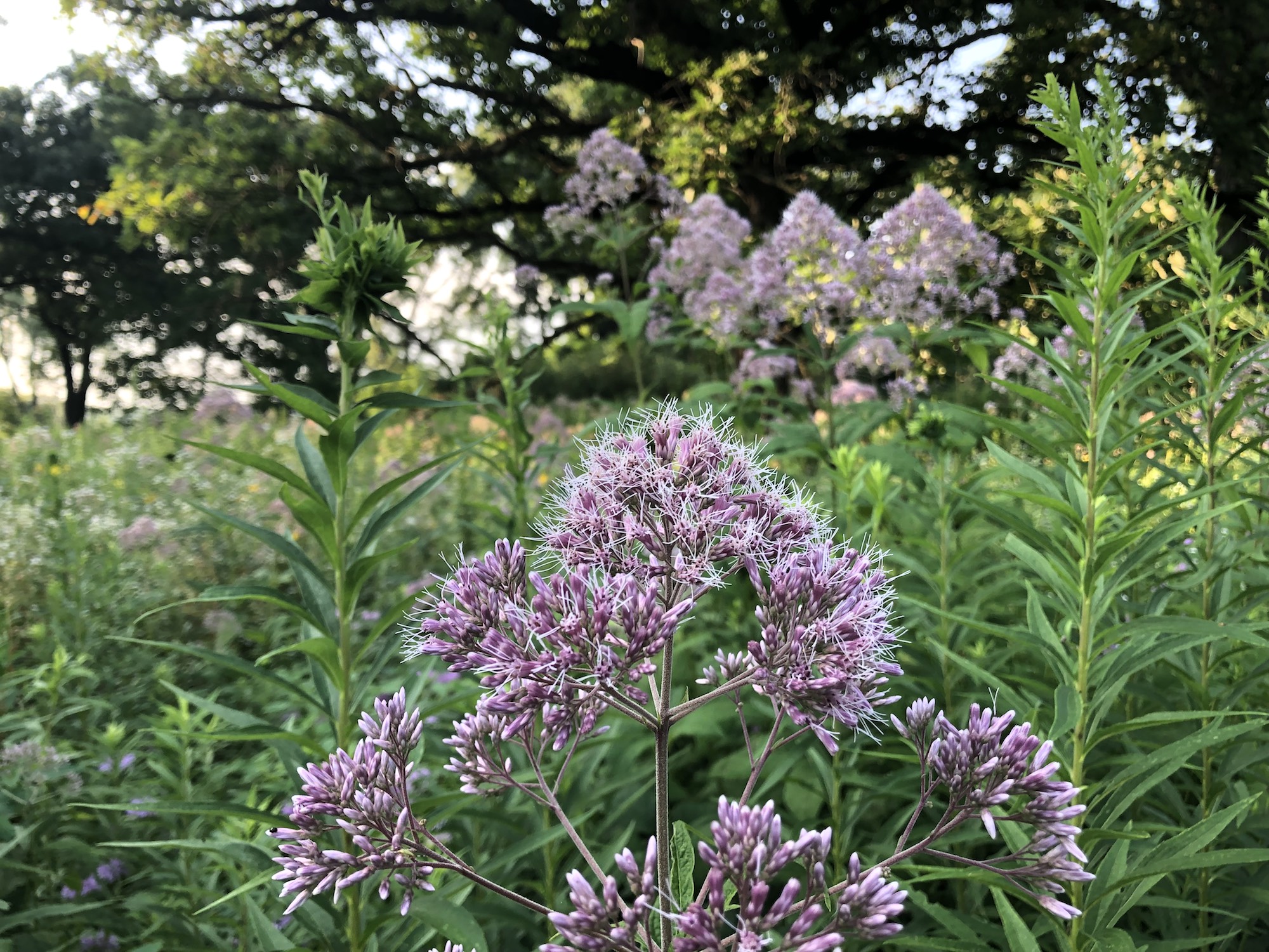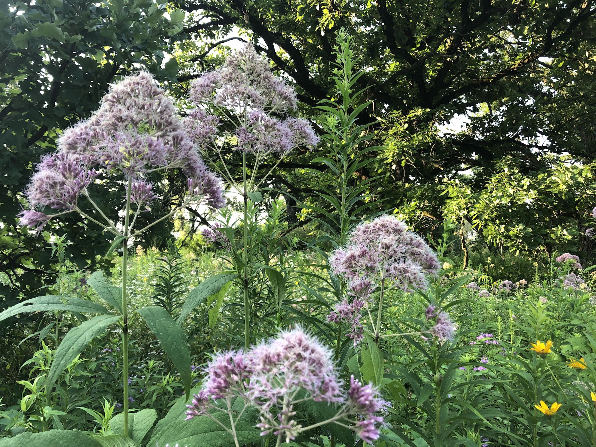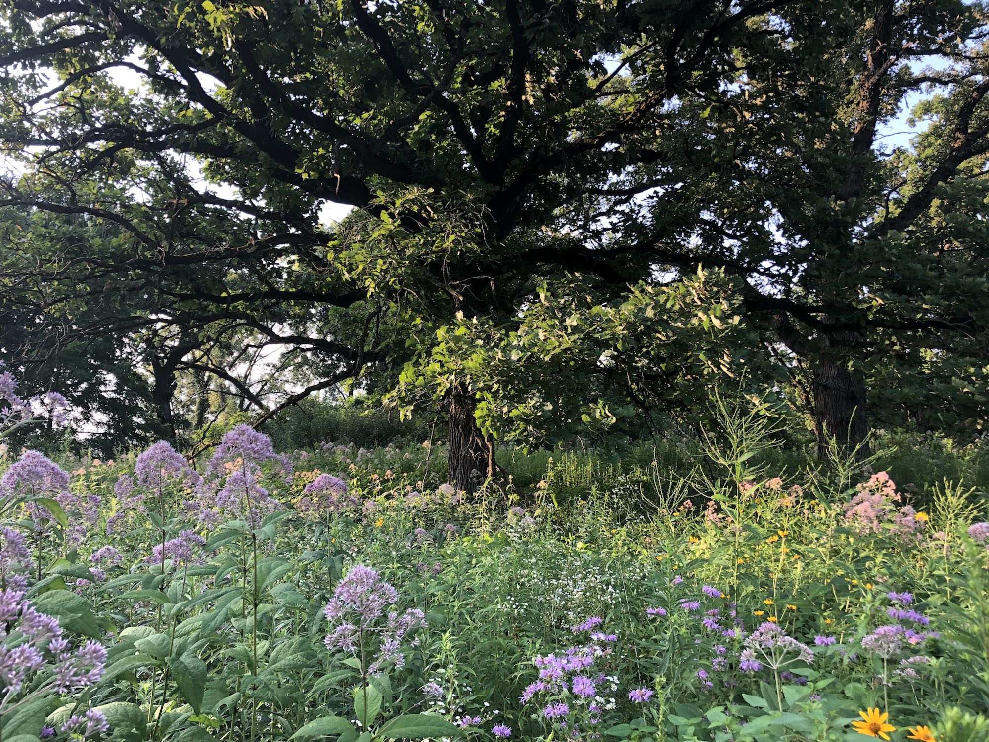 Above: Oak Savanna on July 27, 2019 (73°). False Sunflowers and Joe Pye Weed in foreground.