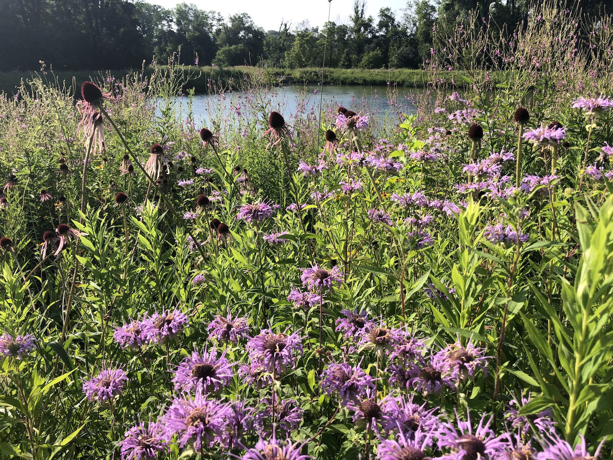 Above: Bergamot on the banks of the retaining pond on July 27, 2019 (73°).