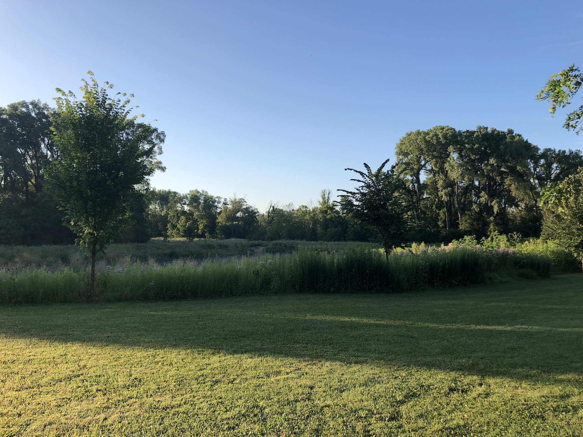 Above: Retaining pond on corner of Nakoma Road and Manitou Way on July 31, 2019 (60°).