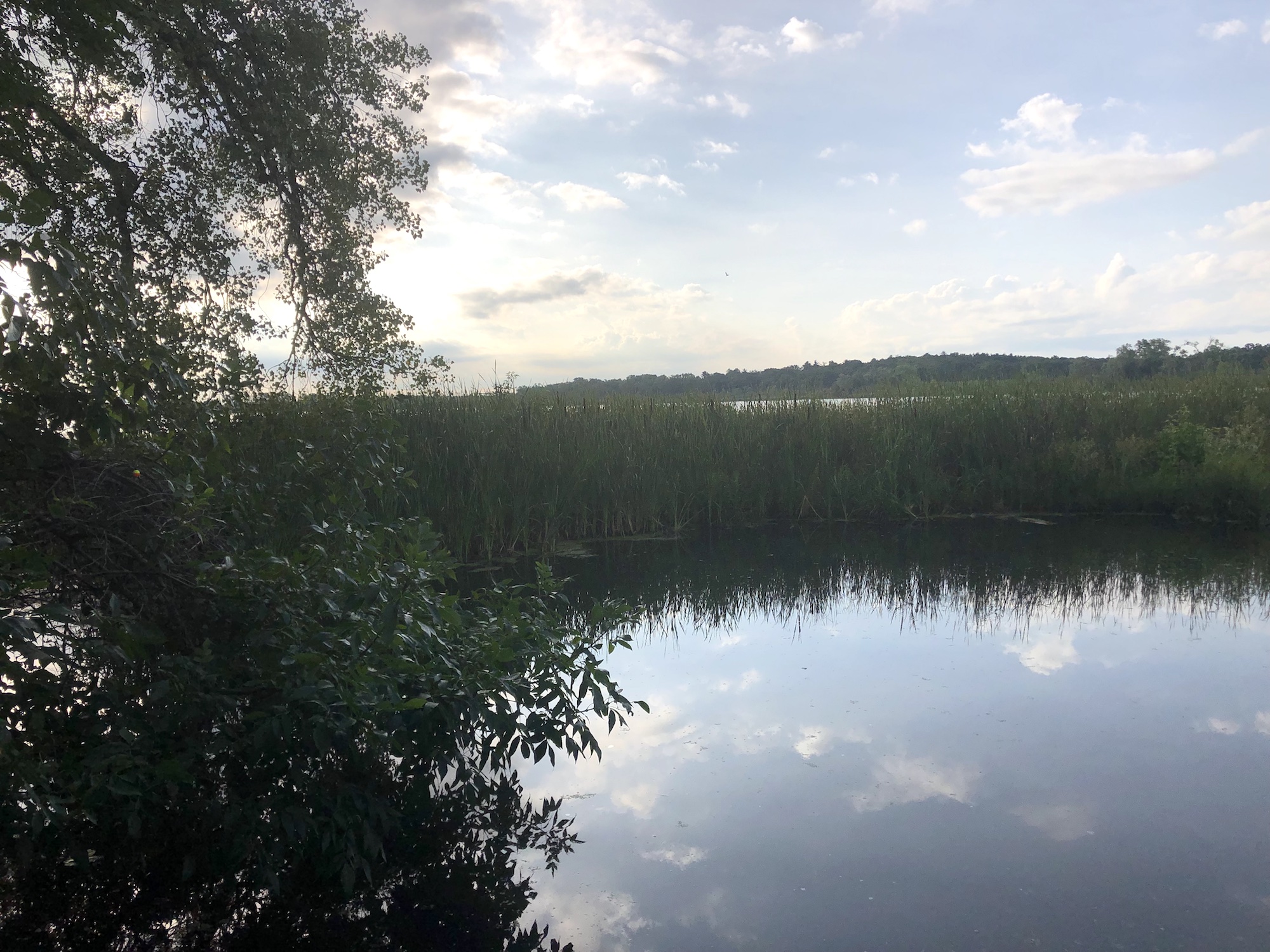 Above: Marion-Dunn Retaining Pond on August 21, 2019 (71°).