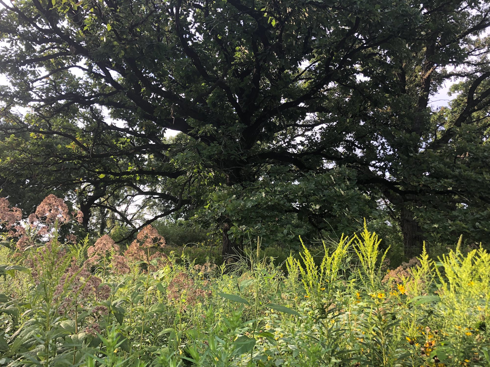 Above: Oak Savanna on August 21, 2019 (71°). Goldenrod and Joe Pye Weed in foreground.