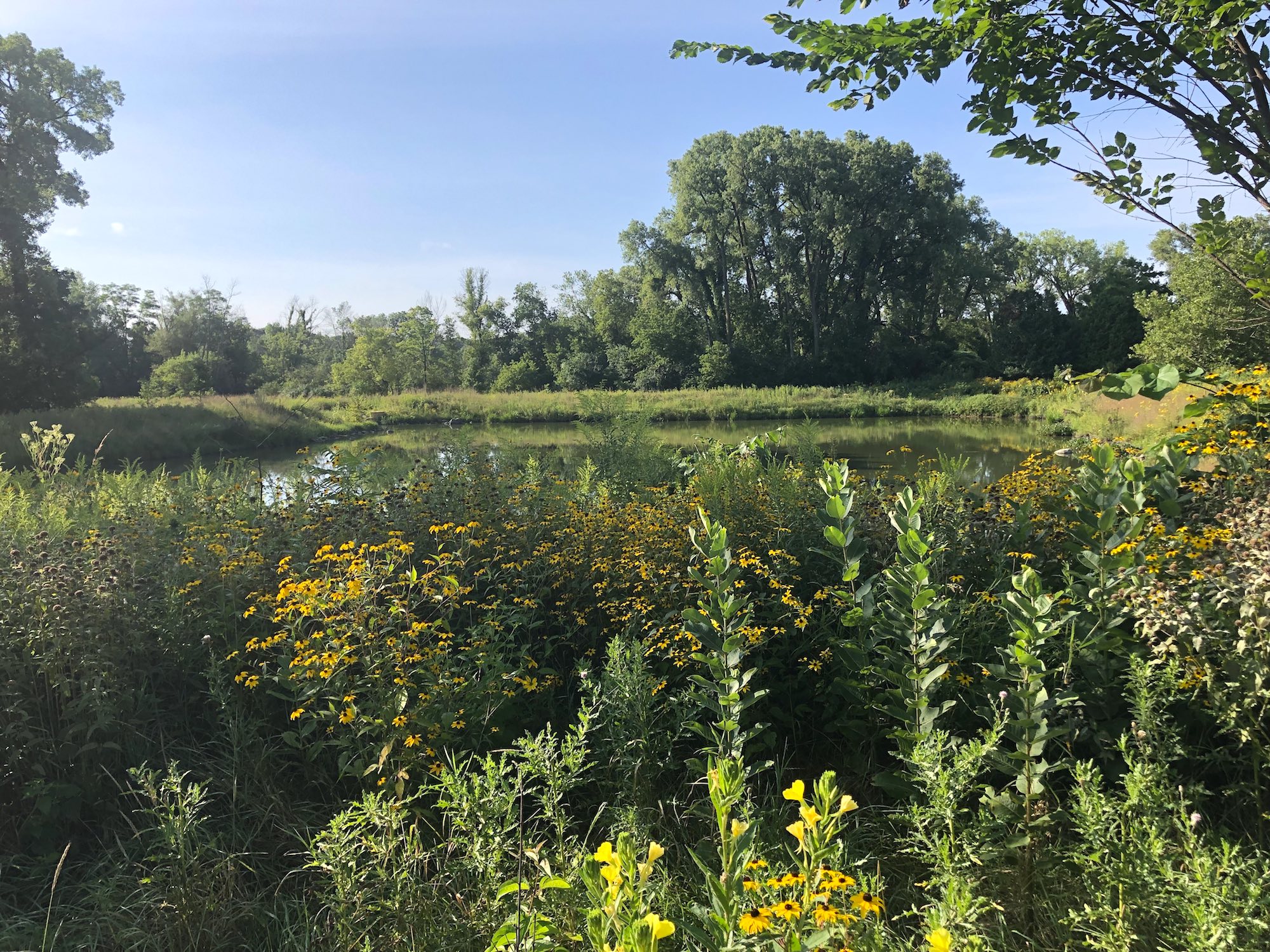 Note: Both Yellow, spotted, spotted (without spots) Jewelweed all around duck pond, along Bike Path and in Oak Savanna. Many wildflowers in Oak Savanna and around retaining ponds reaching 6', 7' and 8' high.