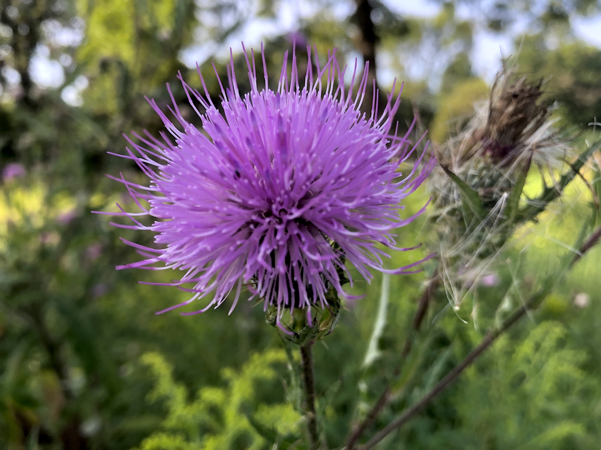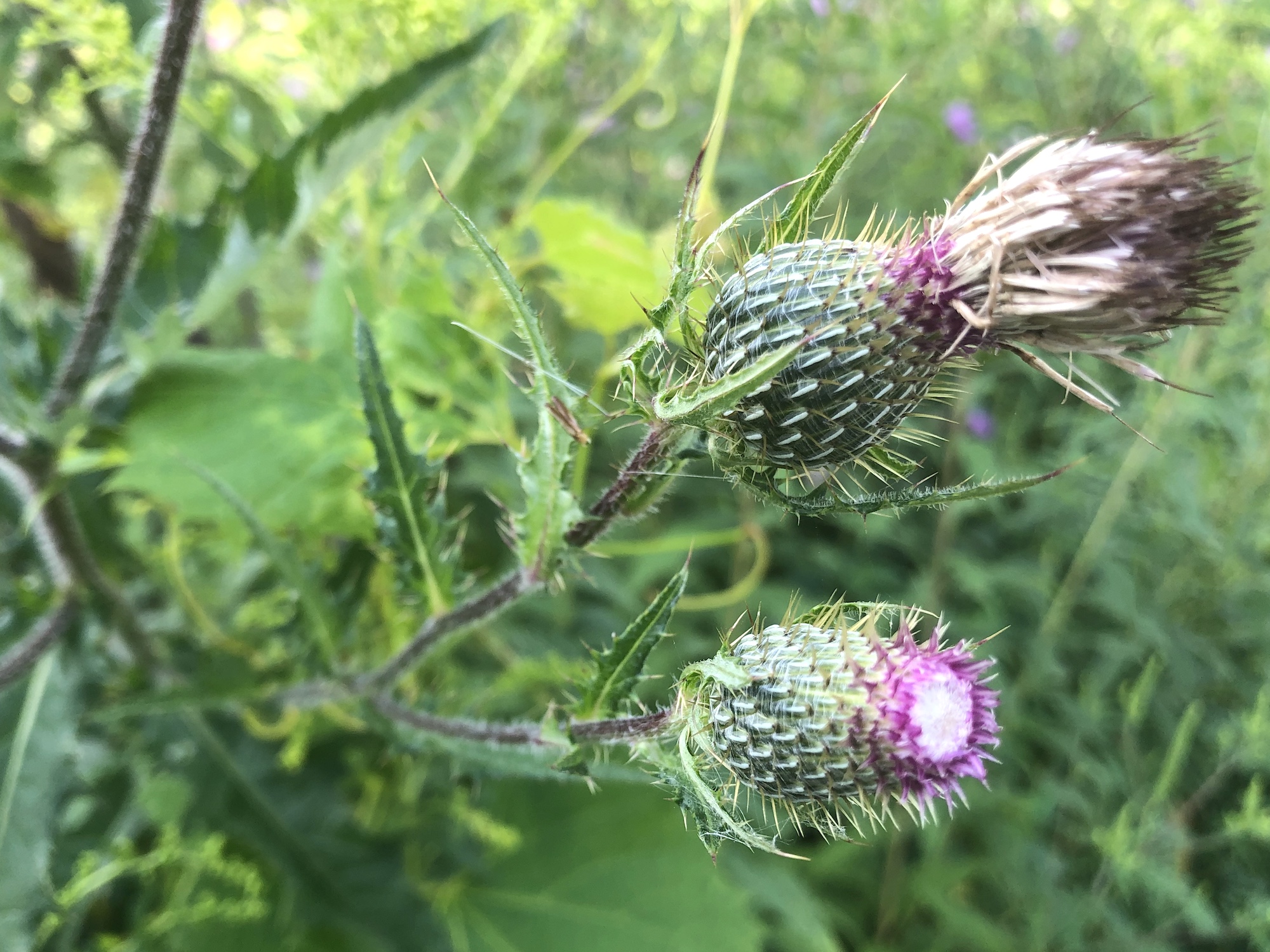 Above: Spear Thistle (?) in wood between Marion Dunn and the Oak Savanna on August 21, 2019) on August 21, 2019 (71°).