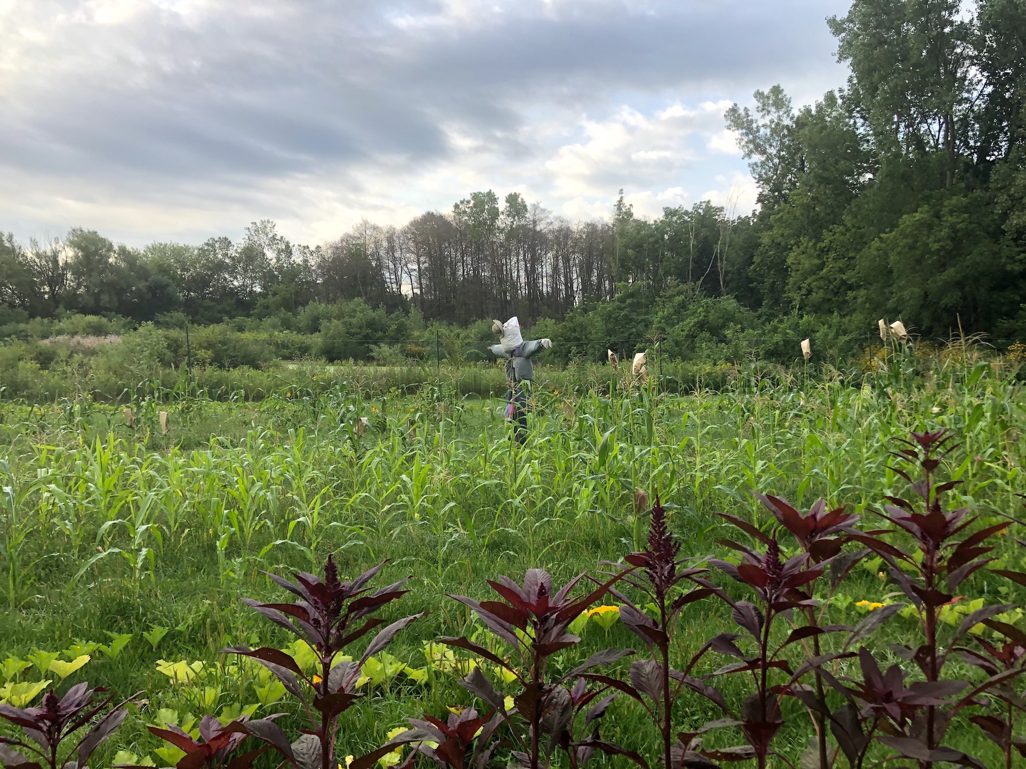 Above: Three Sisters Garden by Marion Dunn Retaining Pond on August 21, 2019 (71°).