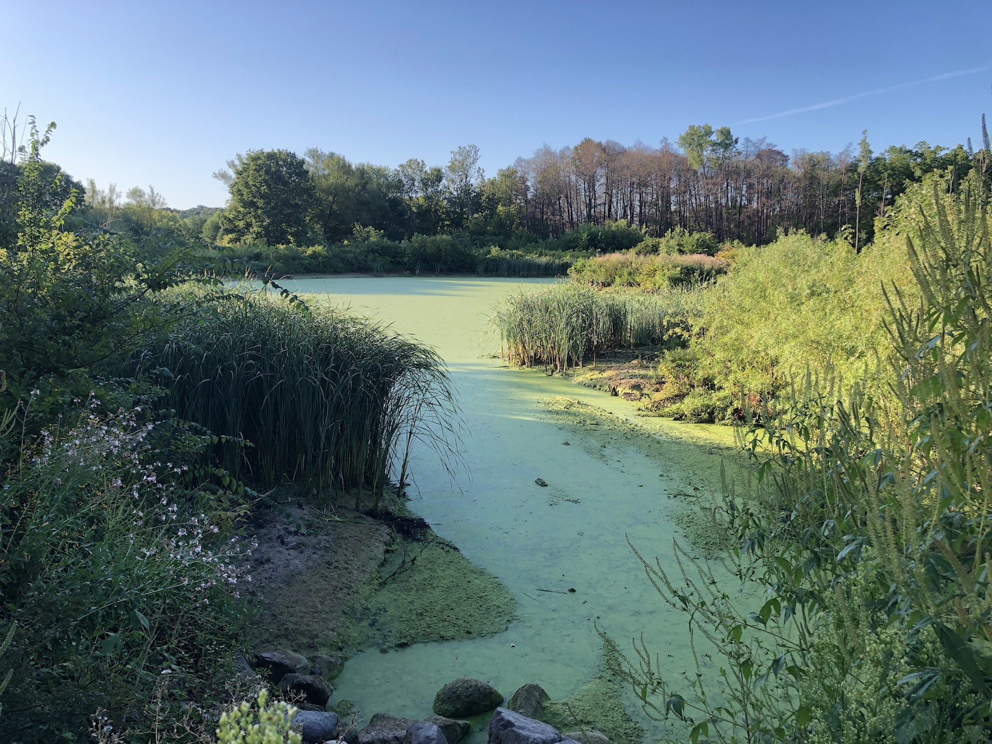 Above: Marion-Dunn Retaining Pond on August 24, 2019 (60°).