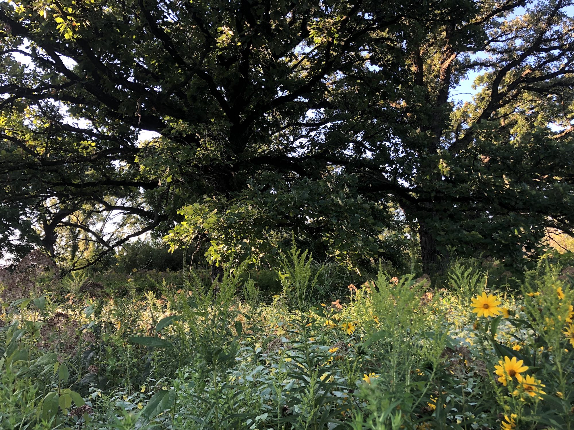 Above: Oak Savanna on August 24, 2019 (60°). Goldenrod and Joe Pye Weed in foreground.