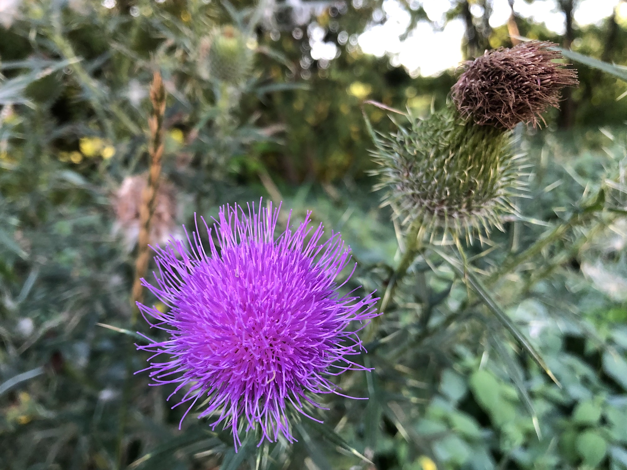 Above: Thistle in the Oak Savanna (on bikepath on August 24, 2019 (60°).
