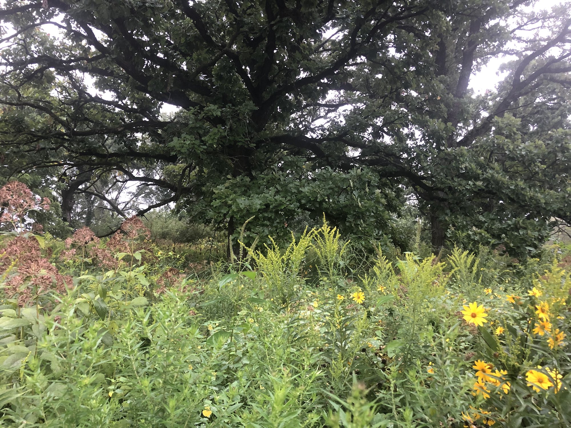 Above: Oak Savanna on August 26, 2019 (64°). Goldenrod and Joe Pye Weed in foreground.