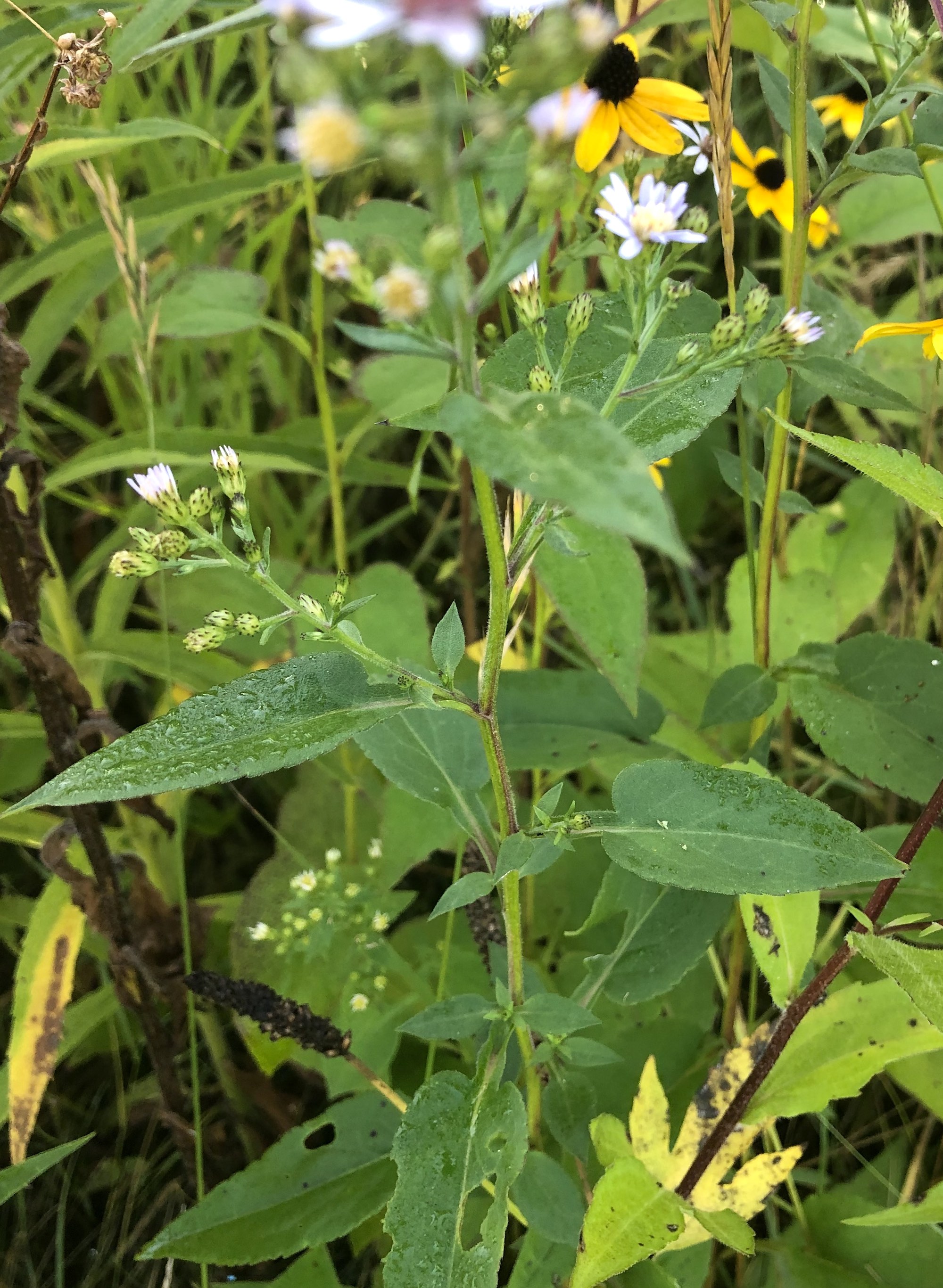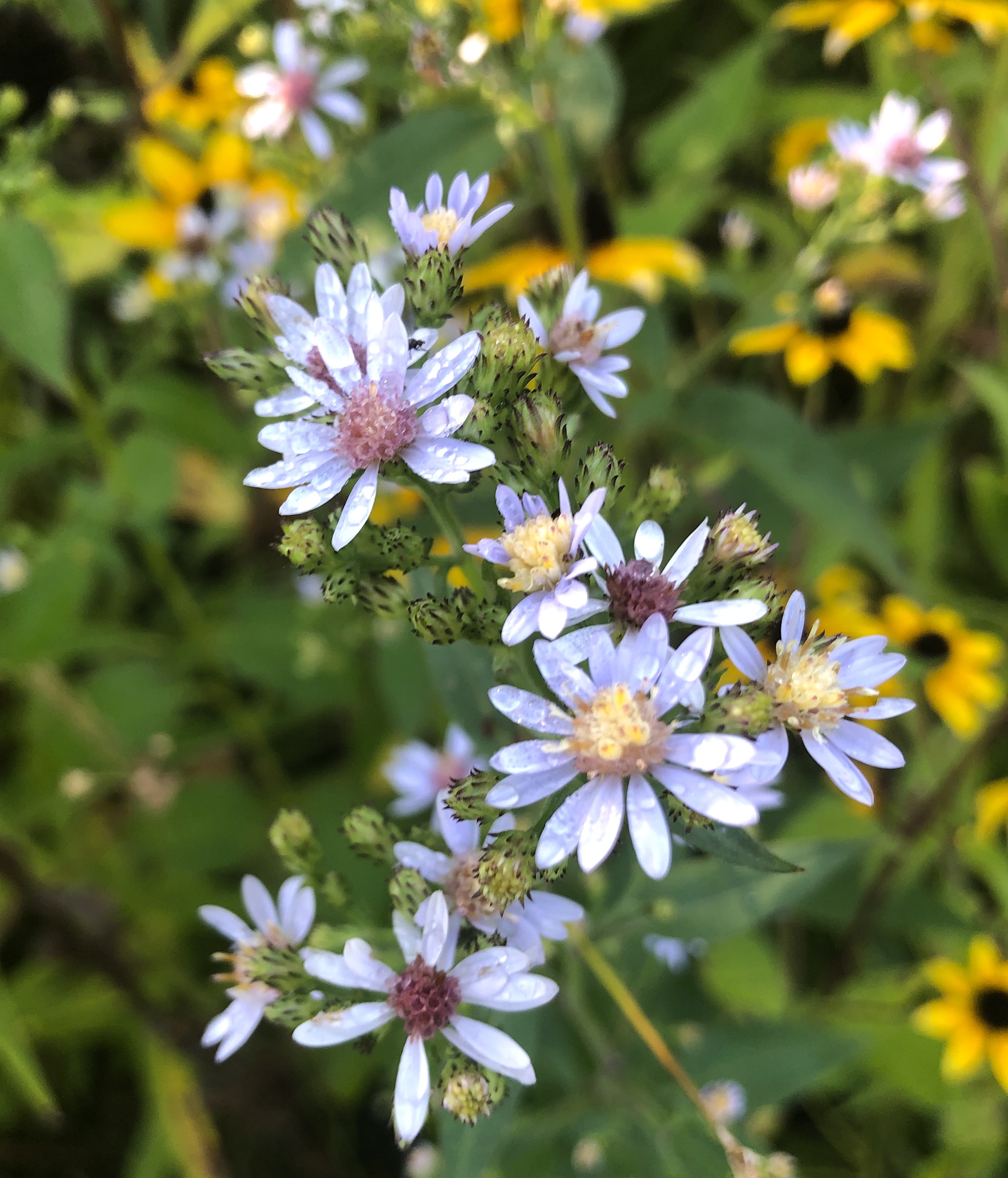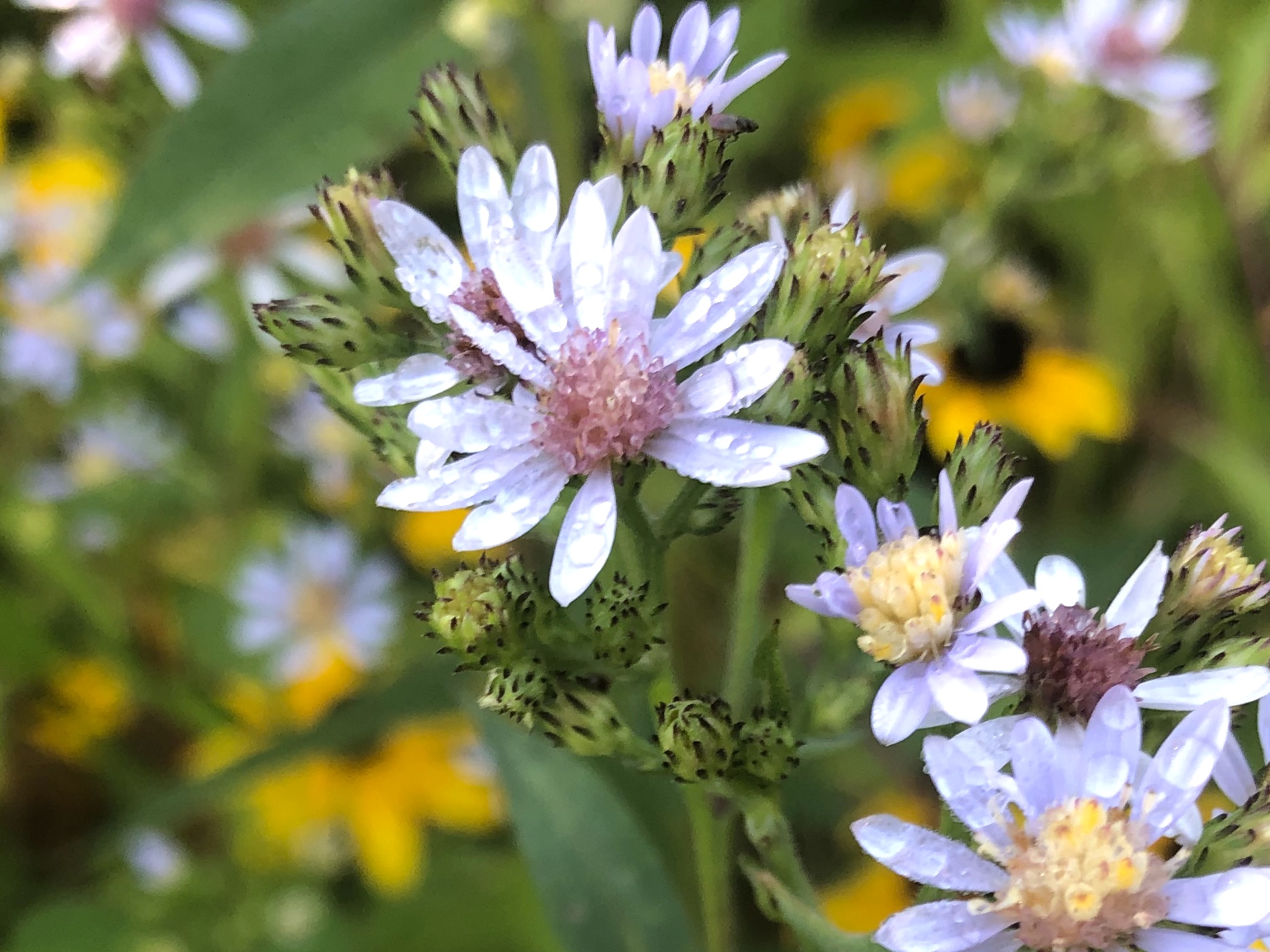 Above: Calico Aster on banks of retaining pond on corner of Nakoma Road and Manitou Way on August 27, 2019 (62°).