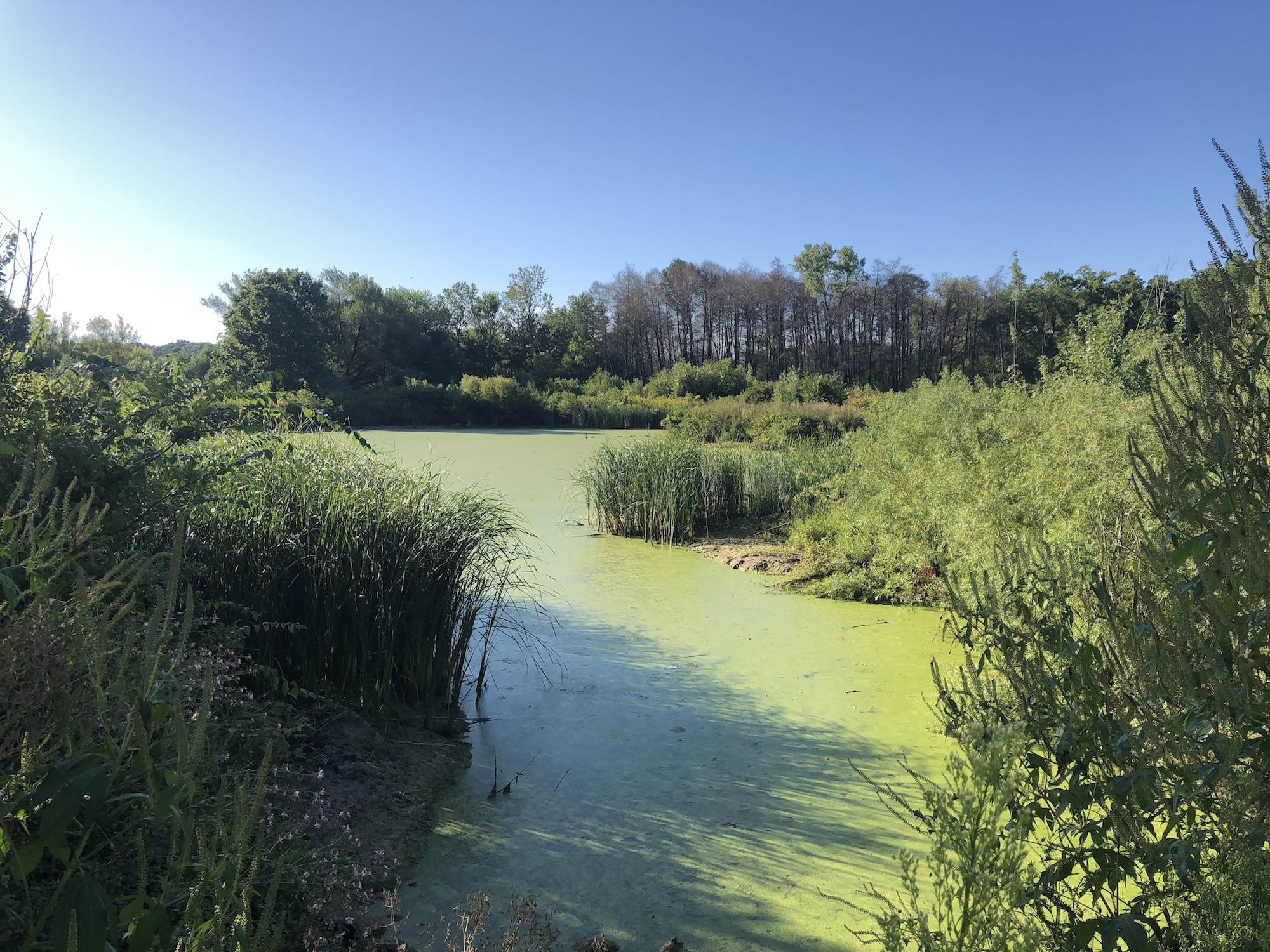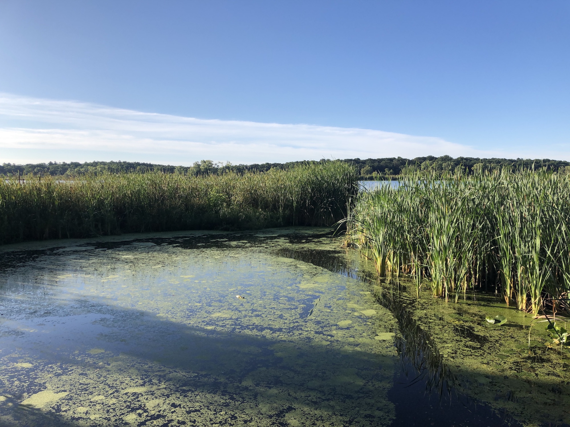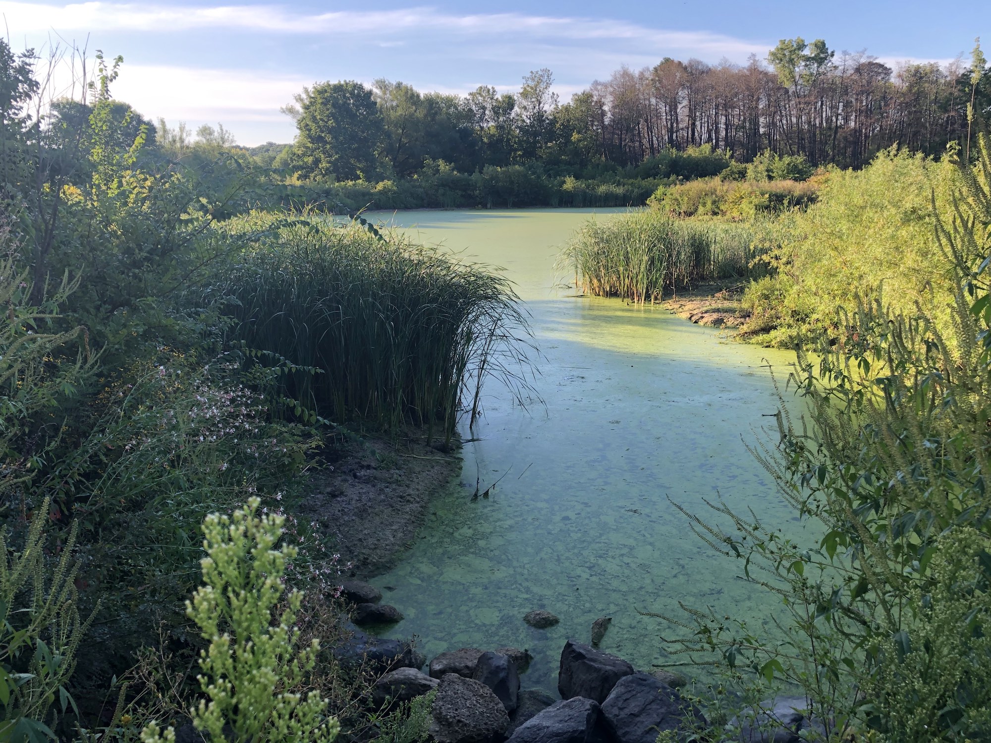 Above: Marion-Dunn Retaining Pond on August 27, 2019 (62°).