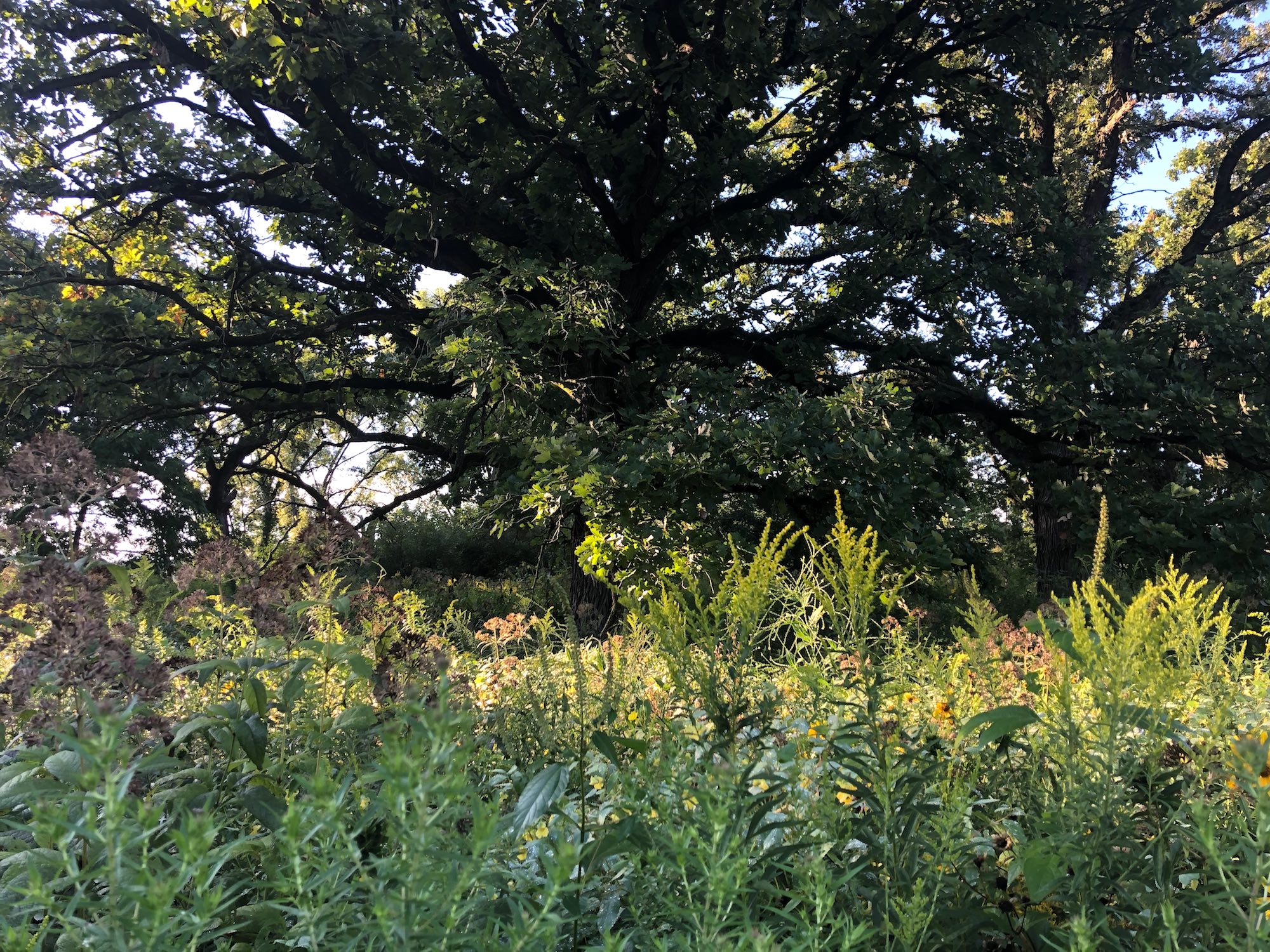 Above: Oak Savanna on August 27, 2019 (62°). Goldenrod and Joe Pye Weed in foreground.