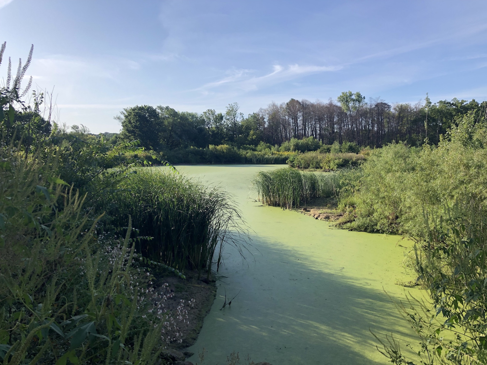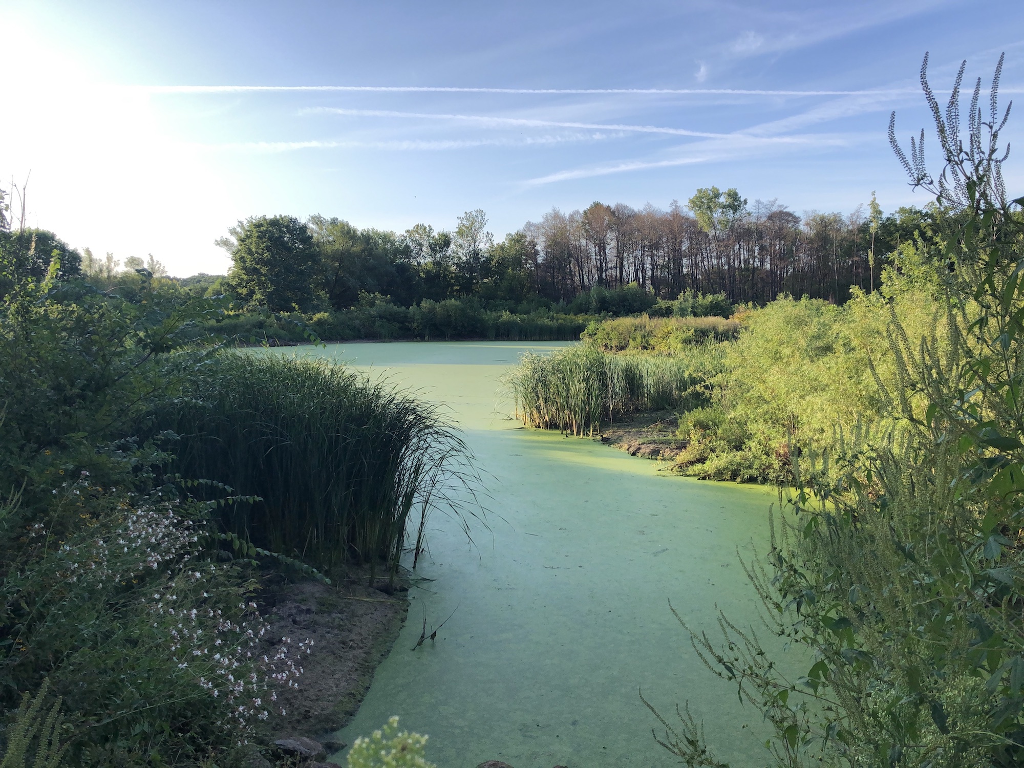 Above: Marion-Dunn Retaining Pond on August 28, 2019 (58°).