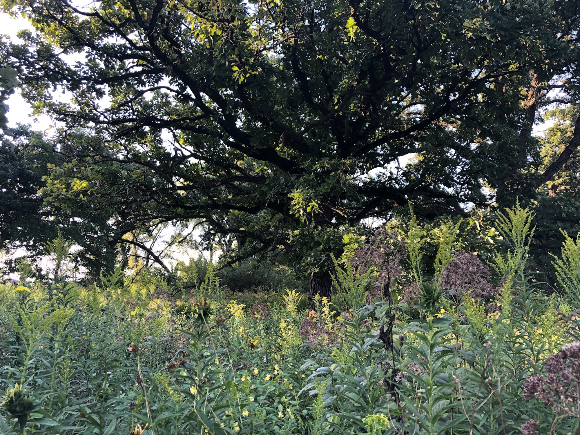 Above: Oak Savanna on August 28, 2019 (58°). Goldenrod and Joe Pye Weed in foreground.