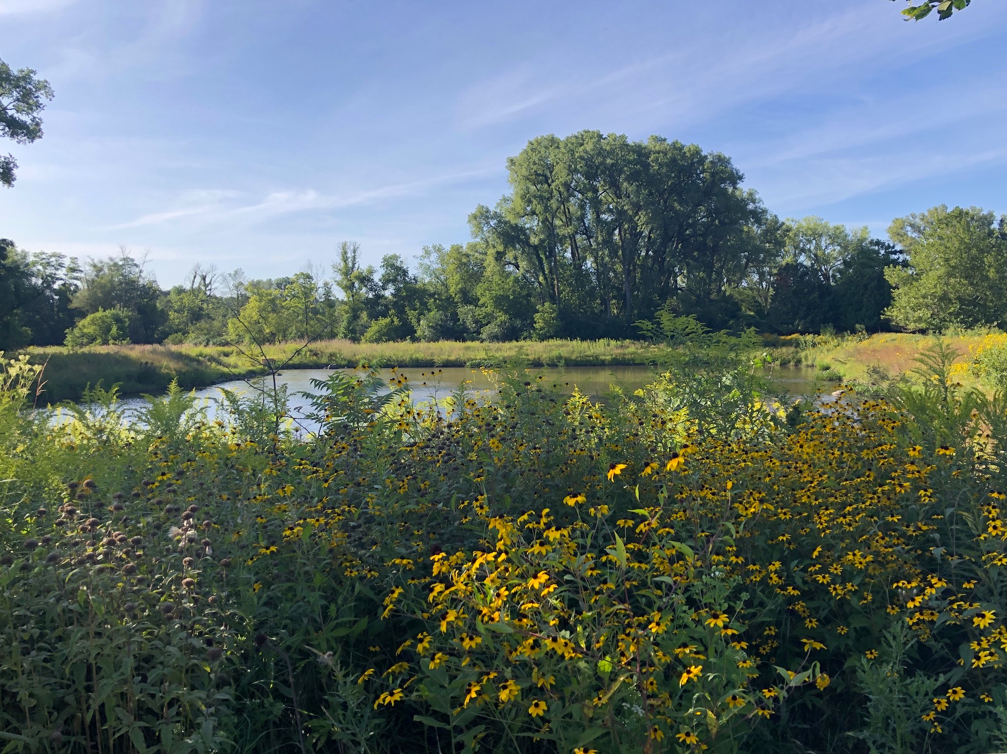 Above: Brown-eyed Susans on banks of retaining pond on corner of Nakoma Road and Manitou Way on August 28, 2019 (58°).