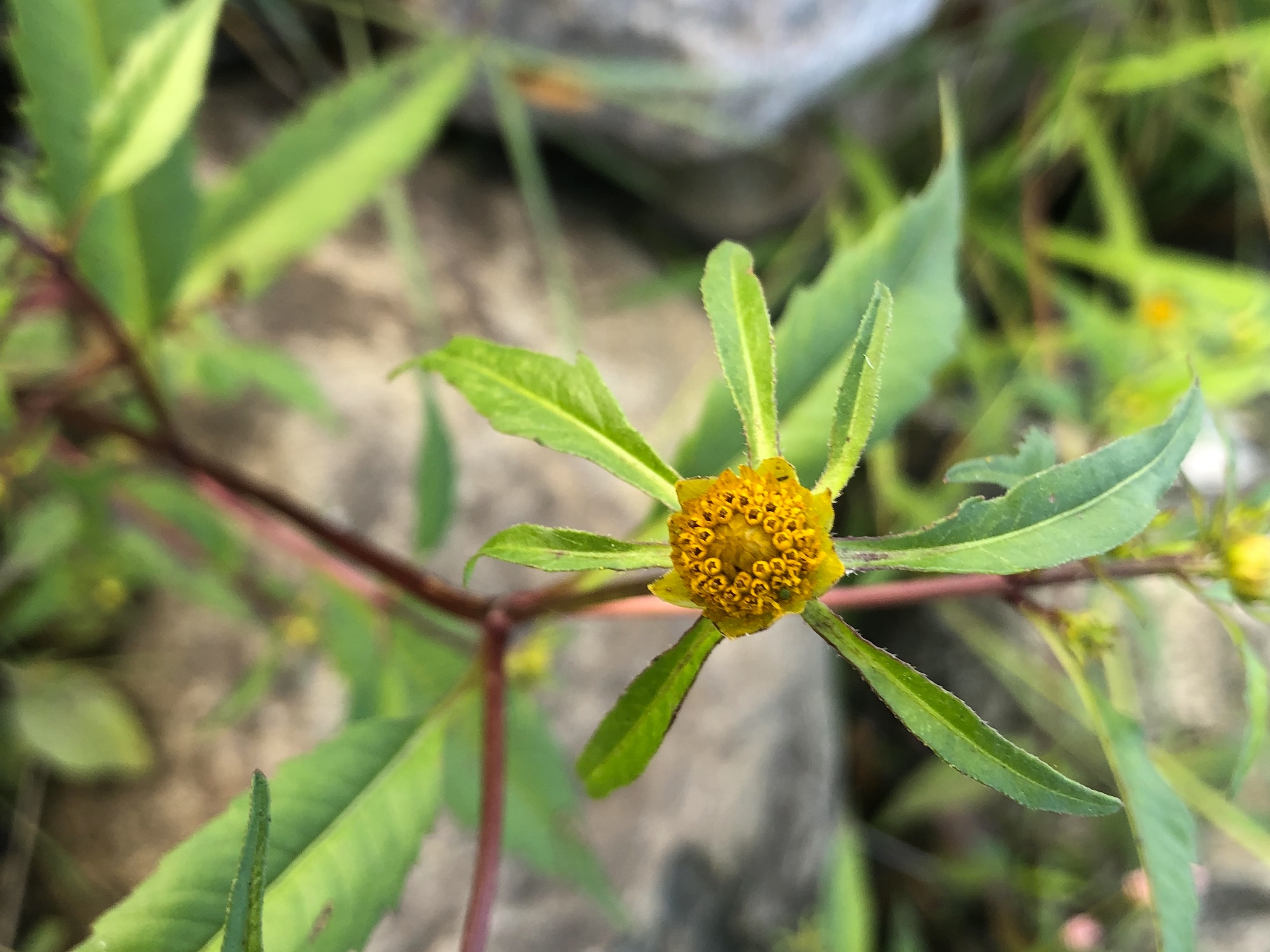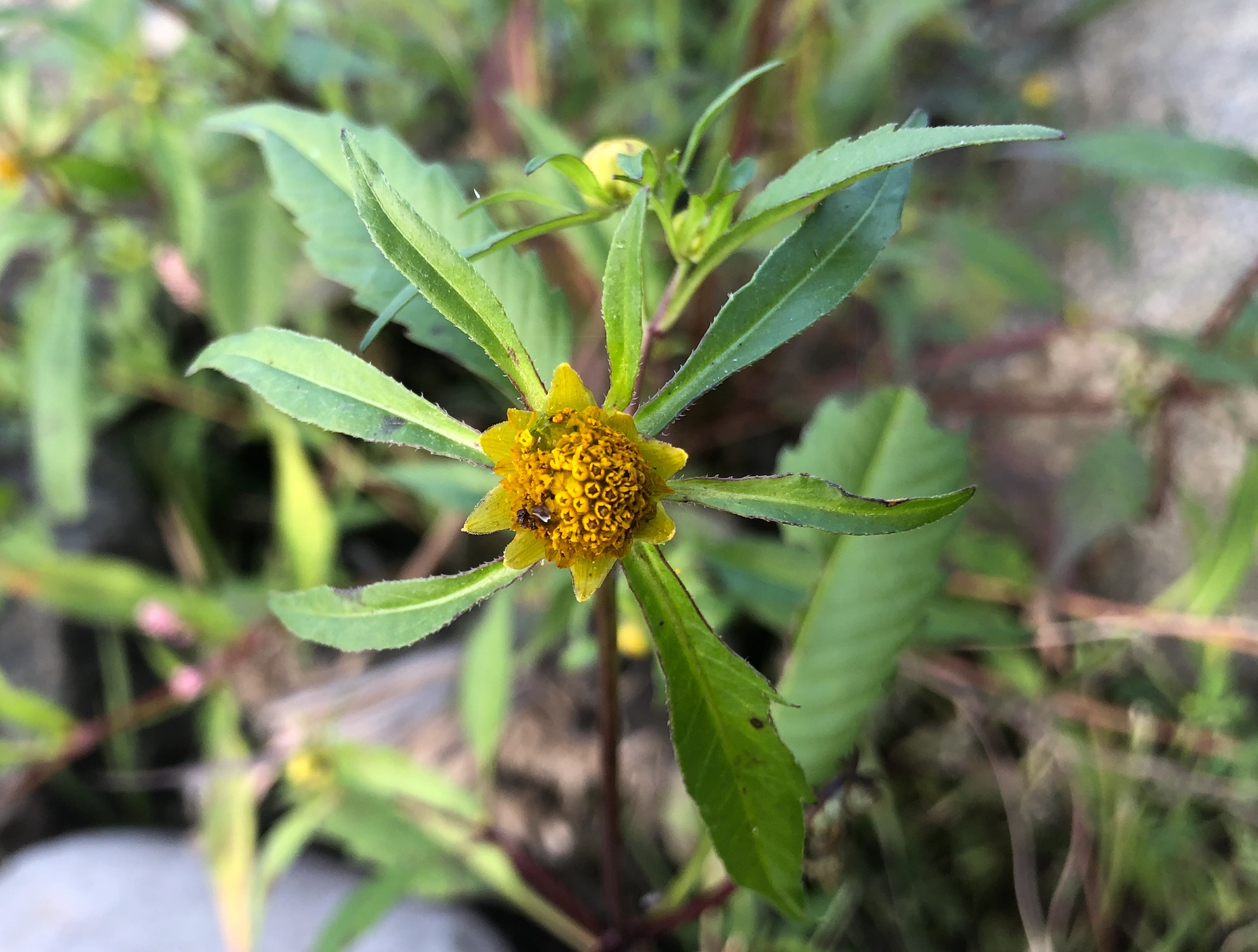 Above: Purple-stem Beggarticks (Bidens connata) along shore of Lake Wingra in Wingra Park (65°).