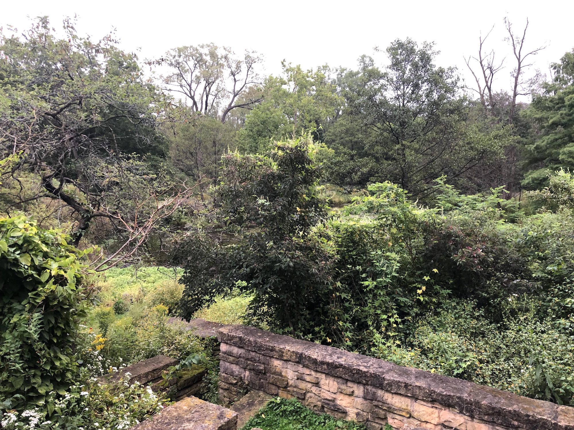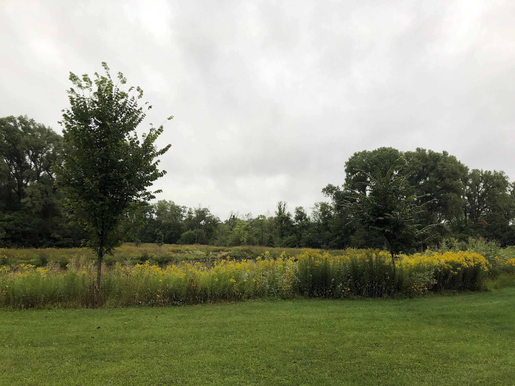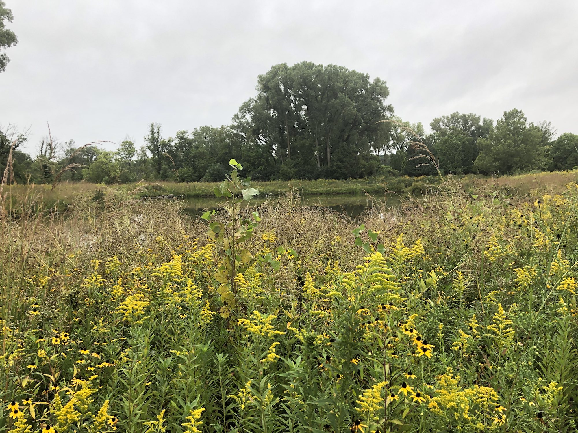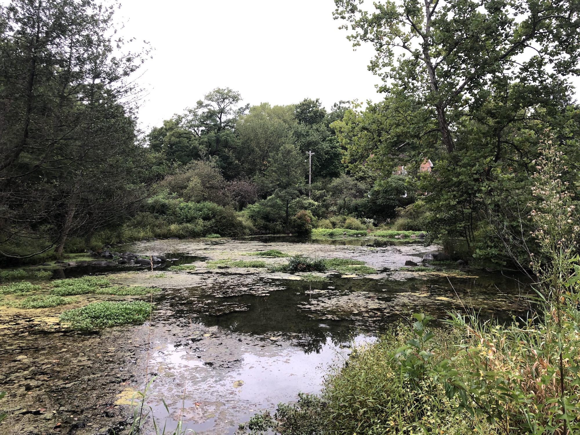 Above: Looking at Ho-Nee-Um Pond from Arbor Drive. NOTE: White Snakeroot surrounding Sycamore tree.