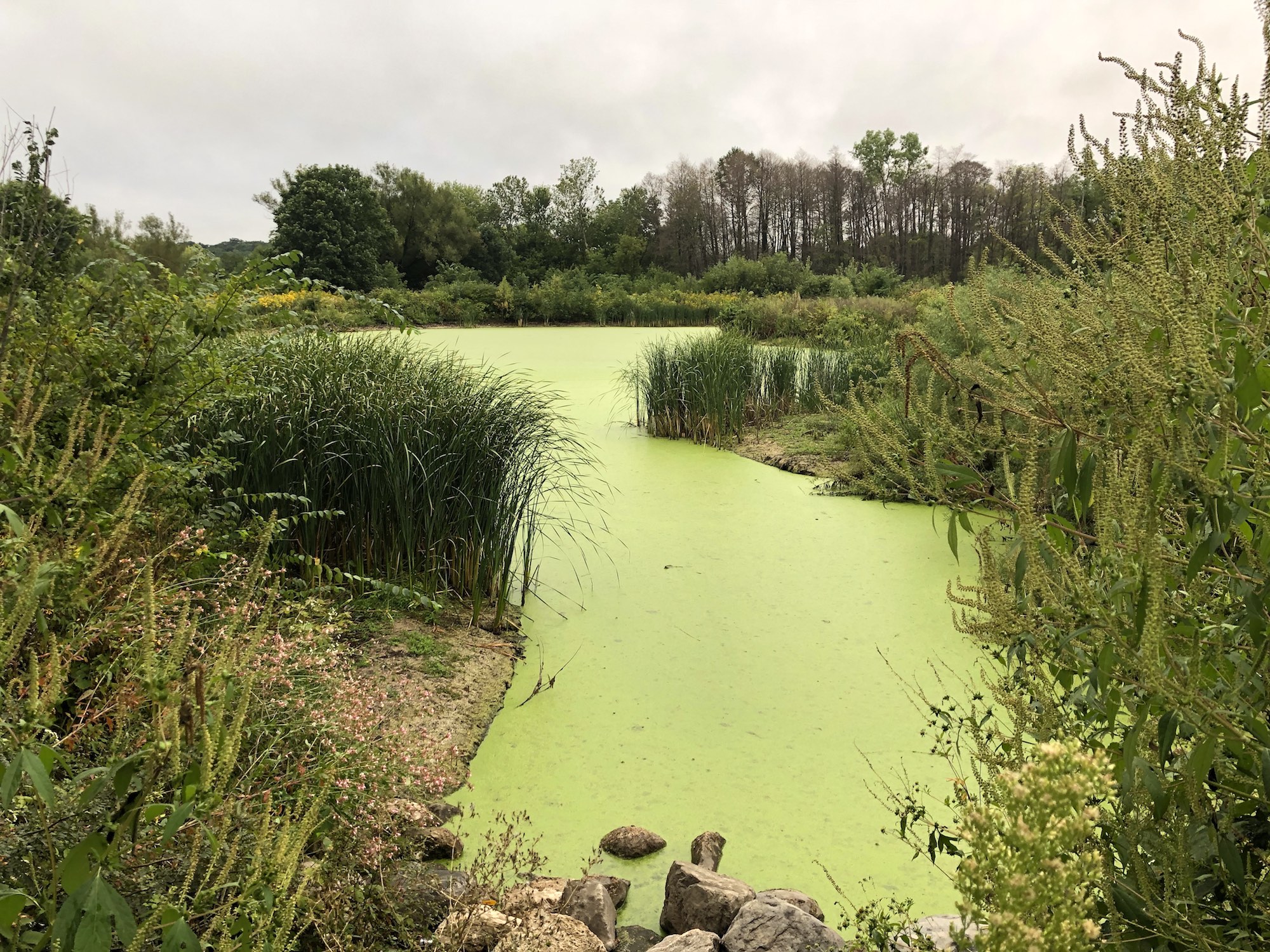 Above: Retaining pond on corner of Nakoma Road and Manitou Way on September 9, 2019 (65°).