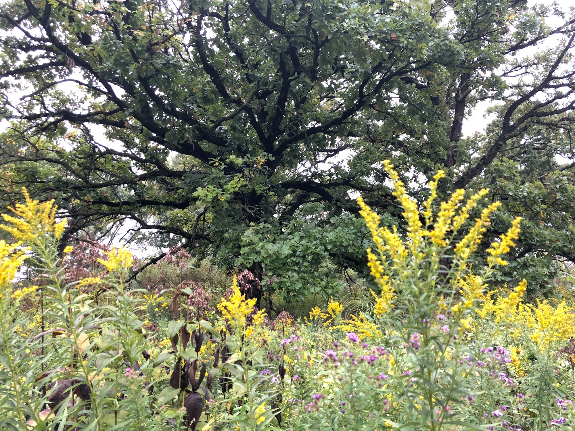 Above: Oak Savanna on September 12, 2019. Golden Rod Rossette Gall in foreground. (61°)