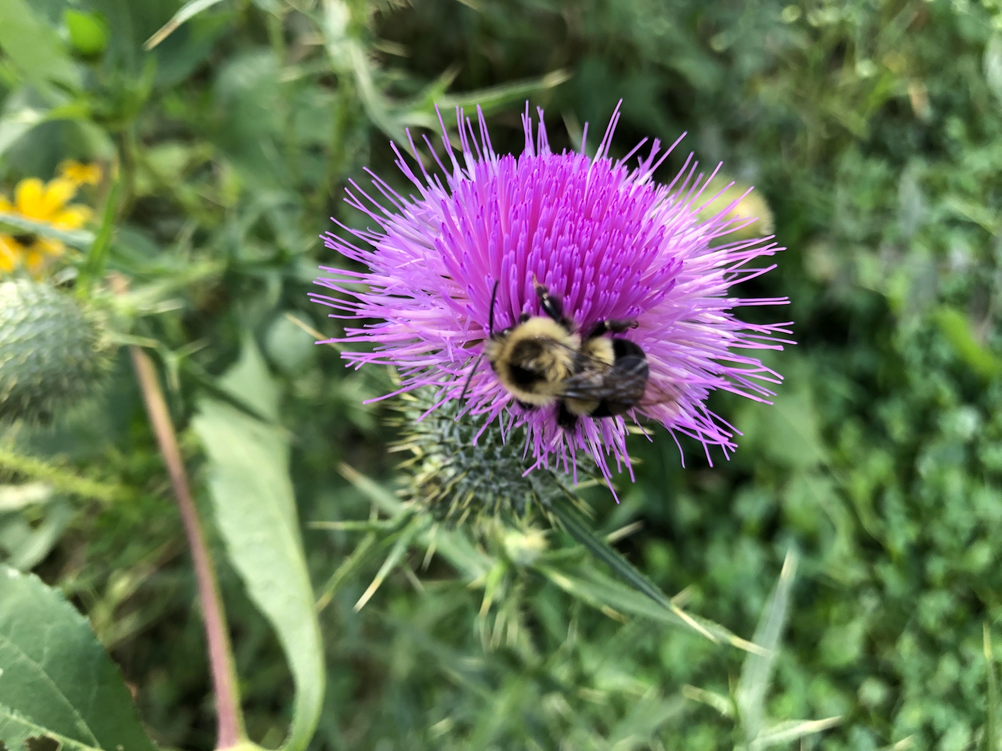 Above: Bull Thistle along banks of retaining pond on corner of Nakoma Road and Manitou Way on September 13, 2019 (61°).